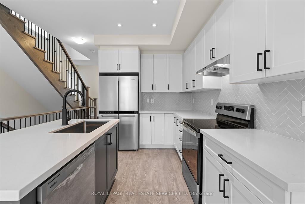 Experience opulent living in this pristine 3+1 bedroom, 3-storey contemporary townhome, conveniently situated moments away from south barrie go station. Boasting 2258 square feet above grade, this corner unit showcases lofty ceilings, expansive windows offering park views, and a generous terrace adjacent to the breakfast nook. Revel in upscale upgraded touches throughout, including laminate flooring, quartz countertops, a herringbone kitchen backsplash, and premium sinks and faucets. Embrace a serene environment surrounded by lush parks, playgrounds, and scenic trails, with easy access to lake simcoe's shores. Nestled in a coveted locale, this residence caters to families with top-tier schools, recreational amenities, and a bustling retail and culinary landscape. Extras :rough in for electric car charger in garage, rough in gas line on 2nd floor terrace, upgraded finishes throughout including quartz countertops in the kitchens and washrooms, upgraded sinks and faucets, upgraded shower in the primary bdrm.