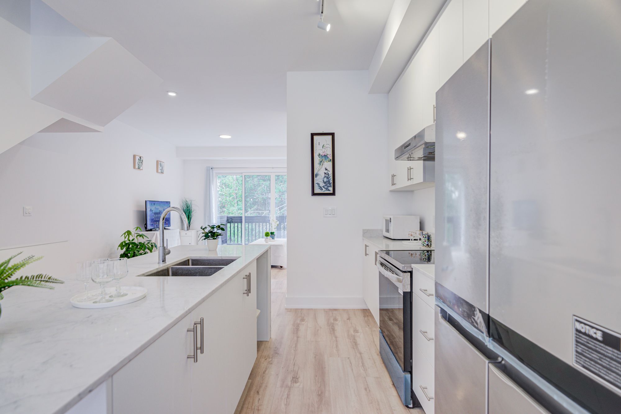 Experience refined living in this beautifully upgraded modern townhome, perfectly situated on a quiet street in one of aurora's most desirable communities. Boasting a rare ravine lot with serene forest and point views, this home offers exceptional privacy and a peaceful natural backdrop. Thoughtfully designed across four levels, it features impressive ceiling heights-8. 6 ft in the basement, 8 ft on the main floor, 10 ft on the second, and 9 ft on the third-creating an open, airy feel throughout. The upgraded basement, completed at a cost of $25,000, includes an additional bedroom and bathroom, ideal for guests or extended family. The kitchen showcases a $5,000 upgraded countertop, blending elegance with functionality. Enjoy outdoor living on the 627 sq. Ft. Rooftop terrace and main floor balcony, perfect for entertaining or relaxing amid lush greenery. Complete with a 7-year tarion warranty, this home delivers the perfect combination of luxury, comfort, and peace of mind in a tranquil, family-friendly setting.
