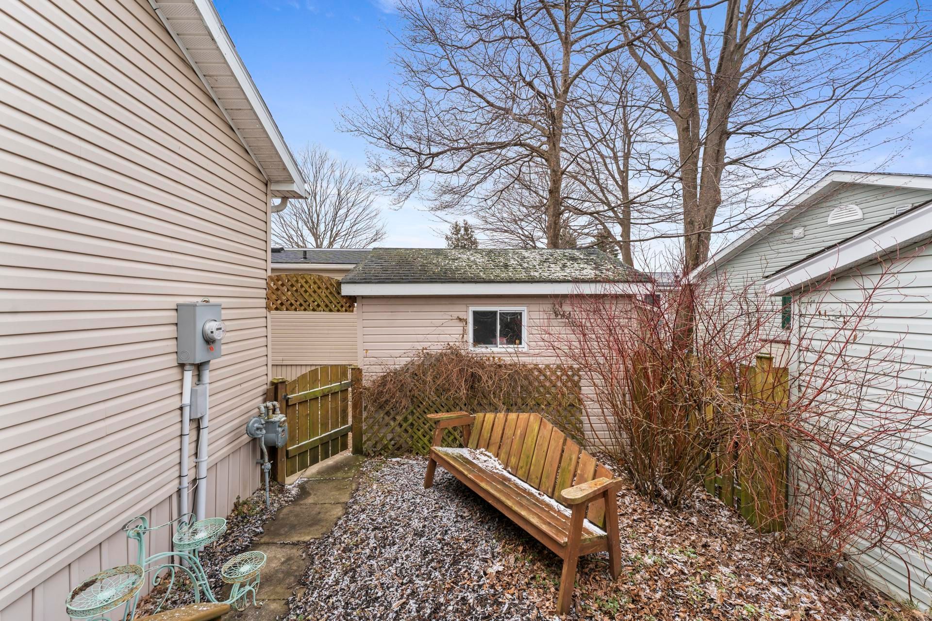Welcome to 27 cheyenne lane at meneset on the lake, a 55+ parkbridge lifestyle community. Featuring a beautifully maintained residence that harmonizes comfort and modern living. This inviting home features 2 spacious bedrooms and 2 full bathrooms, making it perfect for relaxation or entertaining. The open-concept design seamlessly connects the kitchen, dining room, and living room, creating an airy atmosphere ideal for gatherings. In the living room, enjoy the warmth of a corner natural gas fireplace with a stunning stone hearth, a cozy focal point appreciated from both the kitchen and dining areas. The heart of the home, the kitchen, boasts stainless steel kitchenaid appliance. The island provides ample prep space, while abundant cabinetry ensures all your kitchen essentials are easily accessible. The generous primary bedroom serves as a peaceful retreat, featuring a 3-piece ensuite bathroom with an accessible shower and a spacious walk-in closet. The charming second bedroom offers access to a private backyard deck, perfect for enjoying morning coffee or evening relaxation. This home is functional and filled with natural light, thanks to its thoughtful design. It includes a convenient laundry room, an extra-wide hallway for easy navigation, and a shed for additional storage. You'll also benefit from an owned reverse osmosis water filtration system and hot water heater. Located just minutes from goderich, this property offers the tranquility of lakeside resort living on the shores of lake huron, with exclusive access to a private sandy beach perfect for summer days. Don't miss your chance to call this fantastic property home-call today to schedule your viewing!