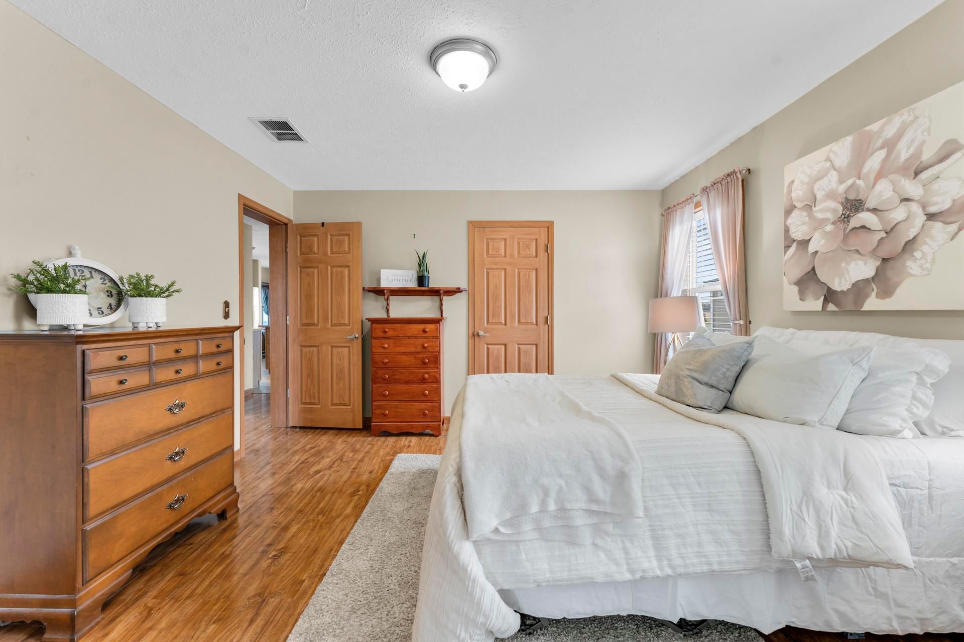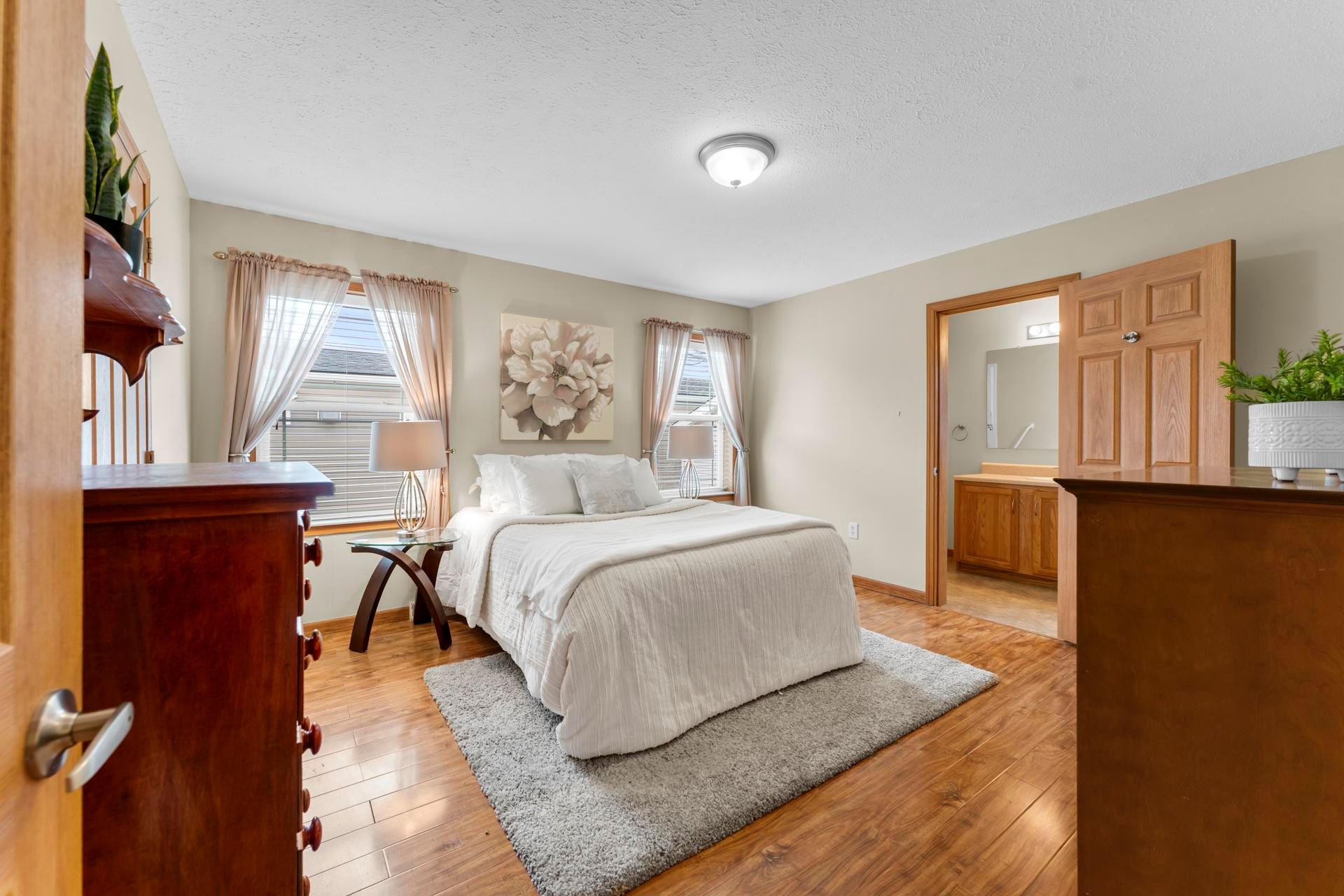 • Generous primary bedroom with ensuite and walk-in closet for comfort.