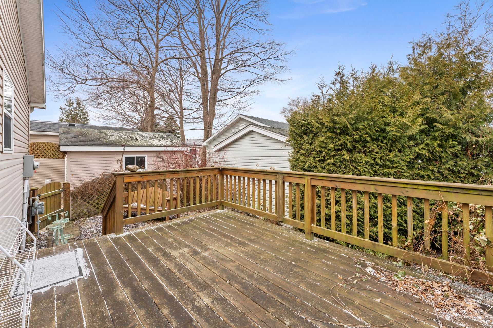 • Private backyard deck ideal for morning coffee or evening relaxation.