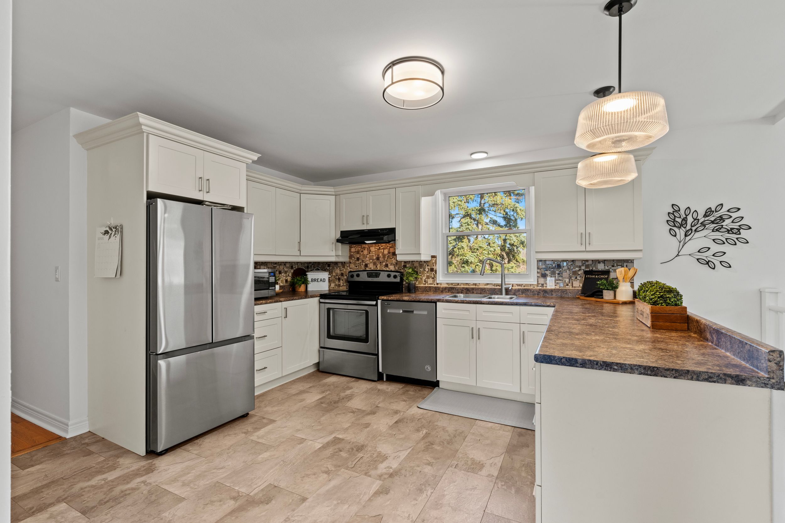 Tucked away on a quiet dead-end street beneath the escarpment, this sprawling all-brick bungalow offers over 3,000 sq ft of thoughtfully designed living space. Set on an expansive 110 x 120 ft lot with no rear neighbours, the setting is as private as it is peaceful. Inside, the home features 3+2 bedrooms, a functional main floor laundry, and a beautifully defined dining room, perfect for hosting and everyday living. The layout offers both openness and intention, anchored by two wood-burning fireplaces that bring warmth and character to multiple living spaces. The kitchen walks out to a covered deck overlooking the private backyard, complete with a hot tub, creating a seamless indoor-outdoor experience ideal for relaxing or entertaining. With abundant storage throughout and parking for up to 8 vehicles, this home delivers both comfort and practicality. A rare opportunity to live in a quiet, established pocket while enjoying space, privacy, and the natural beauty of the escarpment.