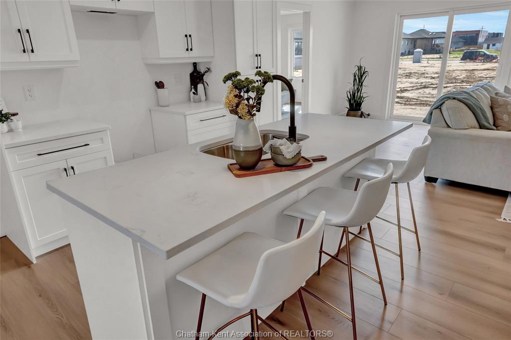 *** open house will be held at 20 cornerstone place *** welcome to this brand new open-concept semi-detached rancher on chatham’s south side. Offering spacious, modern one-floor living, this home is filled with natural light and features two bedrooms and two full baths, including a large primary suite with walk-in closet and ensuite. The primary bedroom is thoughtfully positioned at the back of the home for privacy, while the additional bedroom and main bath are located at the front. The open layout flows from the kitchen with quartz countertops into the dining and living areas, where a cozy fireplace adds warmth and charm. The second bedroom offers flexibility for kids, grandkids, guests, or a home office. Enjoy the convenience of main-floor laundry, an attached garage, a full unfinished basement for future development, and a covered back patio perfect for relaxing outdoors. This mi cazza construction quality-built home delivers exceptional value and comfort in a prime south chatham location. Photos may include virtual staging or images from a similar build. Purchase price based on hst rebate applicable effective april 1, 2026 to march 31, 2027, assignable to the builder. Price subject to buyer’s eligibility for the rebate and the enactment of the applicable legislation. In the event the buyer does not qualify for the rebate, in whole or in part, the purchase price shall be increased by the corresponding amount of hst.