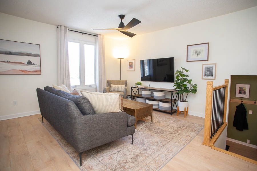 Welcome to 27 coulbeck road, a beautifully updated 2+2 bedroom, 2 full bathroom home in the highly sought-after lynden hills neighbourhood in brantford's desirable north end. Move-in ready and thoughtfully upgraded throughout, this home offers a flexible living space ideal for families or downsizers alike. The bright main floor features new laminate flooring (2024), fresh paint, updated trim, and a spacious living room filled with natural light. The fully renovated eat-in kitchen (2024) has been extended to create a functional dining area and showcases white shaker cabinetry with new hardware, soft-close drawers, butcher block countertops, stainless steel lg appliances, a coffee bar with added storage, and a new sink and faucet. Two generous bedrooms and a fully renovated 3-piece bathroom with a walk-in shower, subway tile, and stone countertop vanity complete the main level. The finished lower level offers a large recreation room with bright windows and a fireplace (as-is), two additional spacious bedrooms, a second fully renovated 3-piece bathroom, and a laundry room with an lg washer and dryer. Major updates include furnace and a/c (2024), electrical panel (2023), roof (approx. 2014), windows (approx. 2012), garage man door (2025), new light fixtures, hardwood stairs, and updated closet doors and hardware. Located close to parks, schools, shopping, and with easy highway access, this north end home offers comfort, convenience, and modern updates in a fantastic neighbourhood.