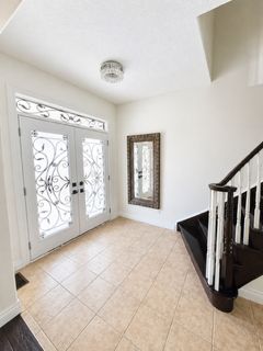 Newly renovated home with fresh paint and brand-new carpeting throughout, ideally located justminutes from hwy 401. Parking for up to 6 vehicles with a double car garage and extended driveway. Main floor offersa private office, hardwood dining area, and a spacious kitchen with walk-in pantry open to theliving space. Upstairs laundry adds everyday convenience. The primary suite features a 5-piece ensuite andtwo walk-in closets. Finished basement with in-law suite potential, including a bedroom, full washroom, large recarea, and rough-ins for future kitchen and laundry. Deep backyard with shed and plenty of outdoor space. Set in a family-friendly neighbourhood close to schools, parks, gyms, and places of worshipincluding a gurdwara and mosque.