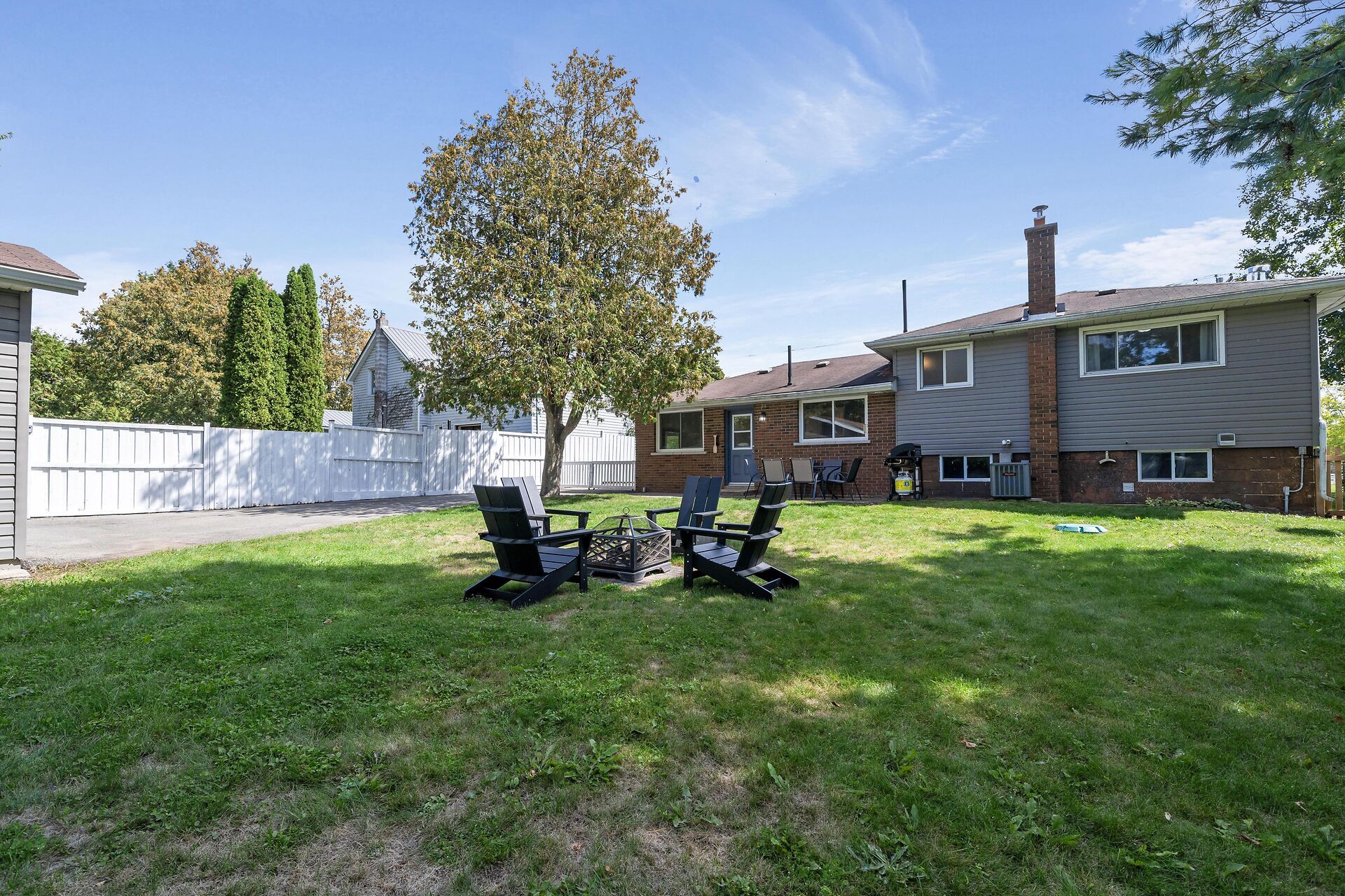 • Three-level side split with a large, fully fenced yard for outdoor activities.