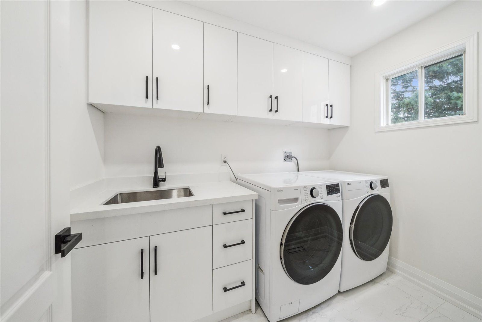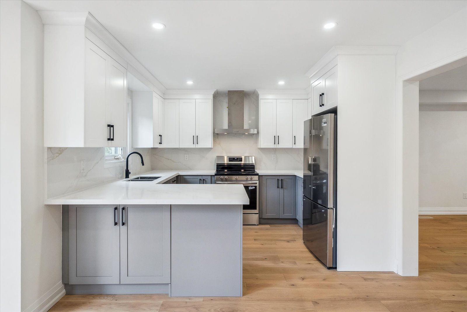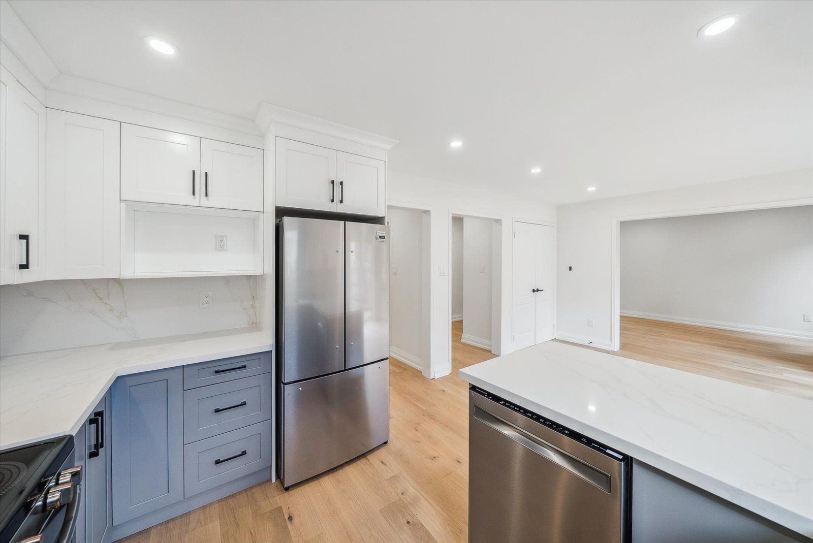 Welcome to 27 edenbridge dr. In the popular area of beverly glen. This property features over 3500 sq ft. Of living space. This home has been fully renovated from top to bottom creating a model home environment. Engineered white oak hardwood throughout the main and upper floors. Large living room/dining room combination, main floor office, family room with gas fireplace open to a large kitchen with all new s/s appliances, quartz counters with matching backsplash and walk-out to deck. Large laundry room with upper cabinets and brand new front load washer/dryer. Beautifully finished staircase with rod-iron railings bring you to the upper floor. Huge primary bedroom with 5pc ensuite, glass shower, standalone bath, double sink and ceramic tiles. 3 more large bedrooms upstairs and a large second bath. Fully finished basement offering 2 more bedrooms, another office area, 3pc. Bath and large rec room. Tons of storage throughout. Home has been re-finished on outside by spray-net changing the complete look of the home and matching the modern finishes inside. Large shed in rear private garden. Professionally renovated by a 5-star home stars contracting company. This home is situated on a quiet crescent with only one neighbour. Walking distance to promenade mall, westmount high school, transit and synagogues. Check out the virtual tour for a true view of this masterpiece. This is a power of sale property and move-in ready.