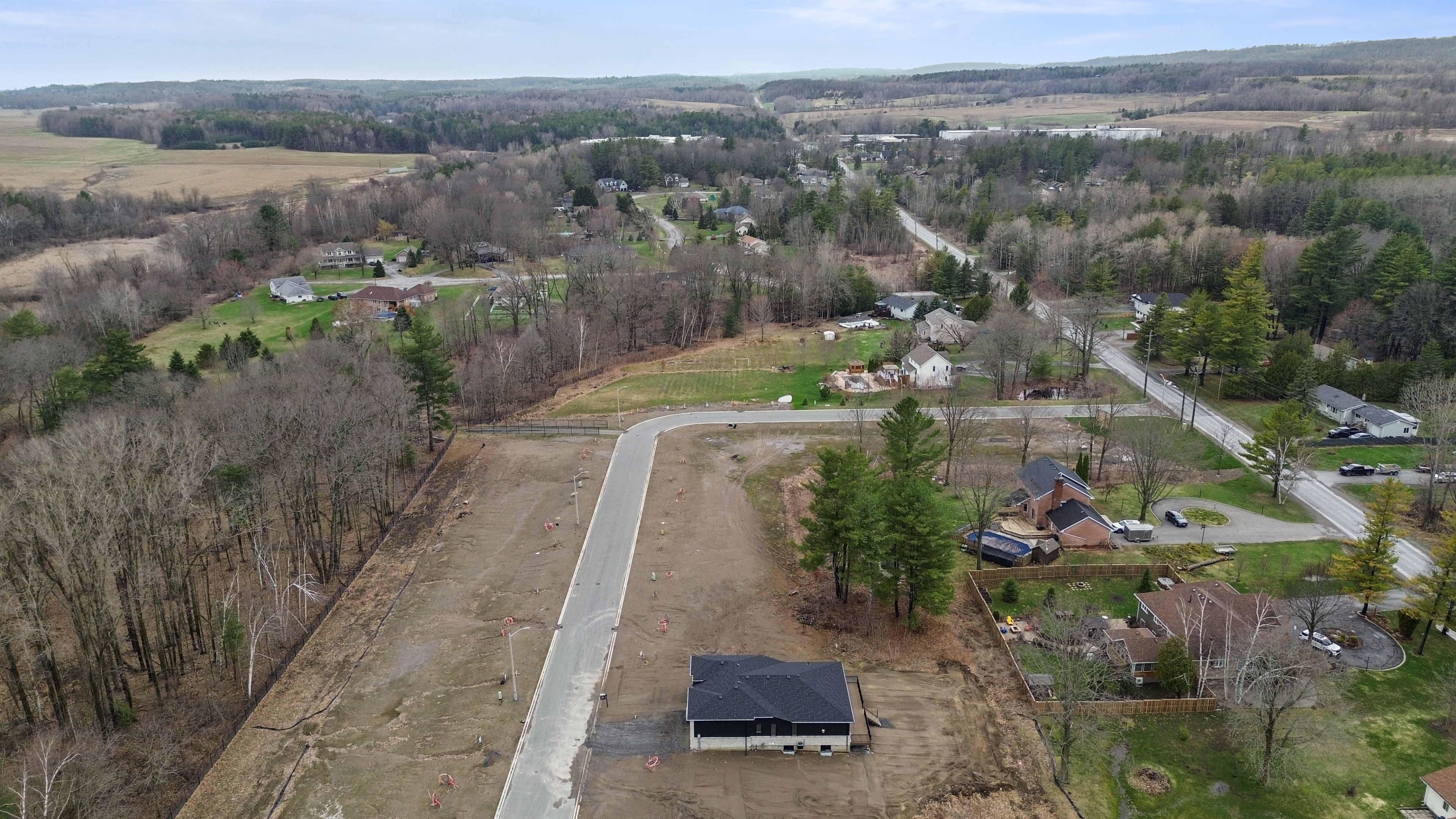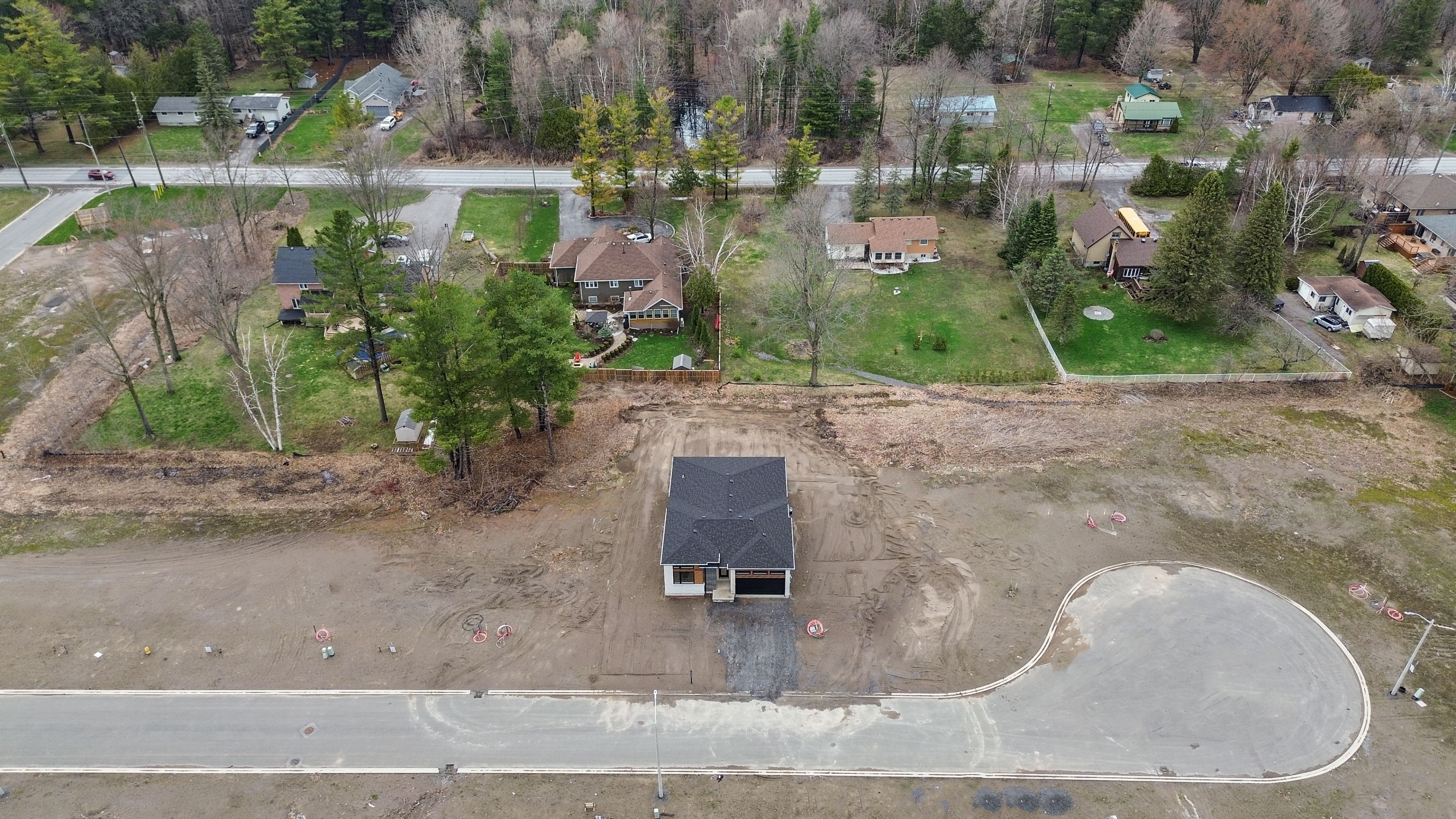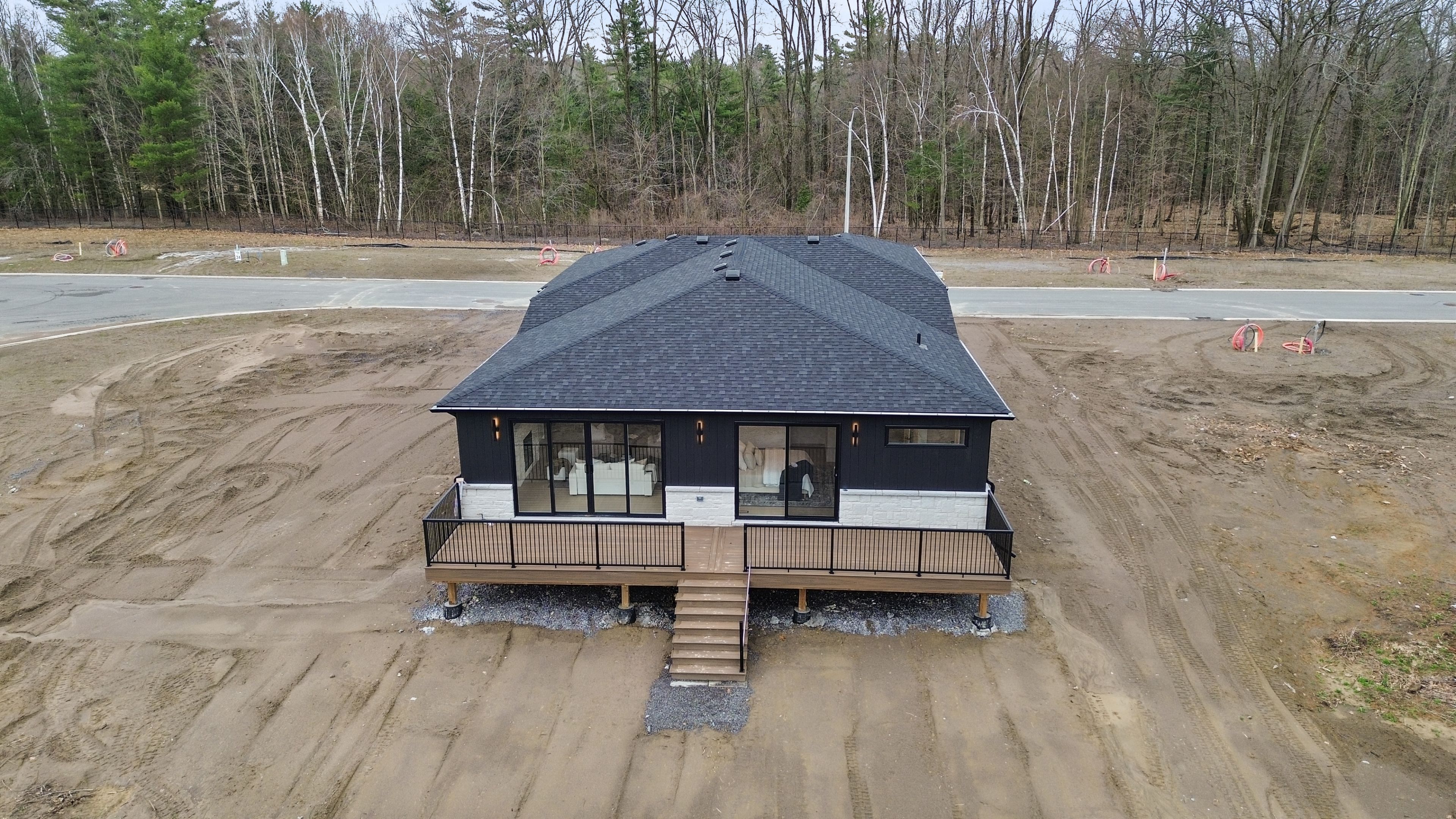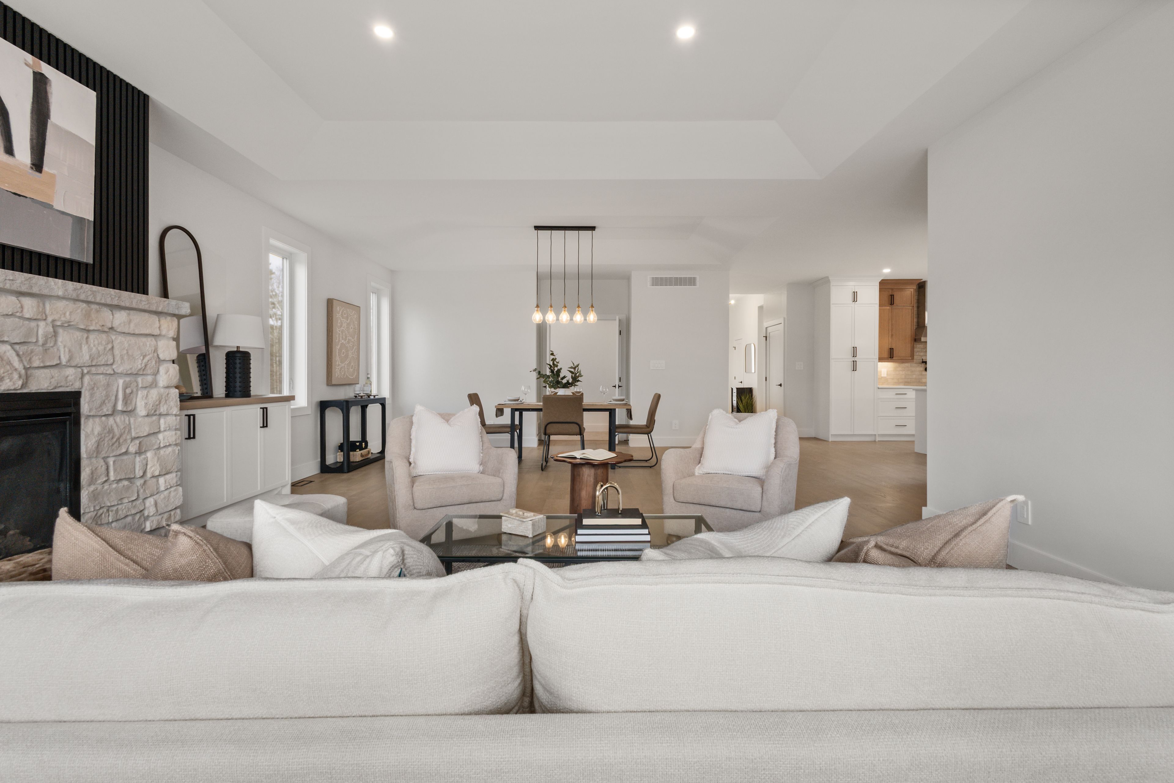 Another quality build by county homes, introducing the whispering pine-set within an exclusive cul-de-sac community of just 31 homes with views of tremur lake. This 1,970 sq. Ft. Home features a striking modern façade with a blend of stone, brick and lp smartside, a covered porch and an 8-ft multipoint entry door. Inside, bedroom 1 offers soaring ceilings, an oversized window with transom and access to a 4-piece bathroom with tiled walls and quartz counters. The foyer leads into a spacious custom kitchen with wraparound cabinetry and a large island, flowing into the dining and living areas highlighted by a double tray ceiling, gas fireplace with stone surround, built-in cabinetry and a 12-ft sliding door to the rear trex deck. Double doors open to the laundry/mudroom with additional built-ins and access to the insulated, drywalled 2-car garage. The primary suite features an 8-ft sliding door to the rear deck, along with a well-appointed ensuite with double vanity, curbless shower, water closet and walk-in closet. The full unfinished basement provides a blank canvas to customize the space to your needs. A thoughtfully designed home with elevated finishes throughout, set in one of the area's most desirable communities.