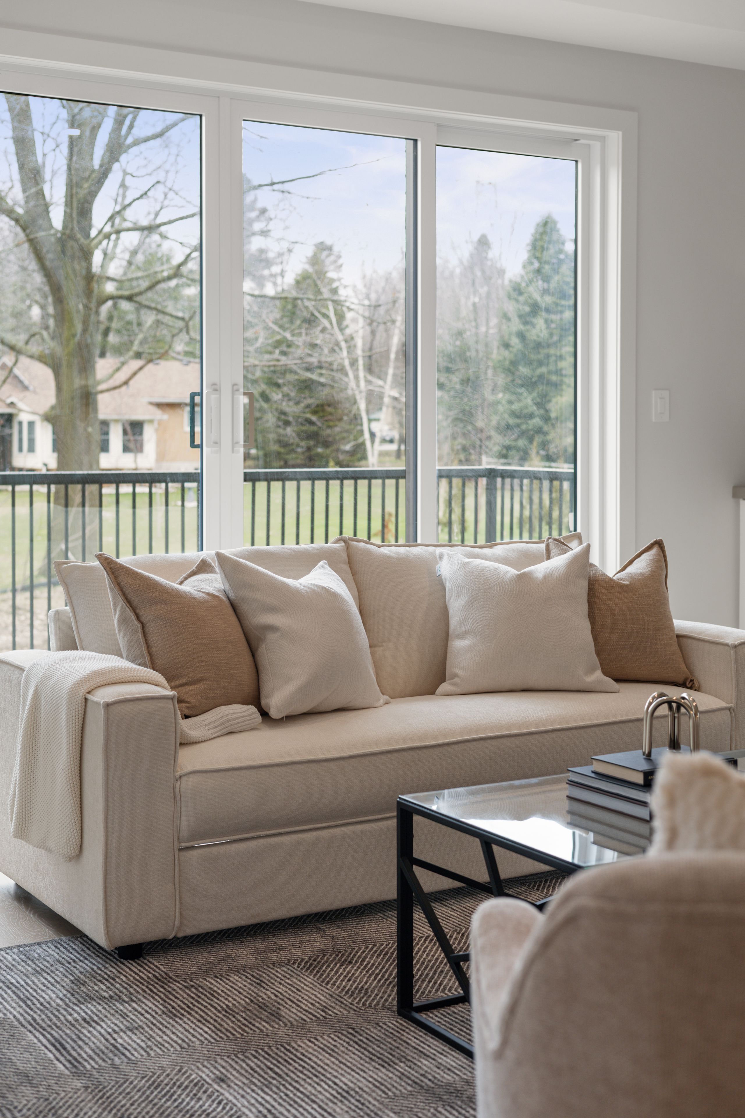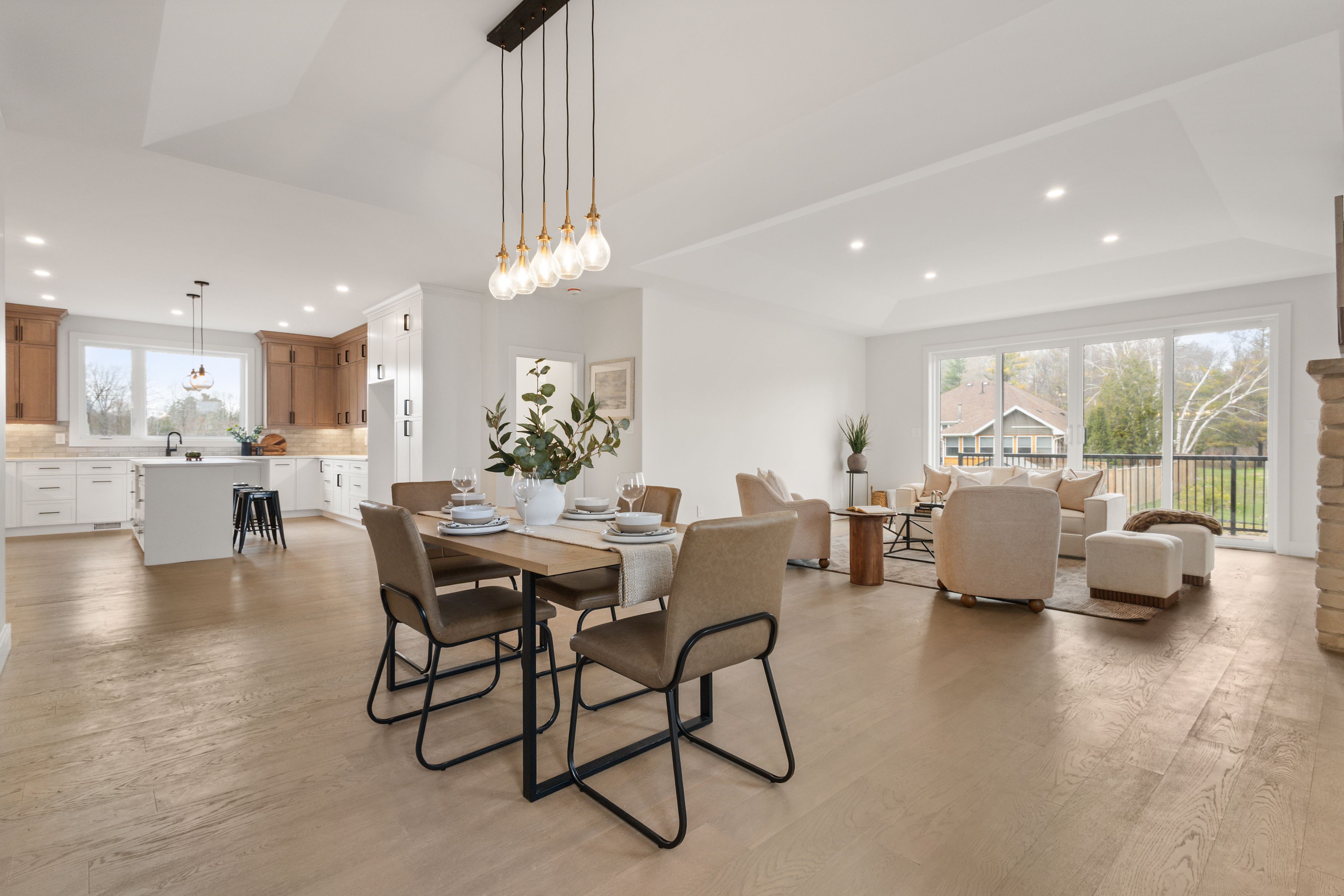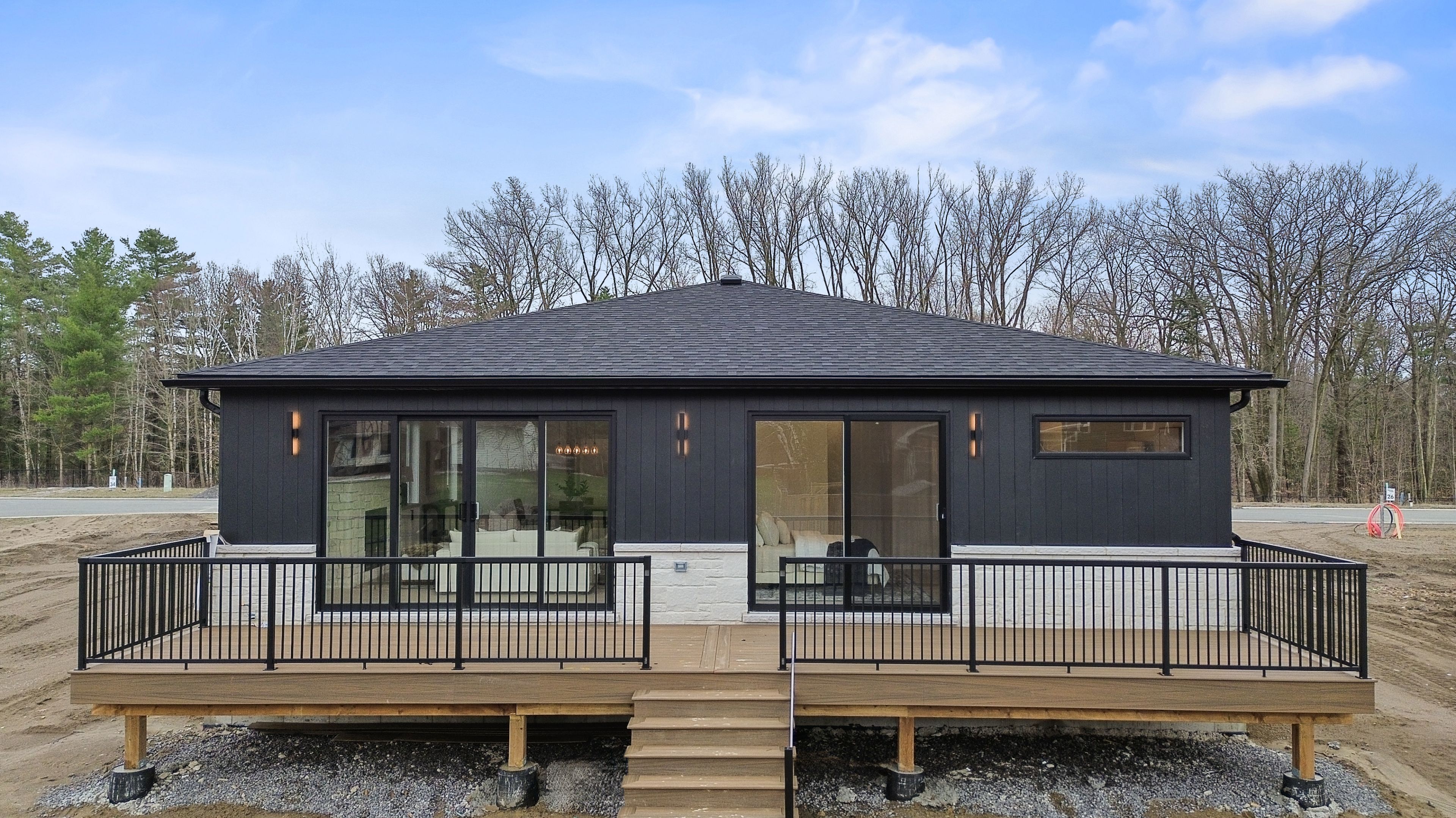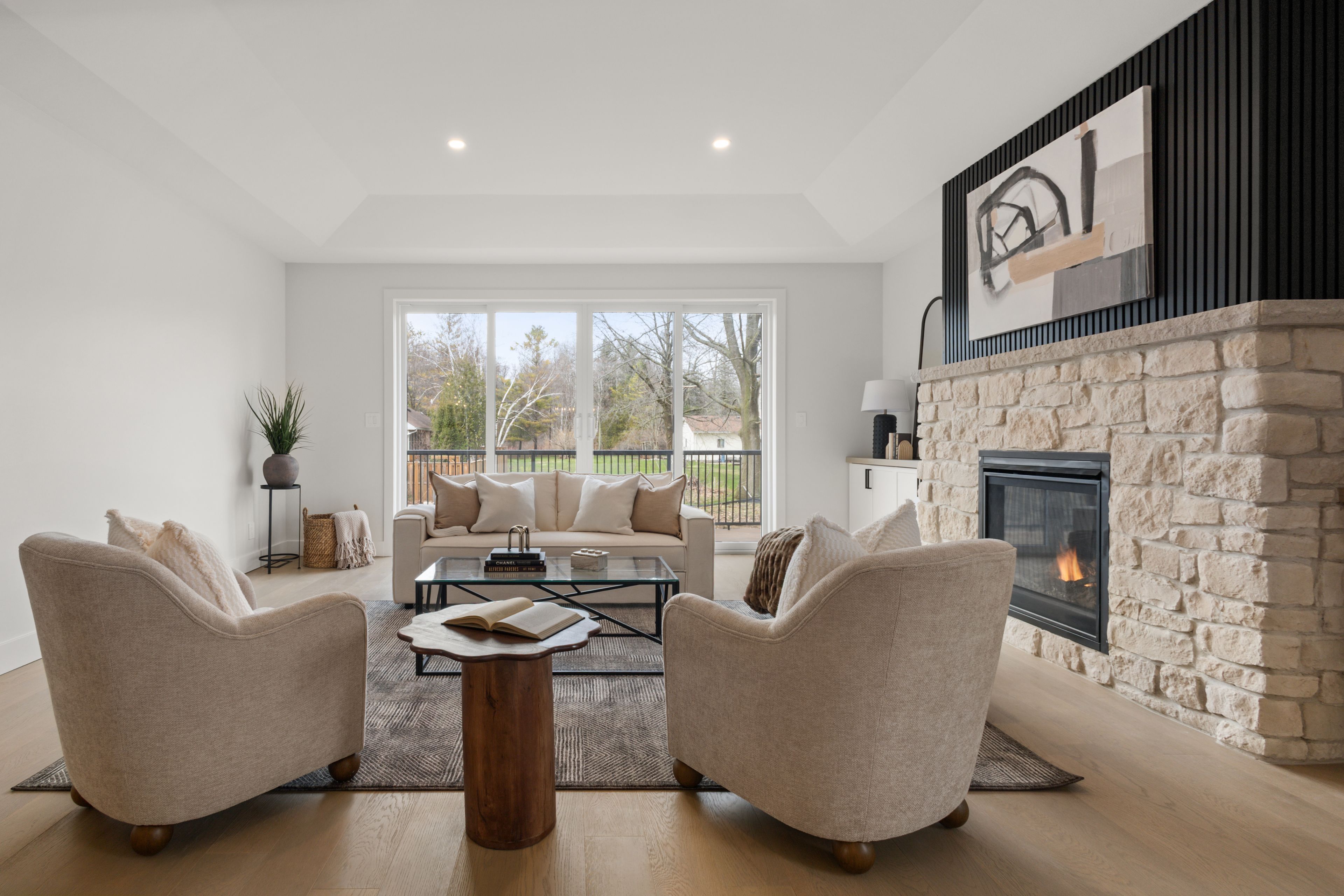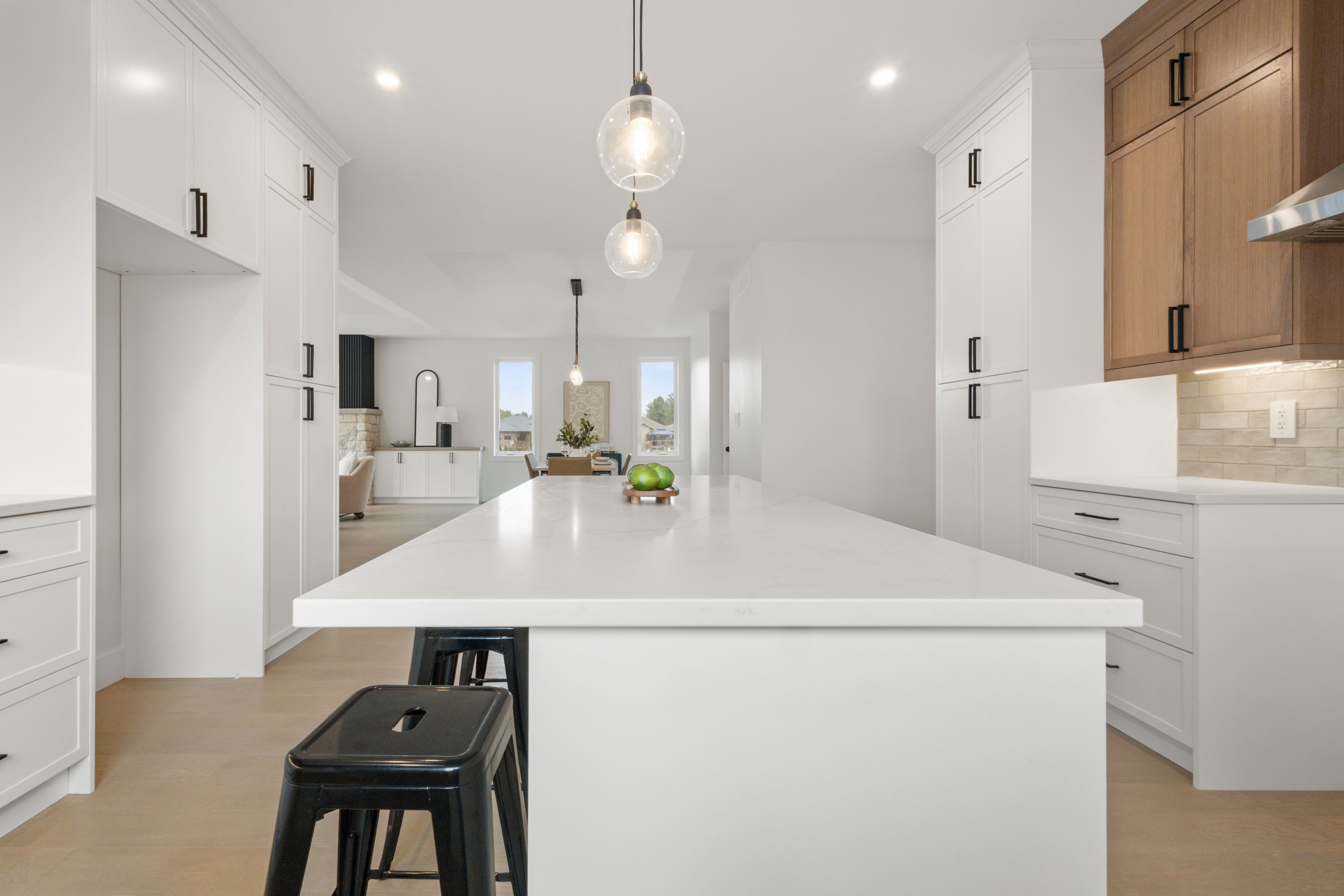 Another quality build by county homes, introducing the whispering pine-set within an exclusive cul-de-sac community of just 31 homes with views of tremur lake. This 1,970 sq. Ft. Home features a striking modern façade with a blend of stone, brick and lp smartside, a covered porch and an 8-ft multipoint entry door. Inside, bedroom 1 offers soaring ceilings, an oversized window with transom and access to a 4-piece bathroom with tiled walls and quartz counters. The foyer leads into a spacious custom kitchen with wraparound cabinetry and a large island, flowing into the dining and living areas highlighted by a double tray ceiling, gas fireplace with stone surround, built-in cabinetry and a 12-ft sliding door to the rear trex deck. Double doors open to the laundry/mudroom with additional built-ins and access to the insulated, drywalled 2-car garage. The primary suite features an 8-ft sliding door to the rear deck, along with a well-appointed ensuite with double vanity, curbless shower, water closet and walk-in closet. The full unfinished basement provides a blank canvas to customize the space to your needs. A thoughtfully designed home with elevated finishes throughout, set in one of the area's most desirable communities.