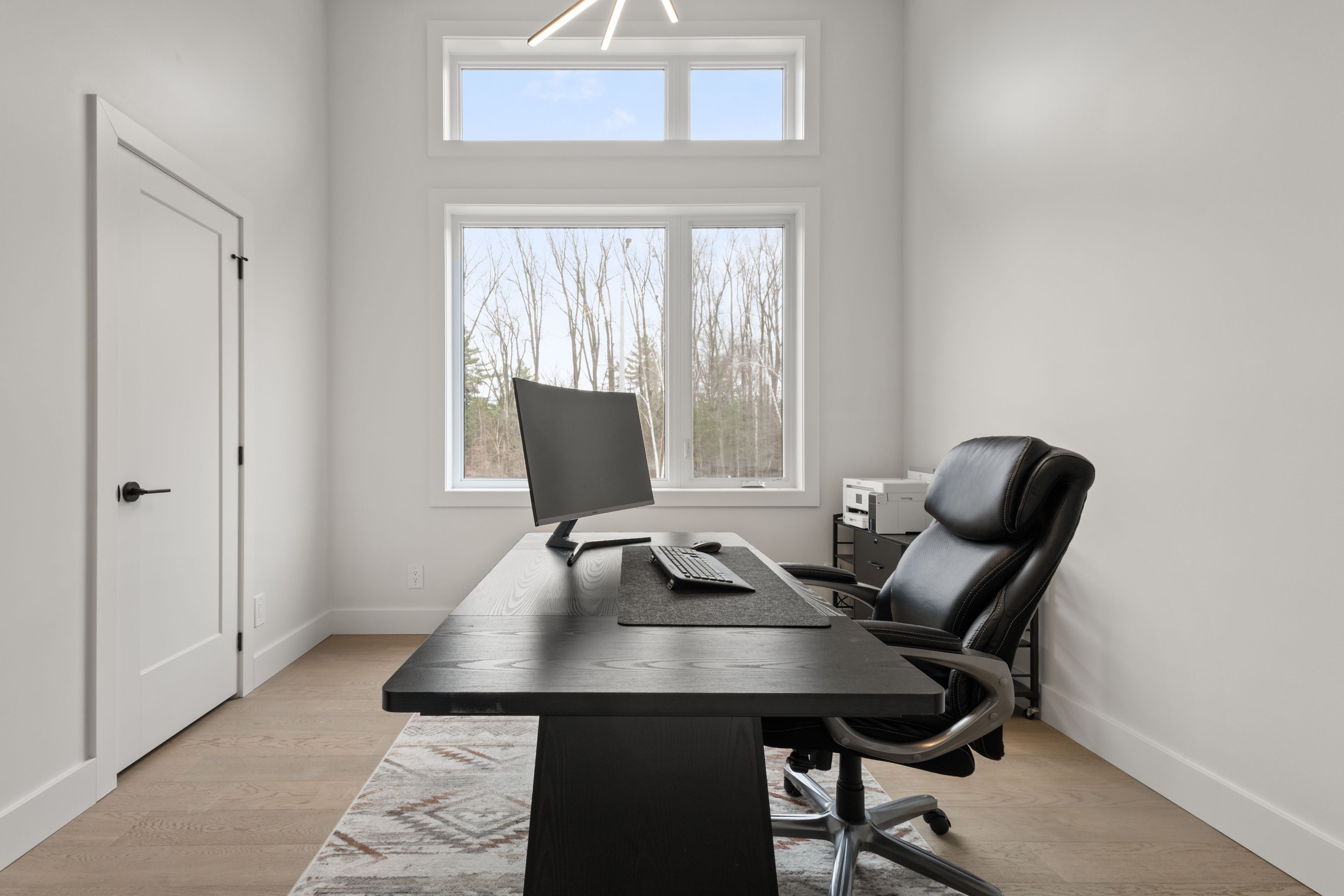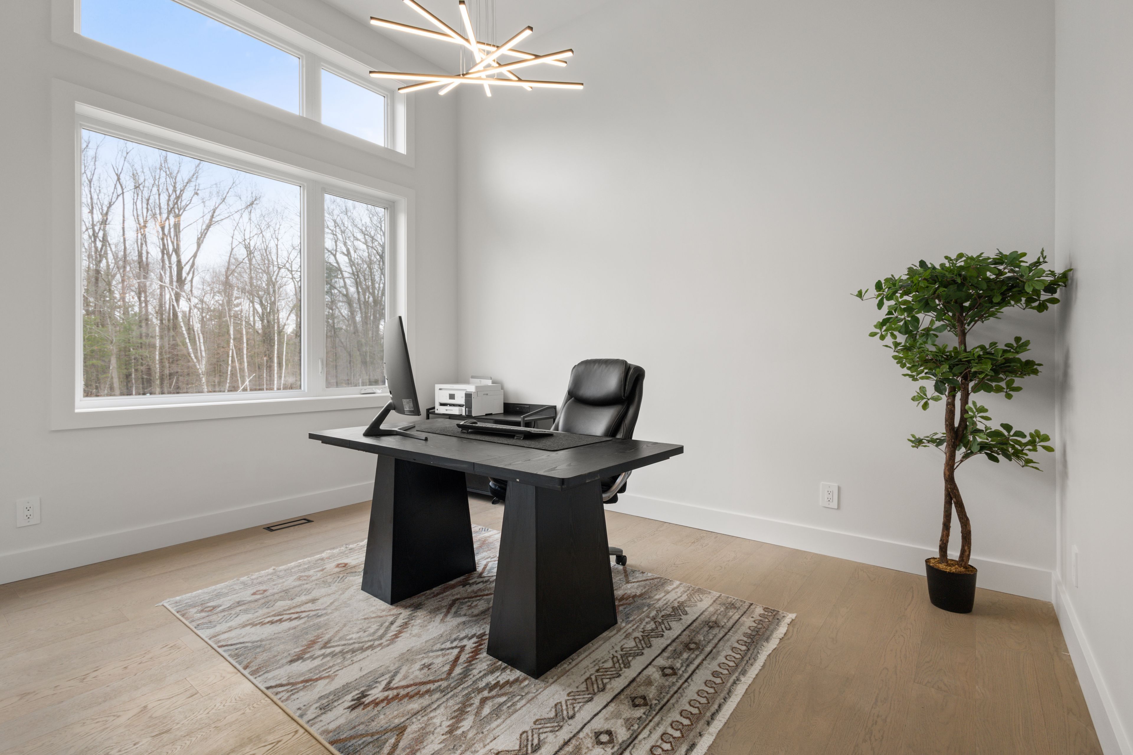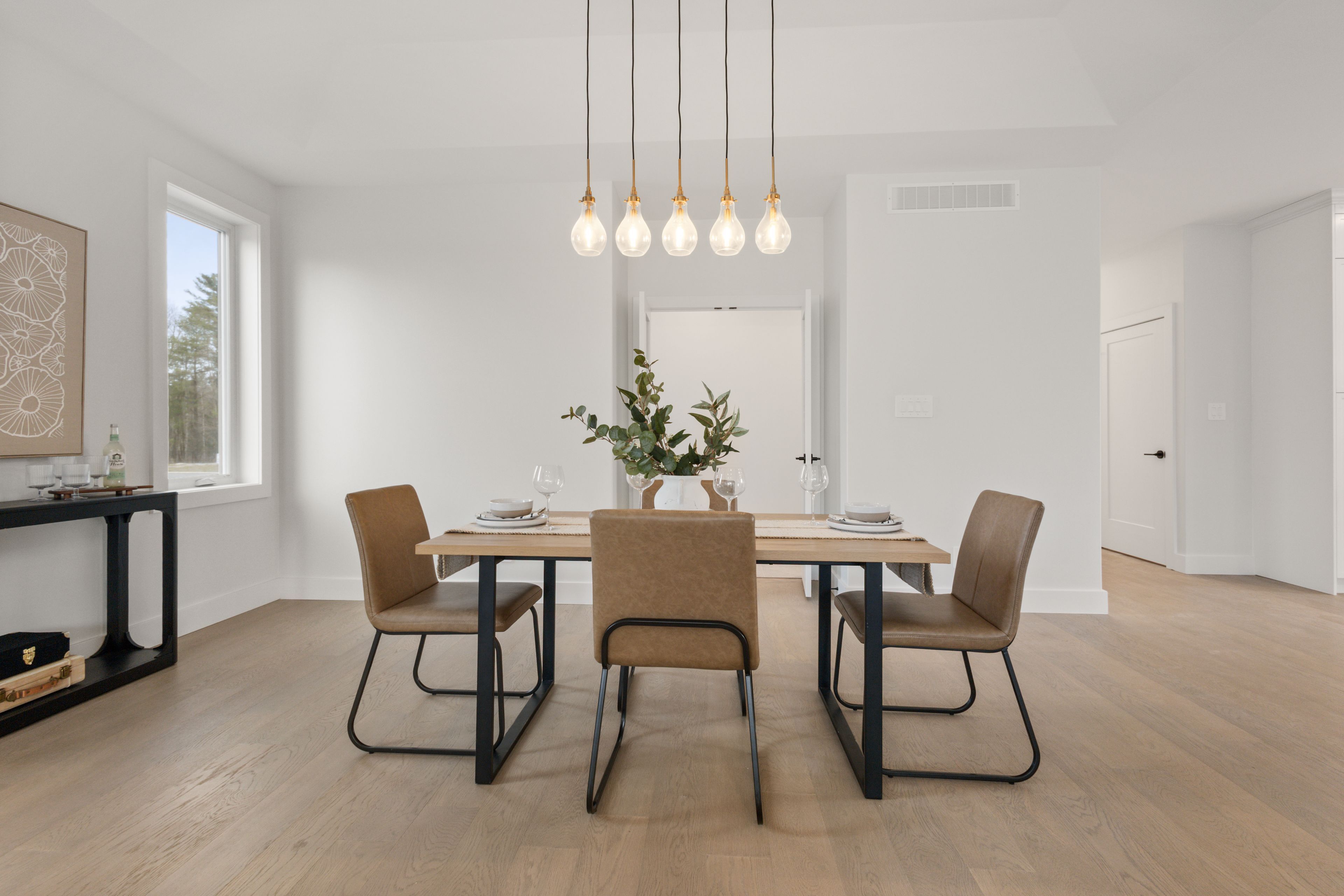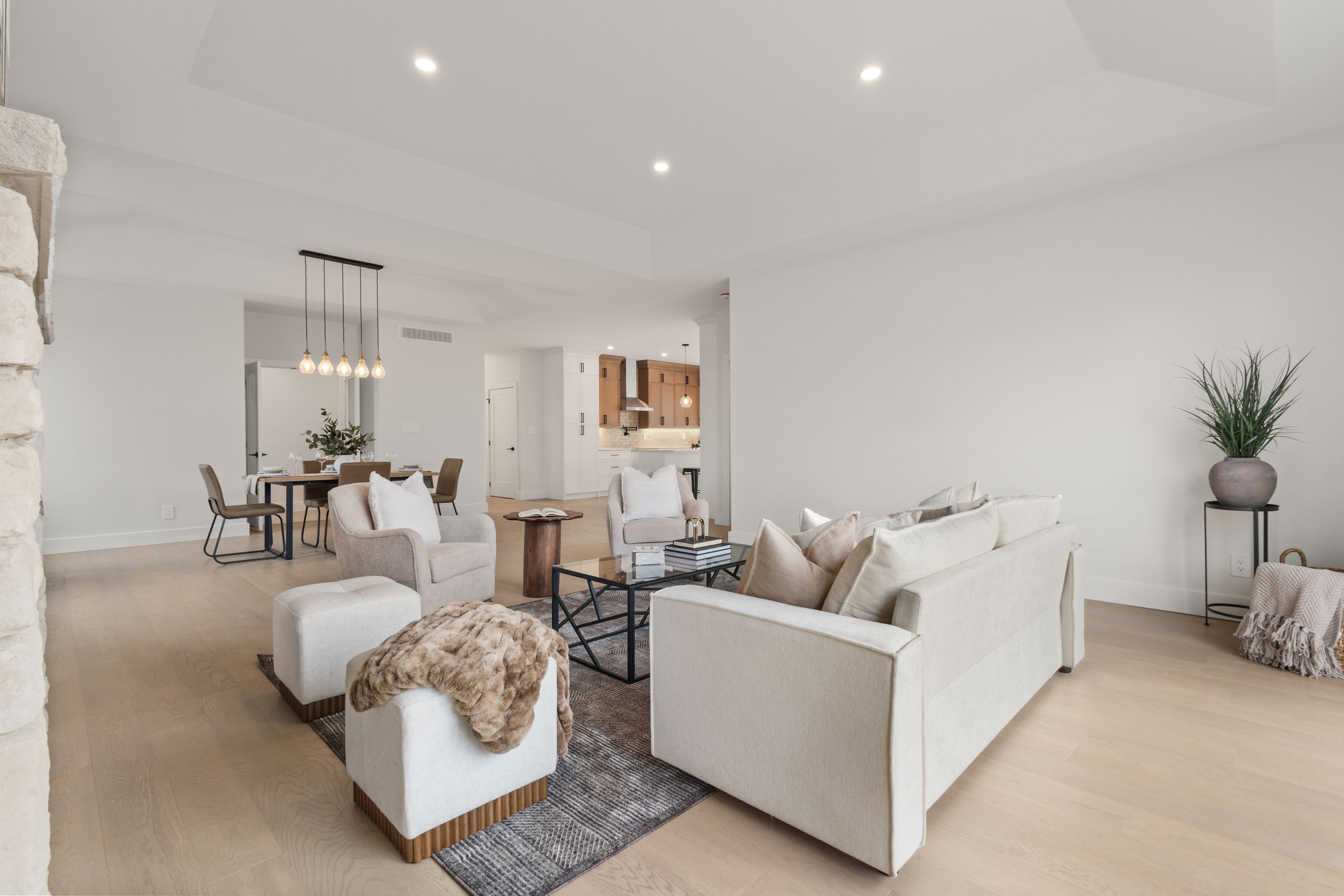Another quality build by county homes, introducing the whispering pine-set within an exclusive cul-de-sac community of just 31 homes with views of tremur lake. This 1,970 sq. Ft. Home features a striking modern façade with a blend of stone, brick and lp smartside, a covered porch and an 8-ft multipoint entry door. Inside, bedroom 1 offers soaring ceilings, an oversized window with transom and access to a 4-piece bathroom with tiled walls and quartz counters. The foyer leads into a spacious custom kitchen with wraparound cabinetry and a large island, flowing into the dining and living areas highlighted by a double tray ceiling, gas fireplace with stone surround, built-in cabinetry and a 12-ft sliding door to the rear trex deck. Double doors open to the laundry/mudroom with additional built-ins and access to the insulated, drywalled 2-car garage. The primary suite features an 8-ft sliding door to the rear deck, along with a well-appointed ensuite with double vanity, curbless shower, water closet and walk-in closet. The full unfinished basement provides a blank canvas to customize the space to your needs. A thoughtfully designed home with elevated finishes throughout, set in one of the area's most desirable communities.