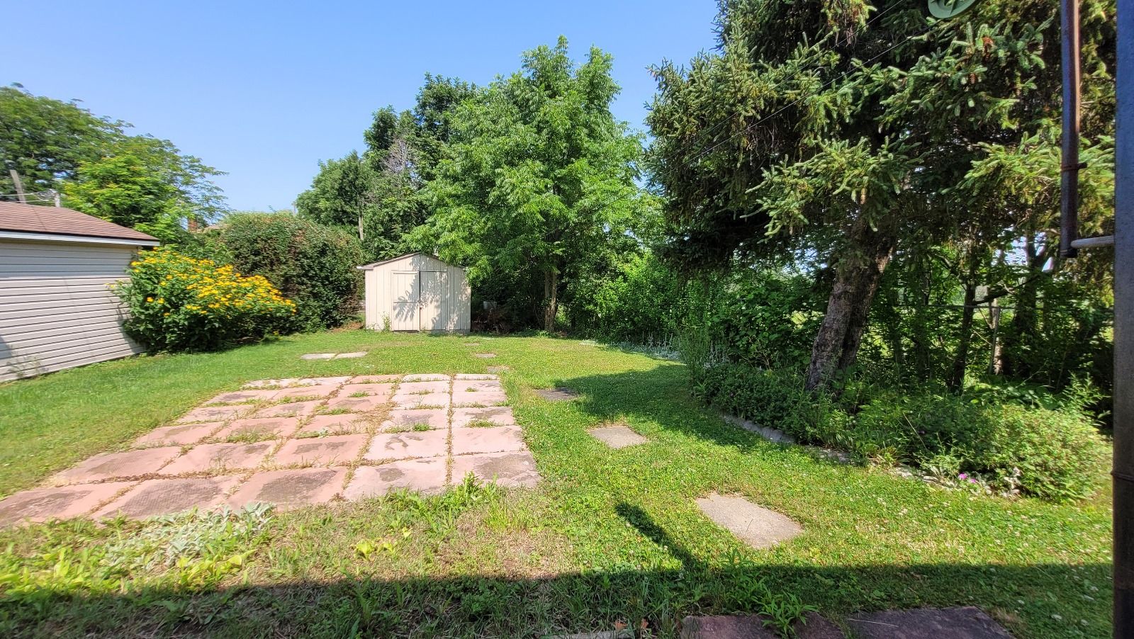 • Peaceful backyard with a shed, perfect for relaxation.
