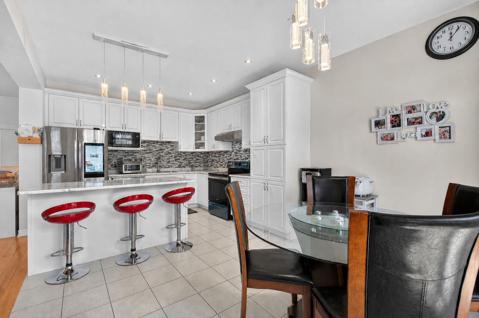 • Modern kitchen with upgraded appliances and walk-out to a deck.