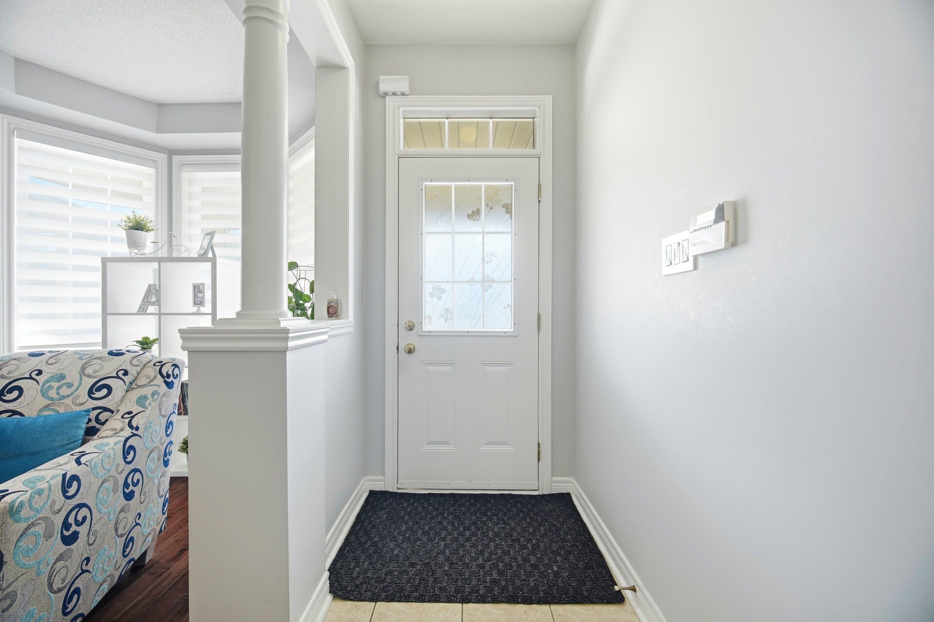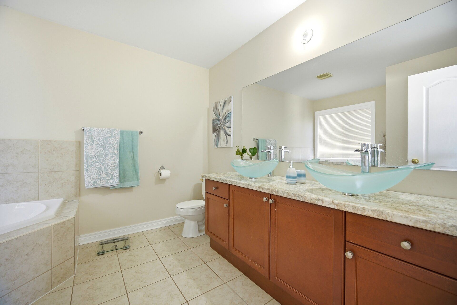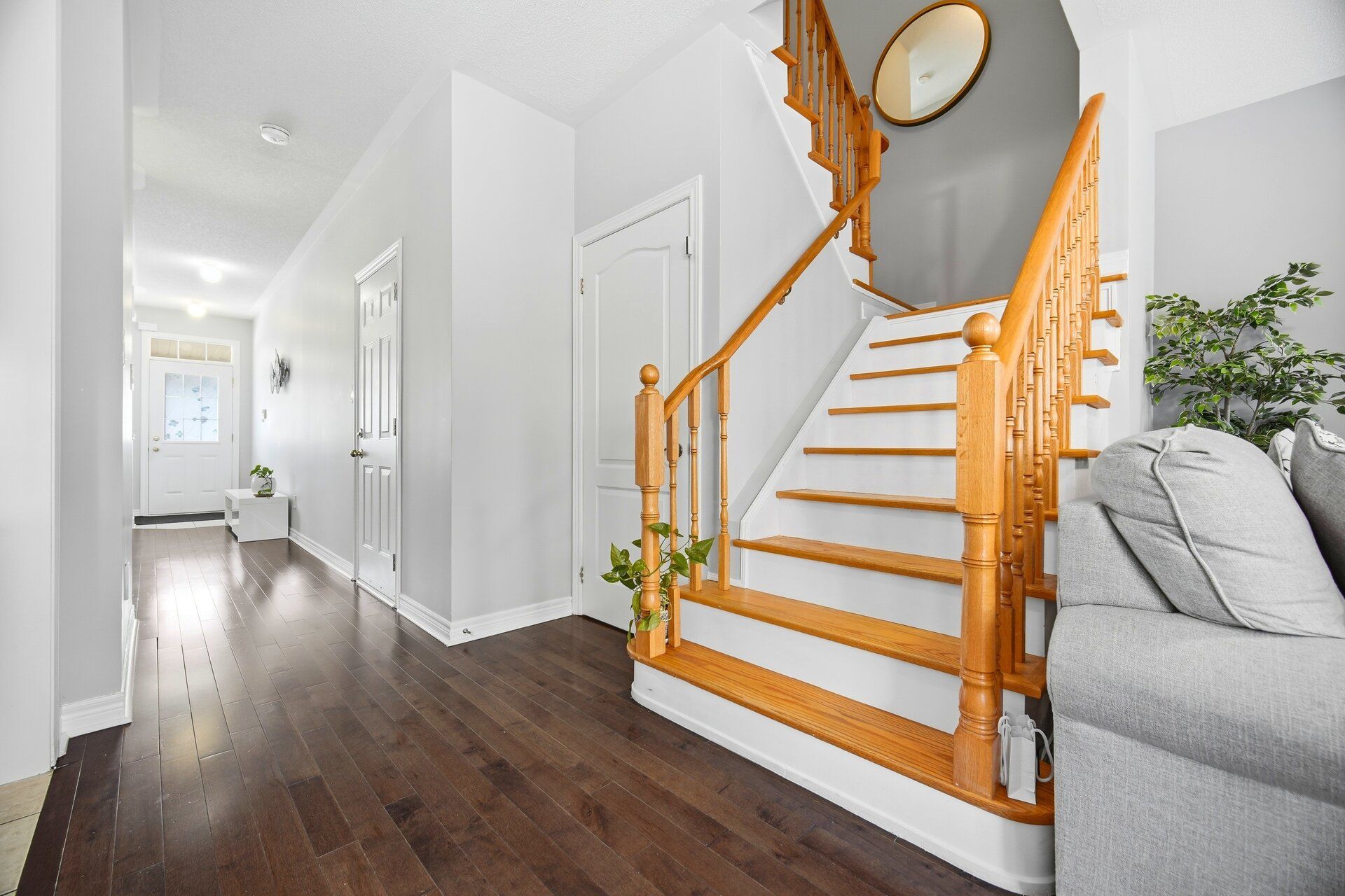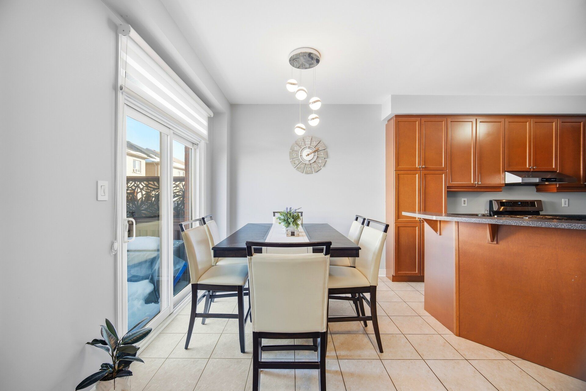 Welcome to this stunning, bright, open-concept end-unit freehold townhouse offering 1,888 sq ft. (mpac). Featuring 3 spacious bedrooms and 3 washrooms, this beautiful home showcases hardwood floors on the main level, a huge front window that fills the space with natural light, and impressive 9-ft ceilings. The open layout is complemented by elegant oak stairs and an upgraded, family-size kitchen with stainless steel appliances. A generous breakfast area walks out to a beautiful patio, while the custom-made, creatively designed deck adds a unique outdoor feature - perfect for family gatherings and entertaining. The finished basement provides additional living space for recreation or a home office. The primary bedroom features a private ensuite and two large his & hers walk-in closets. All rooms are spacious, and thoughtfully designed for comfortable family living. Located close to top-rated schools, parks, public transit, plazas, and countless amenities. One of the best opportunities on the market - a true showstopper not to be missed! This townhouse is an independent structure, with only the garage attached