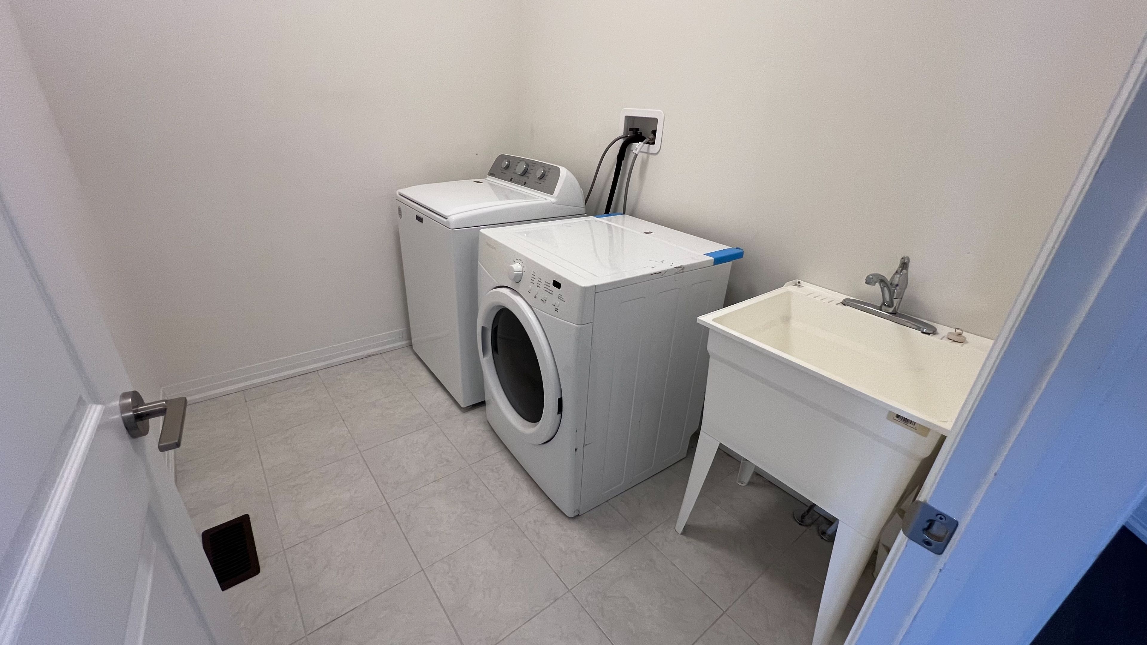 • Convenient upper-level laundry with washer and dryer included.