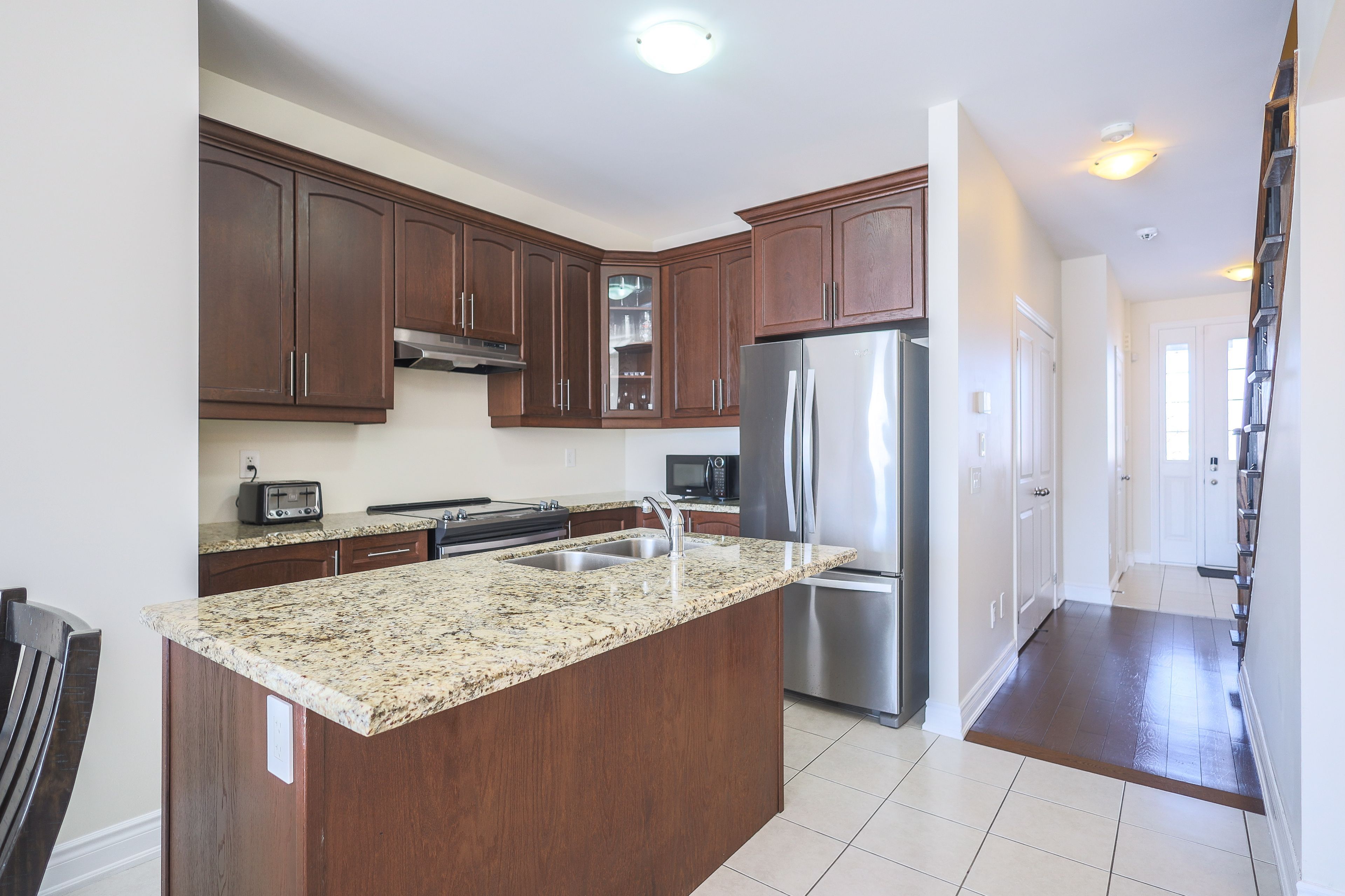 • Freehold 2-storey townhouse with a private backyard and no maintenance fees.
