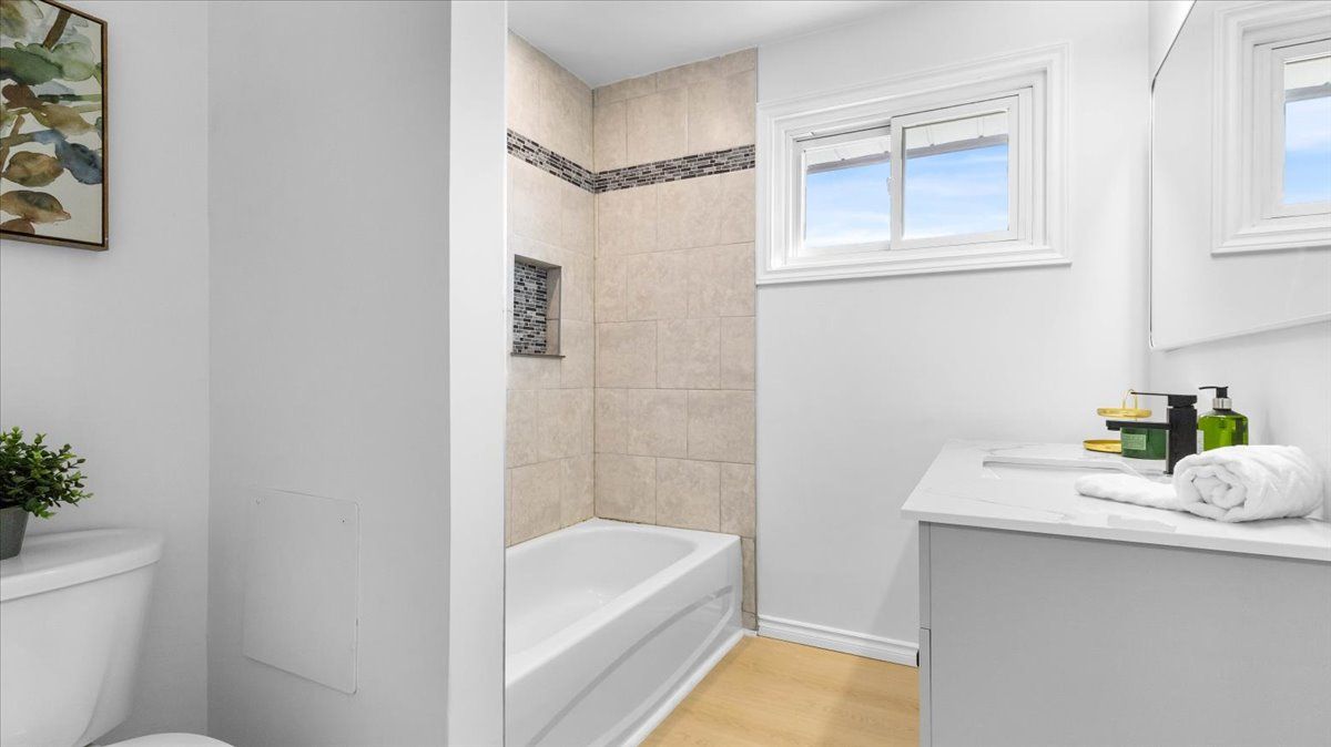 Fully renovated 4 bed, 3 bath side split in belleville's desirable east end. This home sits on a large fully fenced lot and has been upgraded throughout! Updated electrical, ev ready, brand new roof, kitchen, bathrooms, flooring, lightings and much more! The main level features a bright living room and a stunning custom kitchen with soft-close drawers and plenty of storage. Upstairs offers three generous bedrooms, a modern 4-piece bath, and a large linen closet. The lower level boasts a spacious rec room/family room with wood fireplace (currently not in use) ,a 3rd bath, and laundry. A large foyer connects to the attached garage with a work bench and storage with backyard access. Features a hot tub, perfect for entertaining or unwinding. Brand new 3 piece stainless steel kitchen appliances can be provided. Ideally located just minutes from shopping, schools, quinte mall, qhc hospital, restaurants, starbucks, public transit, and the 401, with cfb trenton only 20 minutes away. Move-in ready and designed for modern living.