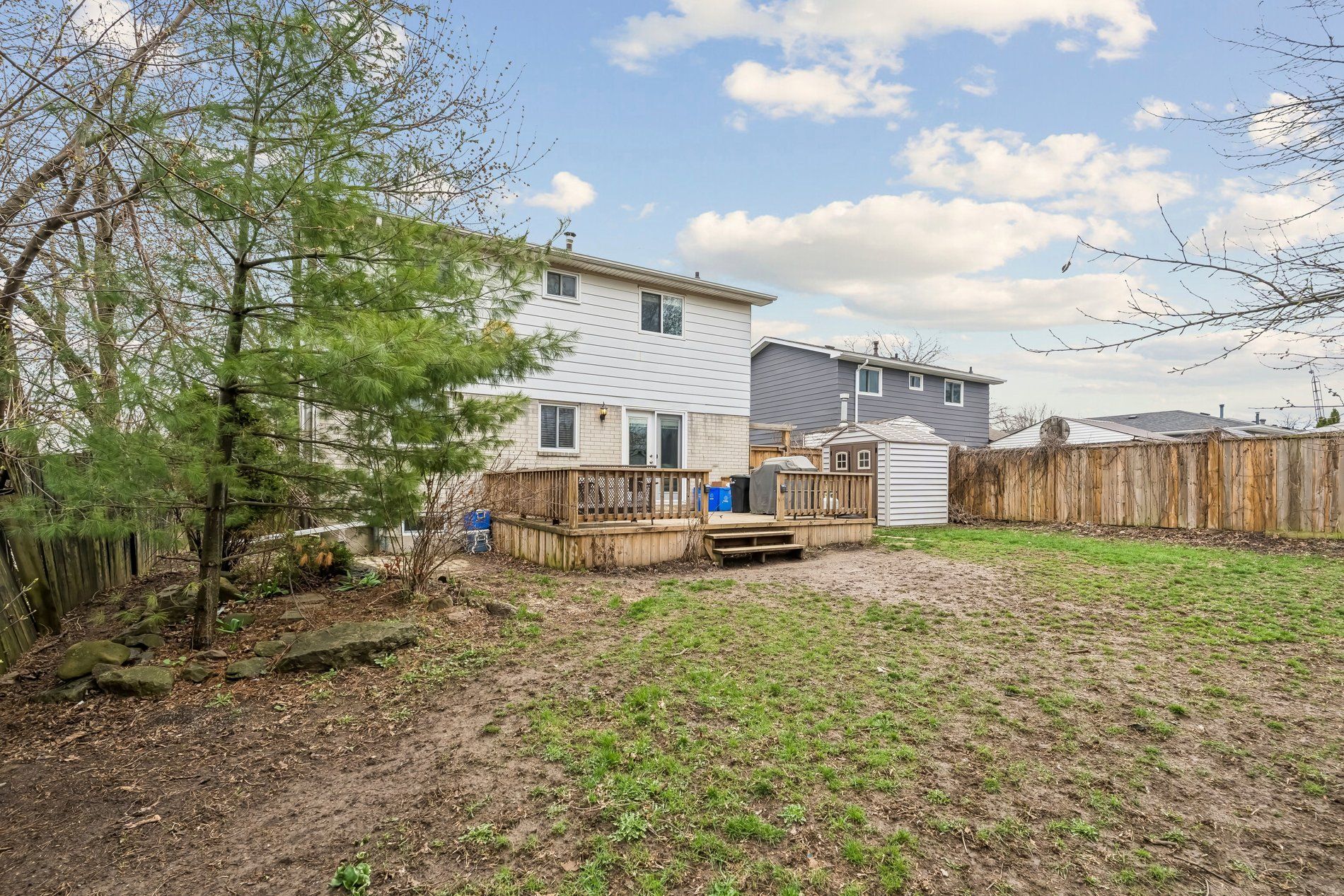 • Large backyard deck for outdoor enjoyment and gatherings.