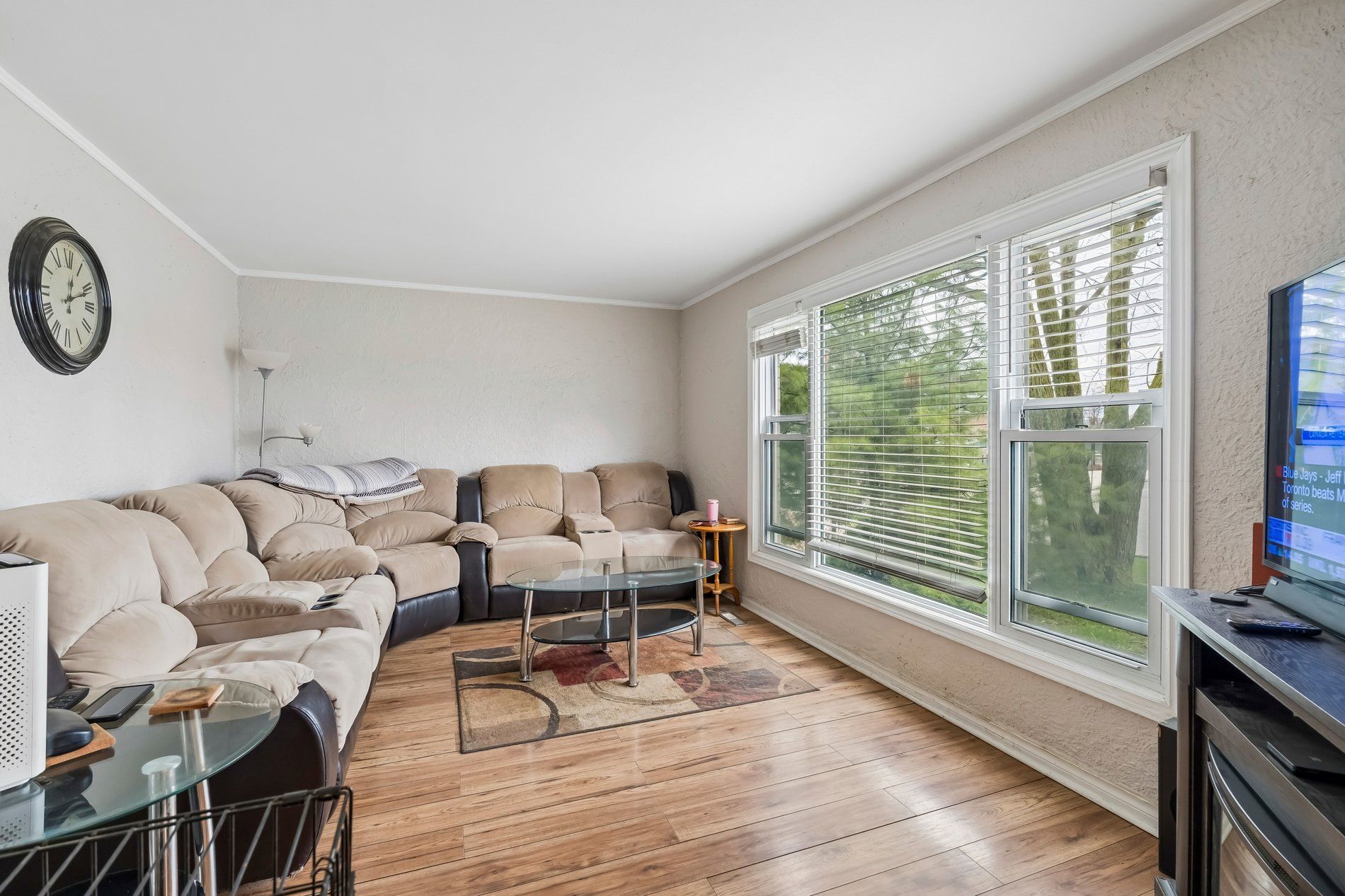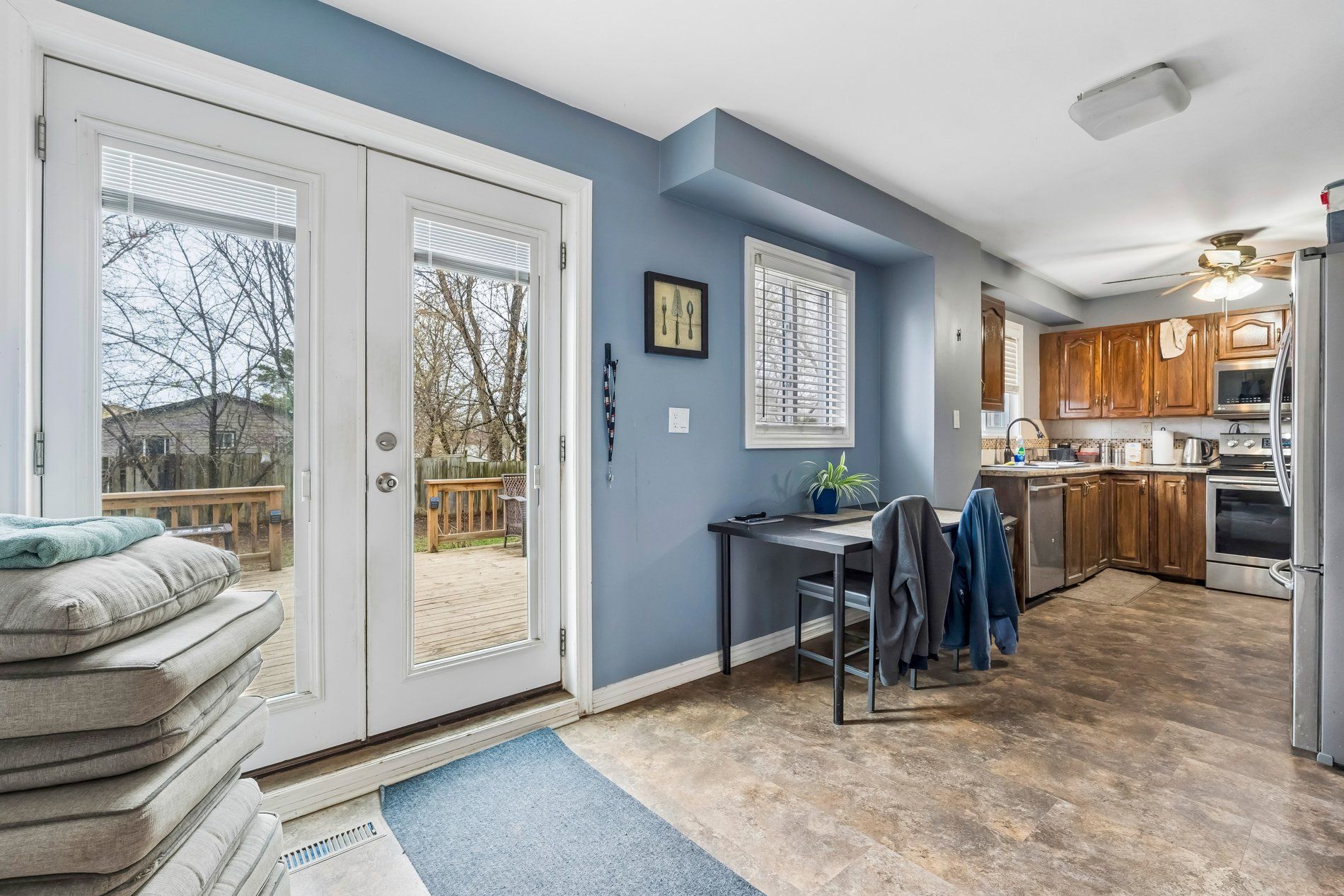 • Bright main floor with spacious living and dining areas.