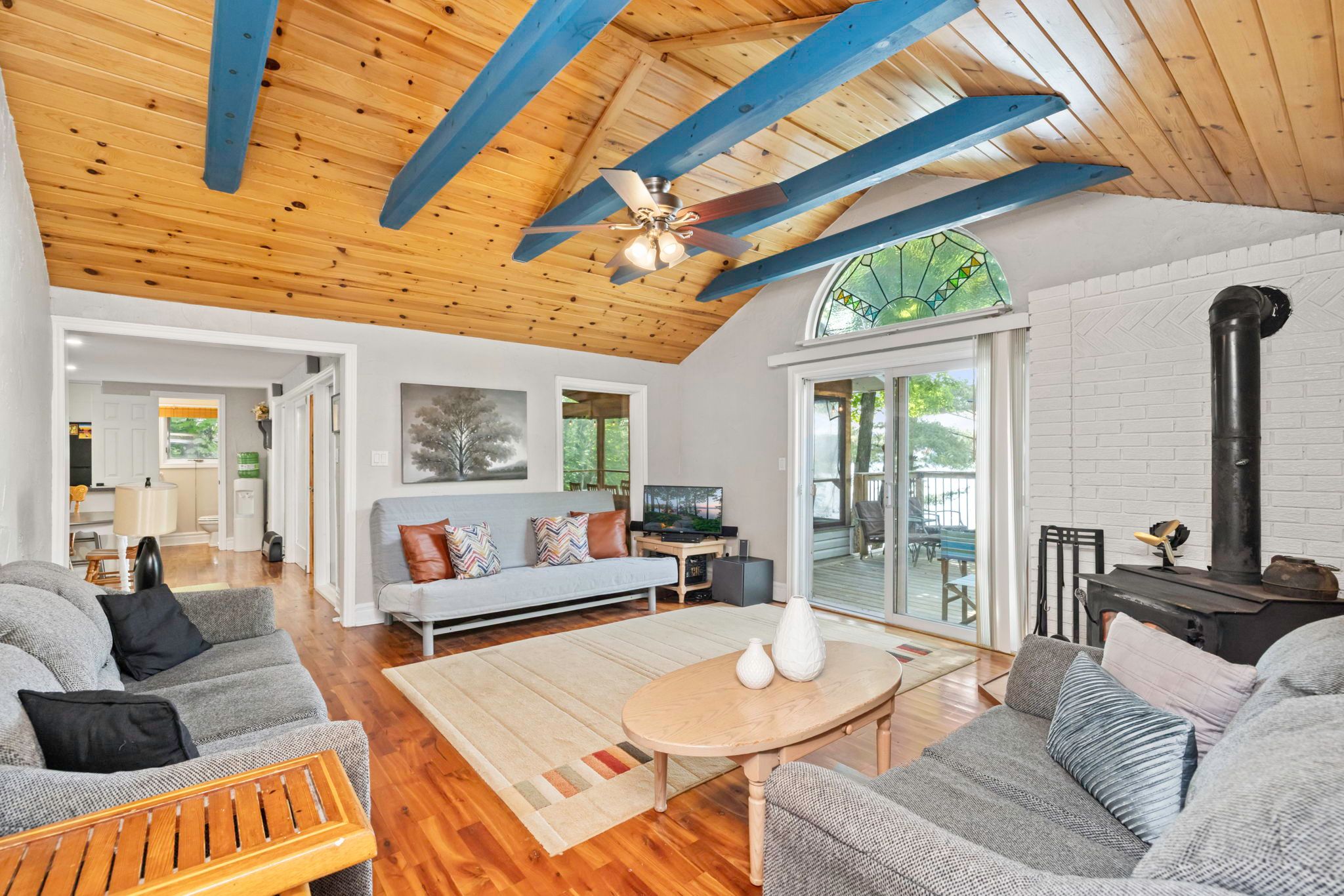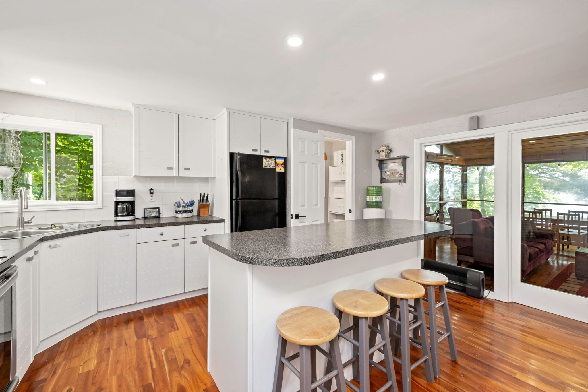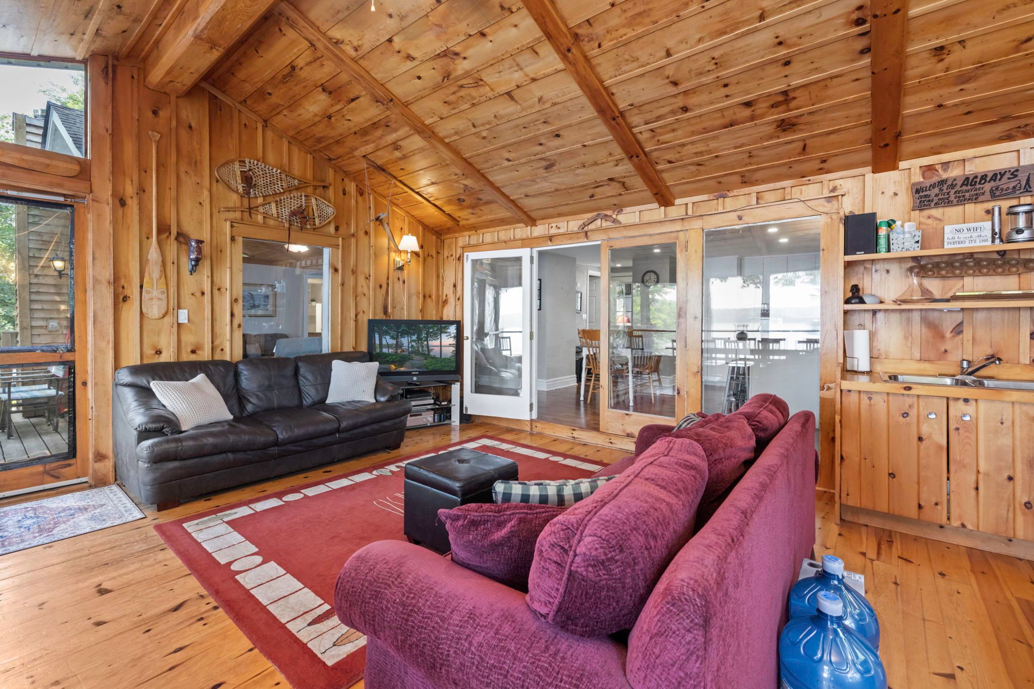 • Expansive Muskoka room with wet bar and stunning water views.