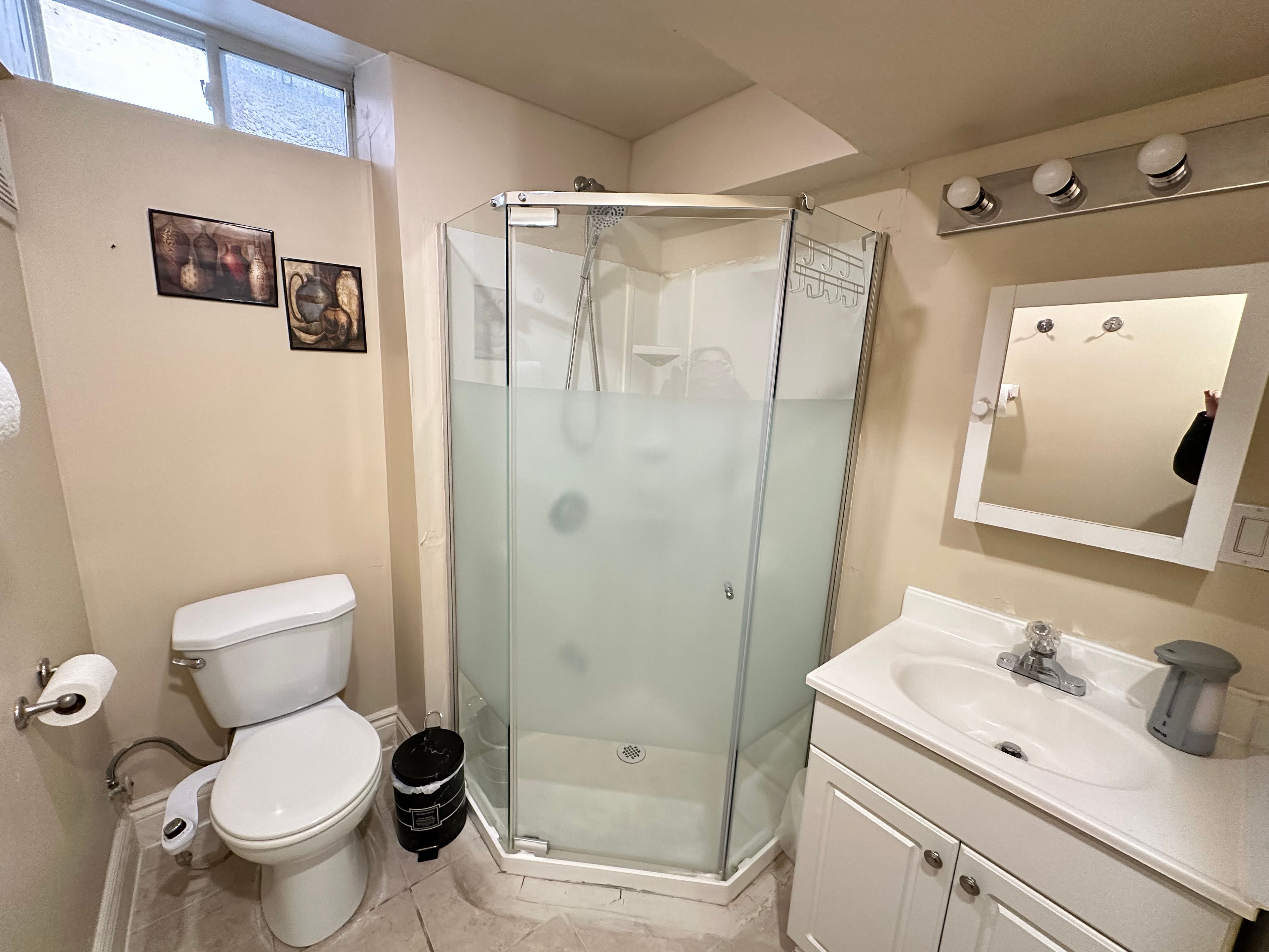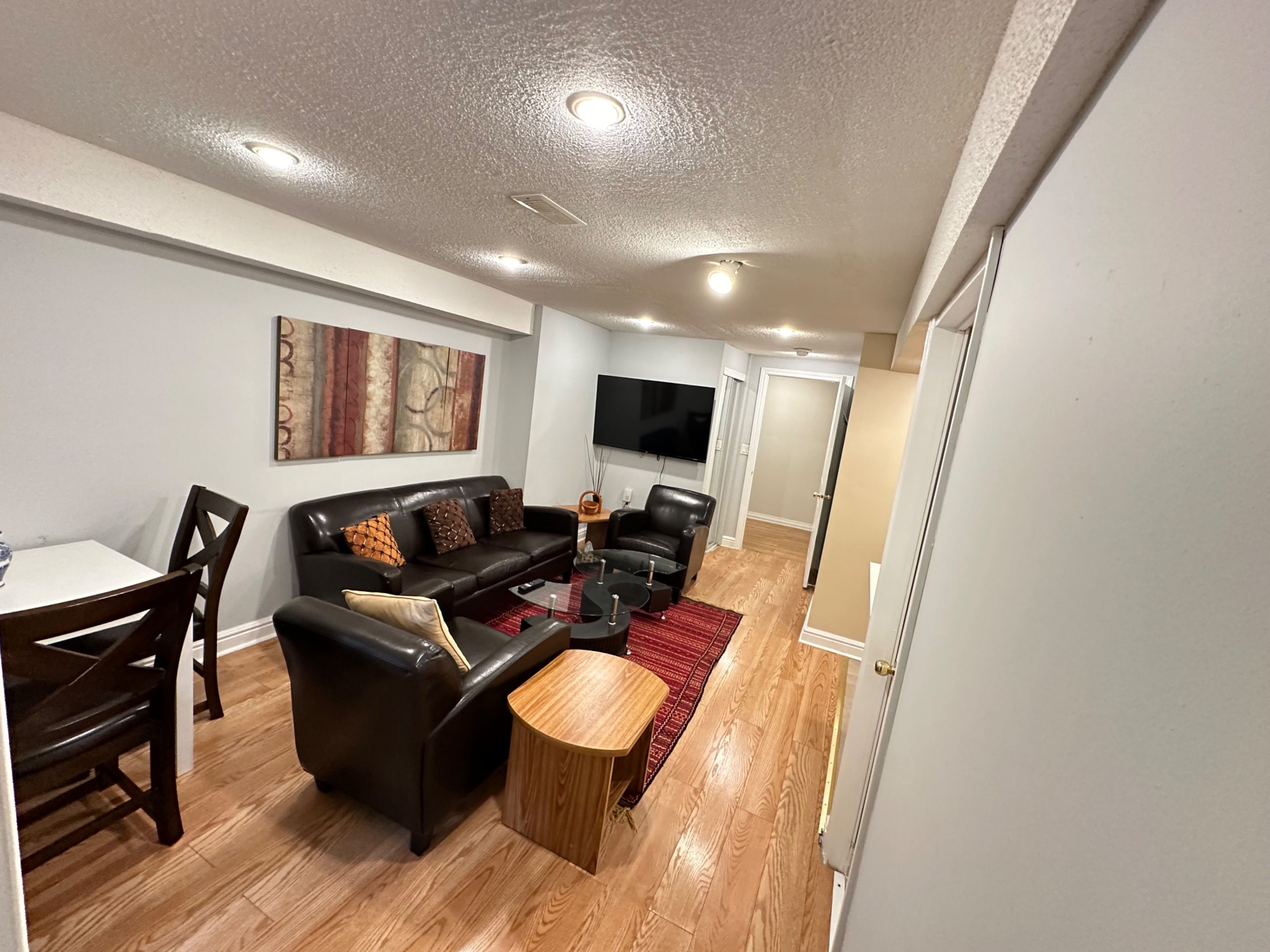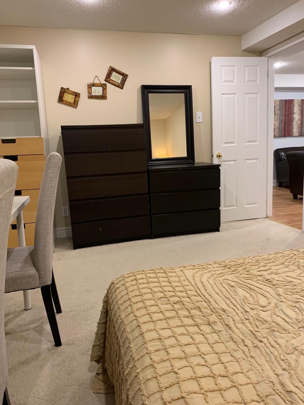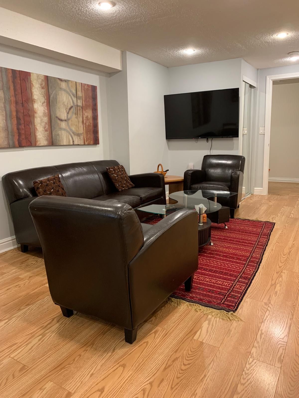 • Furnished and well-maintained 2-bedroom, 1-bath basement apartment for comfortable living.