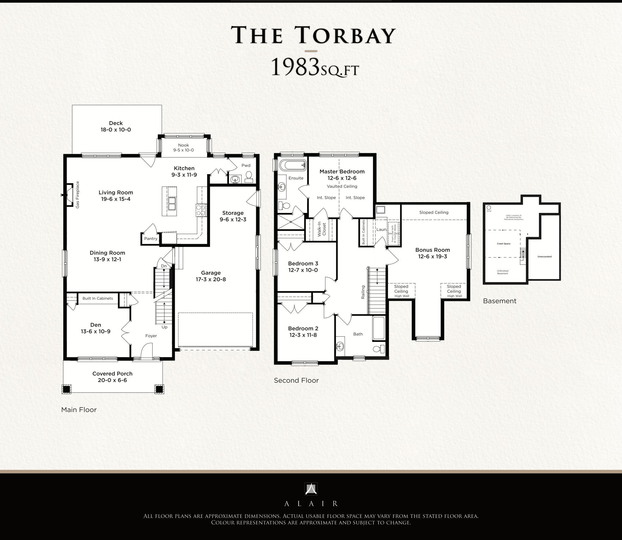 The torbay is a beautifully designed two-storey home offering approximately 1,983 finished sq. Ft., plus an additional framed bonus room that can be finished to suit your needs. Built by alair grey bruce in the sought-after southampton landing community, this home offers spacious living with flexibility for families, remote workers, or those who love to entertain. The main floor includes a large living room with gas fireplace, open-concept kitchen with island and pantry, formal dining area, and bright breakfast nook with access to a rear deck. A main floor den with built-in cabinetry provide function and charm, while interior access to the garage and a dedicated storage area ensure day-to-day convenience. You will also find a powder room on the main floor. Upstairs, you'll find three bedrooms and two full bathrooms, including a primary suite with vaulted ceiling, walk-in closet, and luxurious ensuite. A well-placed laundry room adds efficiency to your daily routine. The 240 sq. Ft. Bonus room on the second floor is framed and ready for finishing, ideal for a home office, playroom, media lounge, or additional bedroom. Architectural controls and design guidelines protect the community's charm and value. Ask the builder about options and pricing to complete this space to your taste. Each home includes a poured concrete foundation with crawlspace access (some lots may accommodate a basement- speak to your realtor for details. Customize finishes and explore available upgrades to make the torbay truly yours.