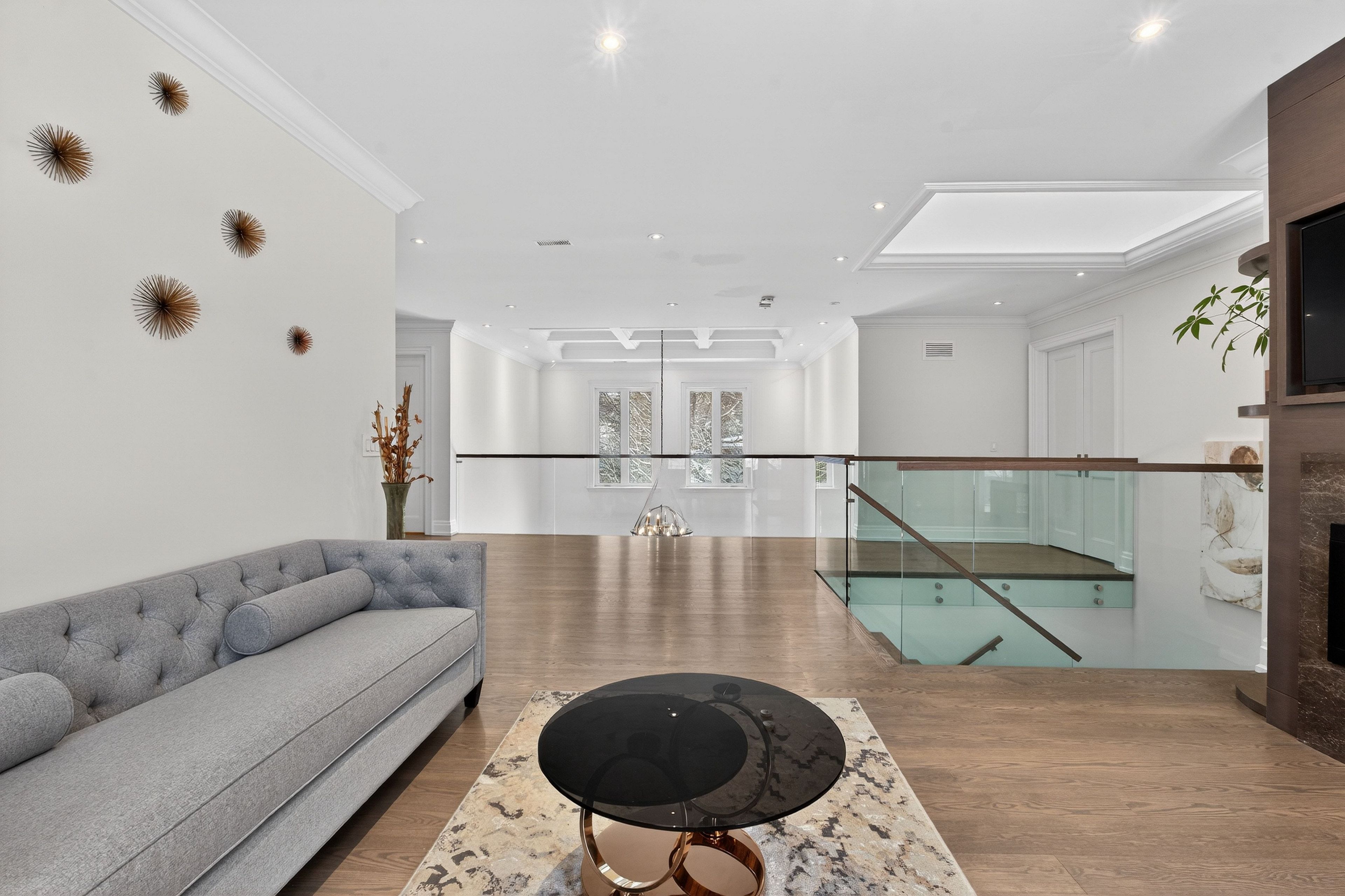 A splendor of modern elegance in prestigious bayview glen. 5,675 sq. Ft. Above grade plus 2,511 sq. Ft. Finished lower level. Modern, highly functional layout filled with natural light. Grand private & gated entry with circular driveway and striking curb appeal. Soaring 11-ft ceilings on the main level and 9-ft ceilings on the second floor. Dramatic 20+-ft cathedral atrium flooding the home with sunlight. Oversized coffered family room with walk-out to a private pool-size backyard. Designer chef's kitchen with premium miele appliances and extensive upgrades throughout. 4+1 spacious bedrooms, each with its own private ensuite. Luxurious primary retreat with spa-inspired 6-piece bath and separate his-and-hers walk-in closets. Spacious second-floor hall lounge ideal as a sitting area, study space, or children's play zone. Exceptional craftsmanship. Bright open living spaces designed for modern family living and elegant entertaining. Heated bathrooms and radiant heated floors on the lower level enhance the home's comfort, convenience, and modern sophistication. Huge private backyard with oversized hot tub/ spa! Prime location steps to top-ranked schools, parks, shopping and everyday conveniences.
