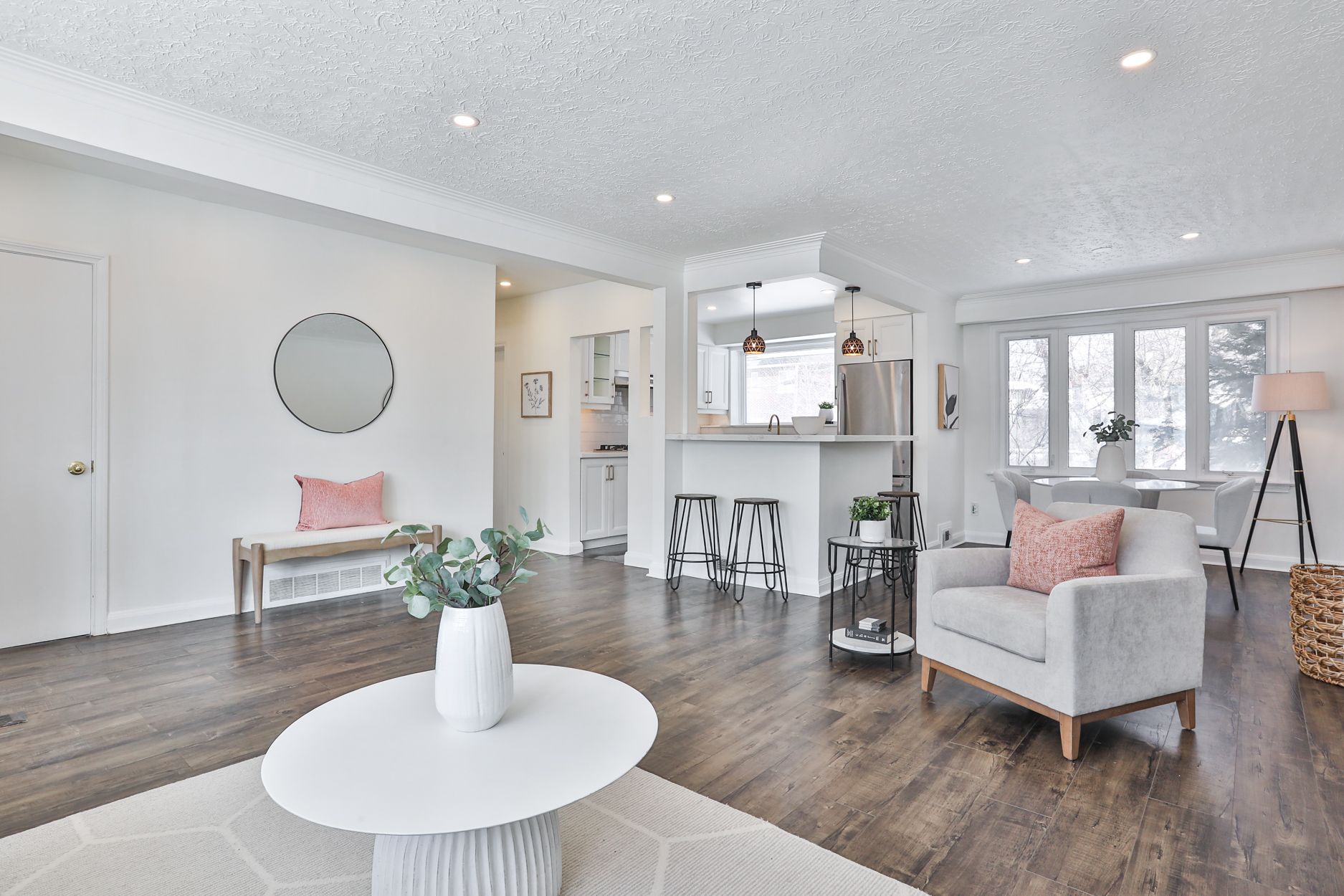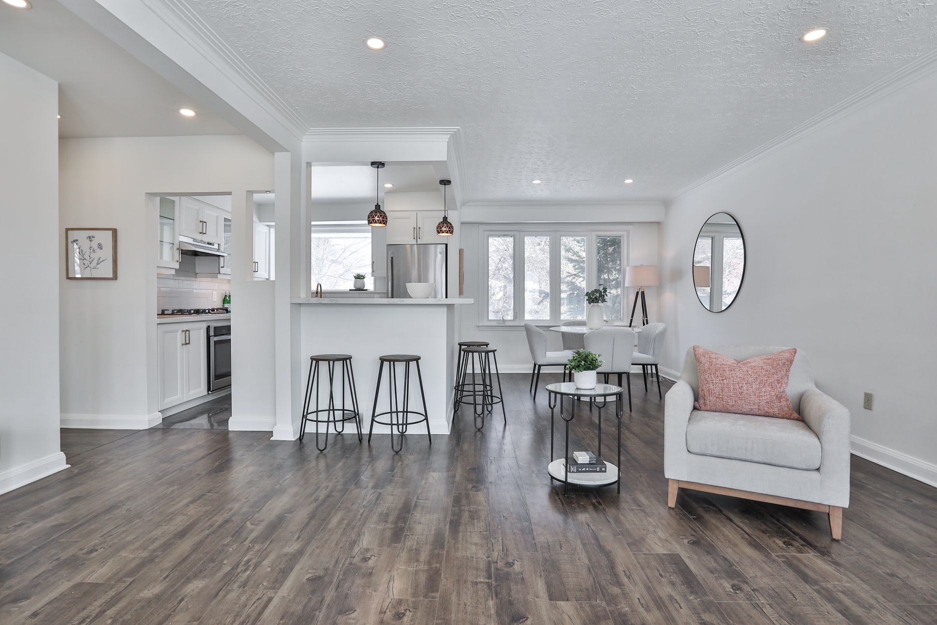 Bloom on lejune! Solid brick bungalow in the heart of the highly sought-after inglewood pocket of tam o'shanter sits pretty on a premium, wide 60-ft lot & a deep, pool-sized backyard that opens the door to exceptional outdoor living & future possibilities of building your very own second home on the property (garden suite!) or move in & enjoy. Spacious finished lower-level nanny suite, with a separate entrance, making it ideal for additional income potential or multi-generational living. Located on a quiet, family-oriented street, just steps to schools, parks, groceries, hospitals, agincourt go station & ttc & effortless access to major highways for seamless commuting. Practicality continues with a private one-car garage & a widened driveway that comfortably accommodates four additional vehicles + no sidewalk to shovel. Inside, newly upgraded flooring flows throughout, creating a fresh, modern foundation. At the heart of the main floor, the beautifully updated eat-in kitchen features island bar seating, perfect for casual meals & everyday gatherings. Crisp white cabinetry, updated appliances & contemporary finishes blend style with function, while a large backyard-facing window fills the space with natural light. The expansive living room is anchored by a charming fireplace, creating a warm & inviting focal point for cozy evenings & everyday living. The beautifully renovated 3-piece bathroom showcases crisp tile work & a sleek glass shower, while a dedicated linen closet adds valuable storage. Three generously sized bedrooms provide flexibility for families, guests or a home office. The fully finished lower level features a two-bedroom suite with a full kitchen, 3-piece bathroom, washer & dryer, above-grade windows & impressive ceiling height that creates a bright & open living space, delivering built-in flexibility & long-term value. Set in one of scarborough's most desirable family neighbourhoods, this is the kind of home that doesn't come along often.