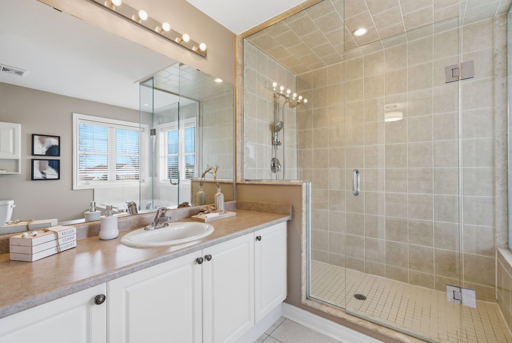 Gorgeous home in whitby shores, almost 2000 s/f! Huge premium lot overlooking a park! Park view from many rooms! Located steps to a public school, the lake, trails, marina, parks including a water park and the go! This bright and spacious home with 9 foot ceiling on the main floor offers large principal rooms and bedrooms! Second floor laundry! Stainless steel appliances! Family size kitchen with centre island and large breakfast area overlooking the park! Walk-out to huge entertainment style deck! Spacious family room with fireplace overlooking the park! Huge primary with large glass shower- 5pc ensuite, separate soaker tub, walk-in closet and double door entry! Second bedroom has vaulted ceiling! Third bedroom has built-in storage! New central air conditioning in 2025! Freshly painted in 2025! Some new lights! Inside entrance to garage! Iron pickets on staircase! One of whitby's finest family neighborhoods second to none by the lake! Flexible closing!