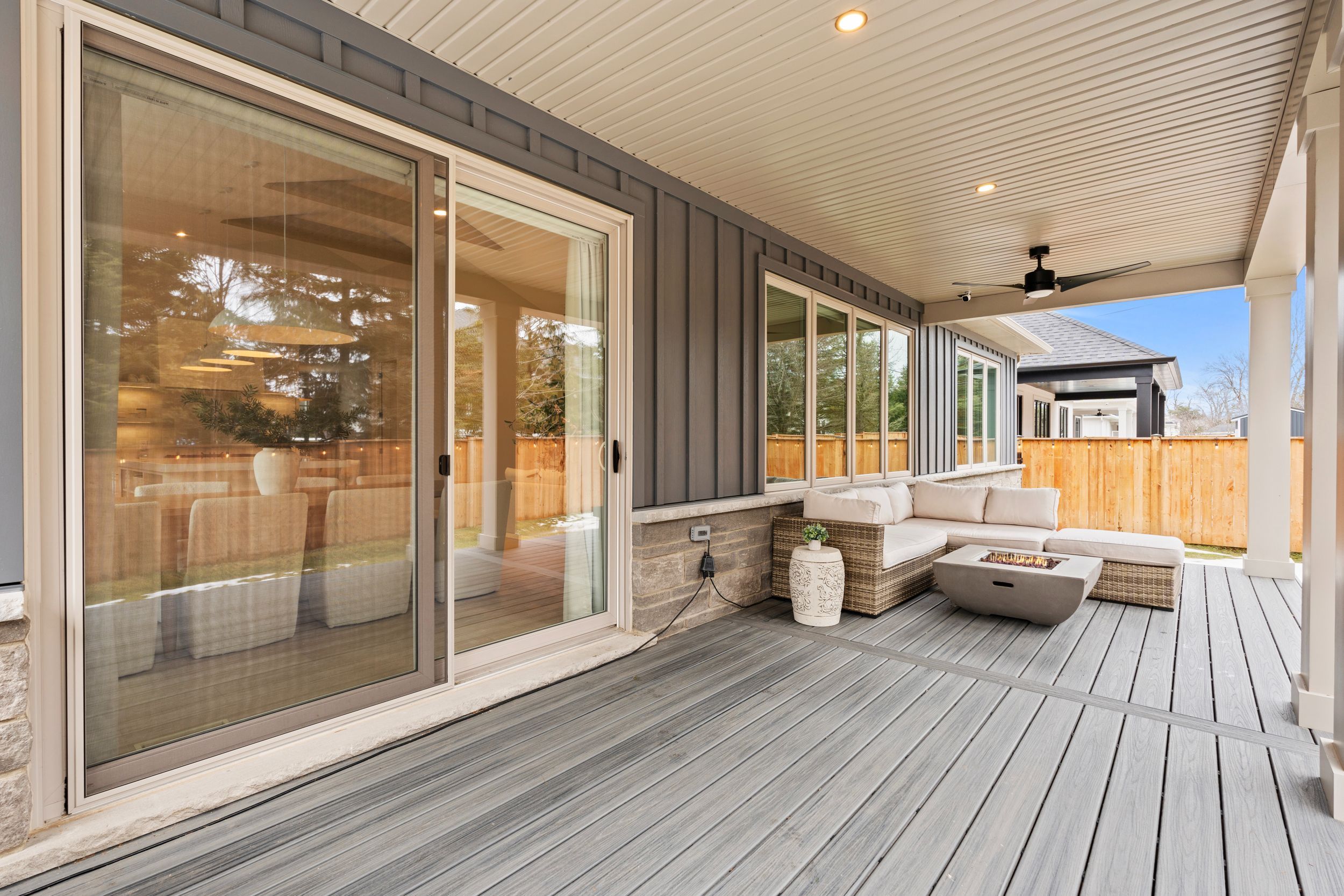 Welcome to a masterclass in luxury. This custom bungalow by award-winning rinaldi homes sits on an expansive 81. 7ft x114ft lot fully fenced featuring a tranquil creek. Located in ridgeway's prestigious thunder bay, you are steps from lake erie. The exterior impresses with lafitt stone, james hardie siding, and metal roof accents. Inside, discover a home with $250,000 in recent upgrades. The grand interior features soaring 16-foot ceilings in the main living space, 9' main floor ceilings elsewhere, 8' solid core doors, and new high-end flooring throughout. Stained timber beams add warmth to the vaulted architecture. The chef's kitchen is reimagined with new quartz, designer fixtures, and premium fisher & paykel appliances. It is elevated by ceiling-height cabinetry, a walk-in pantry with custom metal/glass doors, and a massive breakfast bar. Sliding doors lead to a 28'x10' covered deck overlooking a fenced, private yard with serene views of the creek and professional landscaping. The primary suite is a sanctuary with a custom walk-in closet and a spa-like glass-tiled ensuite. High-end finishes extend to every corner: the laundry features electrolux appliances, while the two-car garage boasts polyaspartic floors and custom cabinetry. A stunning oak waterfall staircase with glass railings leads to a finished basement, offering a massive rec room with a gas fireplace, two additional bedrooms, and a 4-piece bath-the perfect guest retreat. Beyond the new driveway pavers and sleek 3-way fireplace, enjoy unparalleled convenience. You are a 10-minute walk to downtown ridgeway's shops and restaurants, and a 2-minute drive to crystal beach. With a state-of-the-art carrier hvac system and smart ecobee thermostat, this modern masterpiece is move-in ready1. 6