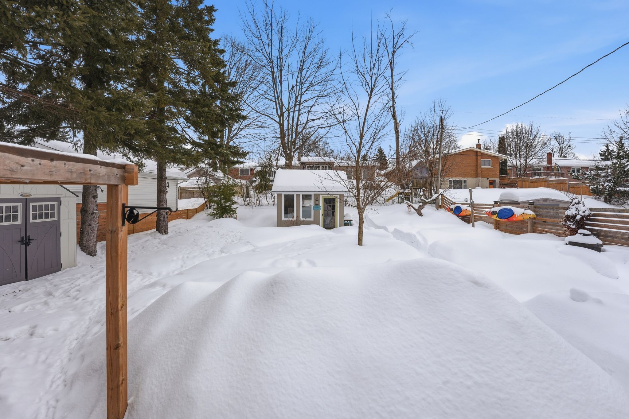 On a quiet, family-friendly street in east barrie's well-established wellington neighbourhood sits a brick bungalow that has clearly been loved, cared for, and thoughtfully updated over time. 27 marion crescent is the kind of home where neighbours stay, families grow, and everyday life feels comfortable and familiar. Inside, the home offers over 1,400 sq ft of total living space, laid out in a way that feels both practical and welcoming. The main floor features three comfortable bedrooms, a bright 4-piece bathroom, and a beautifully updated kitchen that naturally becomes the heart of the home - where morning coffee turns into conversation and weeknight dinners are shared with ease. Engineered hardwood floors flow throughout, while a cozy gas fireplace adds warmth and character, making the space feel inviting year-round. The finished basement expands your living options even further, offering a fourth bedroom, a 3-piece bathroom, and a flexible layout ideal for guests, teens, a home office, or extended family. With a rear door already in place, there's clear potential to create a separate basement entrance, opening the door to in-law living or future income possibilities. Step outside and enjoy something increasingly rare - space and privacy. The 58' x 122' deep lot creates a peaceful backyard retreat, framed by mature greenery and designed for real living. Picture summer evenings under the pergola, family gatherings, or slow weekend mornings with a coffee in hand. A custom garden shed adds both charm and function. Major updates completed in 2017 - including electrical, roof, air conditioning, kitchen, bathrooms, engineered hardwood flooring, and gas fireplace - provide true move-in-ready confidence and peace of mind. Located close to schools, parks, and everyday amenities, this wellington bungalow isn't just a house, it's a place to settle in, slow down, and feel at home. Is it time for a change for you ... Or someone you know?