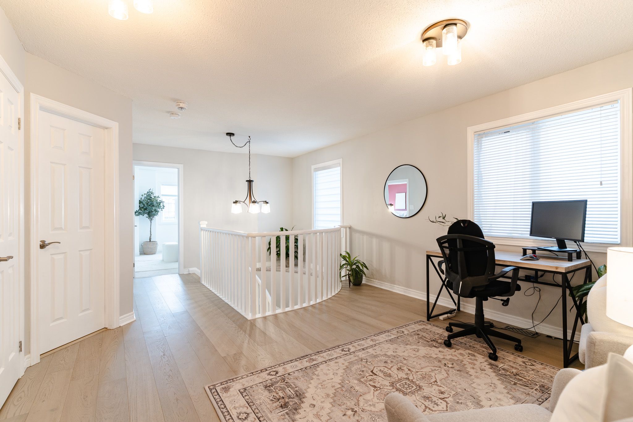 Absolutely stunning family home in sought-after south ajax. This beautiful 3+1 bedroom, 3 bathroom home is nestled in a highly desirable family-friendly neighbourhood just steps away from walking trails, scenic parks and the expansive shores of lake ontario. Outside you'll find beautifully landscaped front and backyards that create stylish curb appeal. Inside you'll be greeted with brand new flooring throughout the main floor, a spacious, upgraded kitchen with modern design, an elegant separate dining area complete with coffered ceilings, a large cozy family room filled with natural light and a gas fireplace. Upstairs you will find an open media/office space, a fabulous primary bedroom with large 5pc ensuite and walk in closet, as well as 2 additional well-sized bedrooms. The finished basement offers more living space, a bedroom and lots of storage!! Walk out to your private, fully landscaped backyard oasis, with ample space to entertain and enjoy time outdoors. You don't want to miss this well built "john boddy" home , the perfect combination of community and elegant family living!