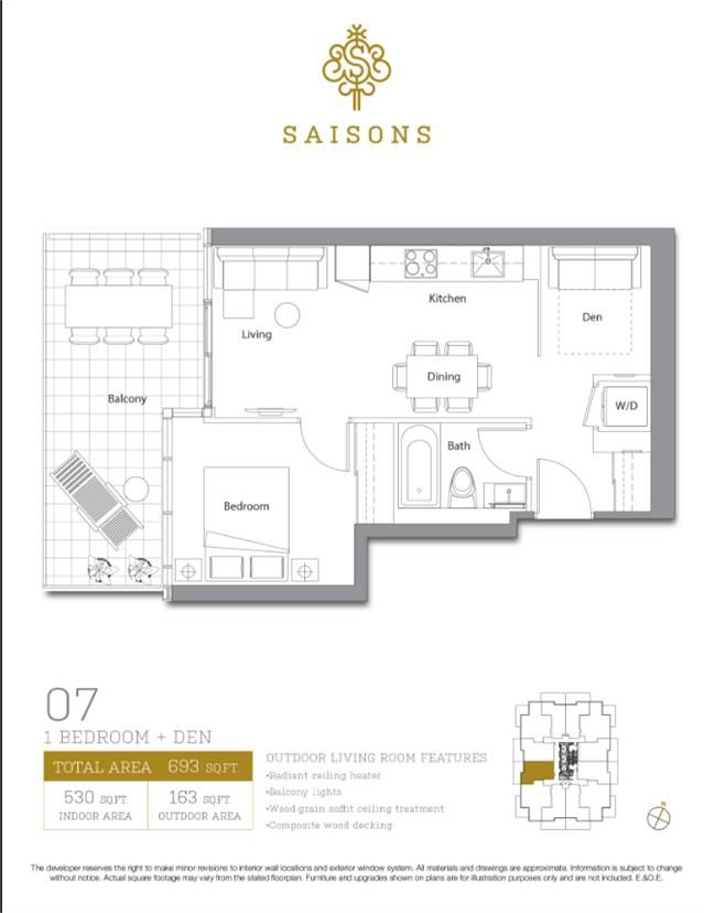 • Enjoy a large balcony with heating for year-round use.