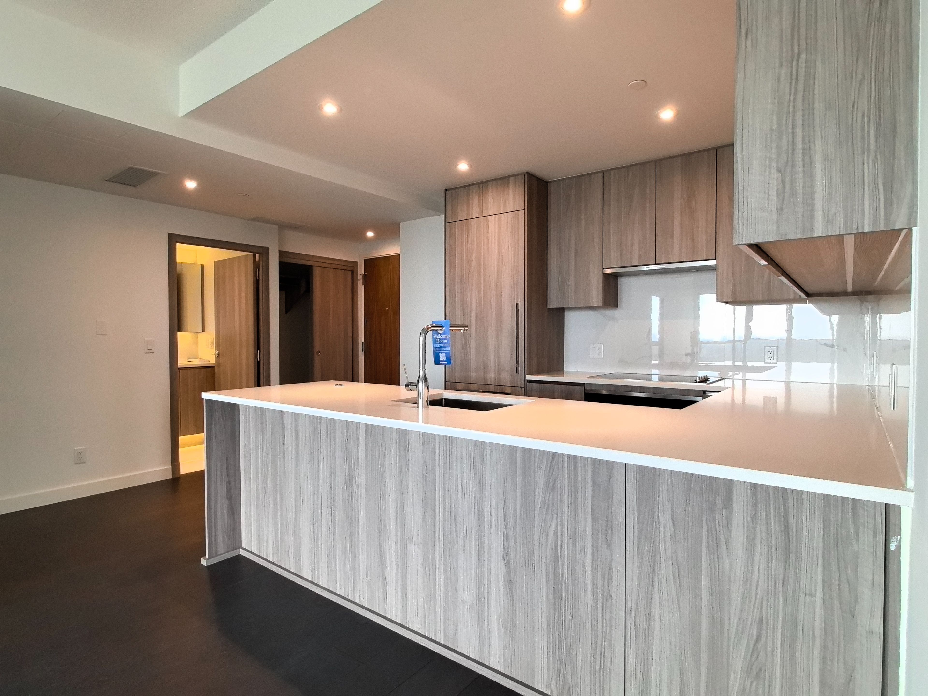 • Open-concept layout with 9-ft ceilings and floor-to-ceiling windows.