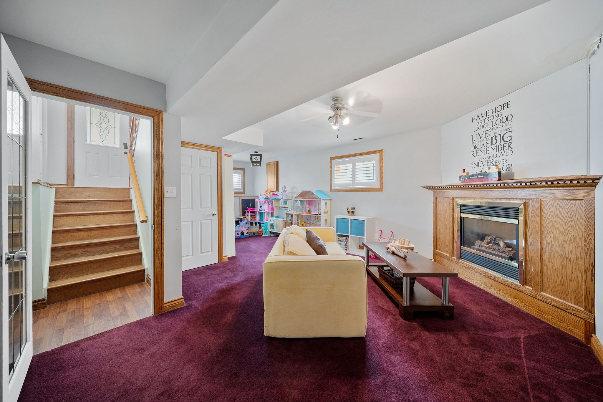 • Spacious lower level features a rec room and full bathroom for comfort.