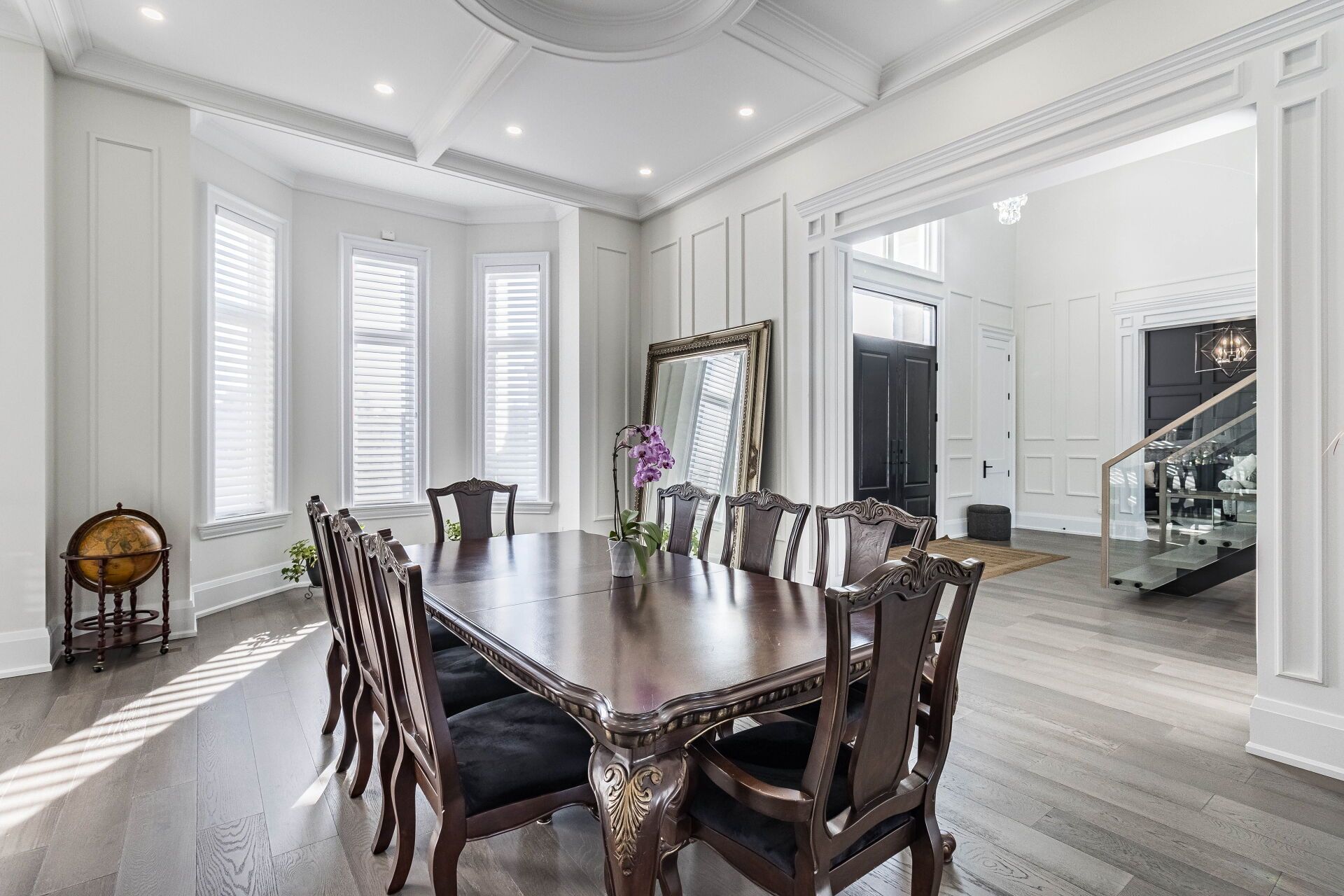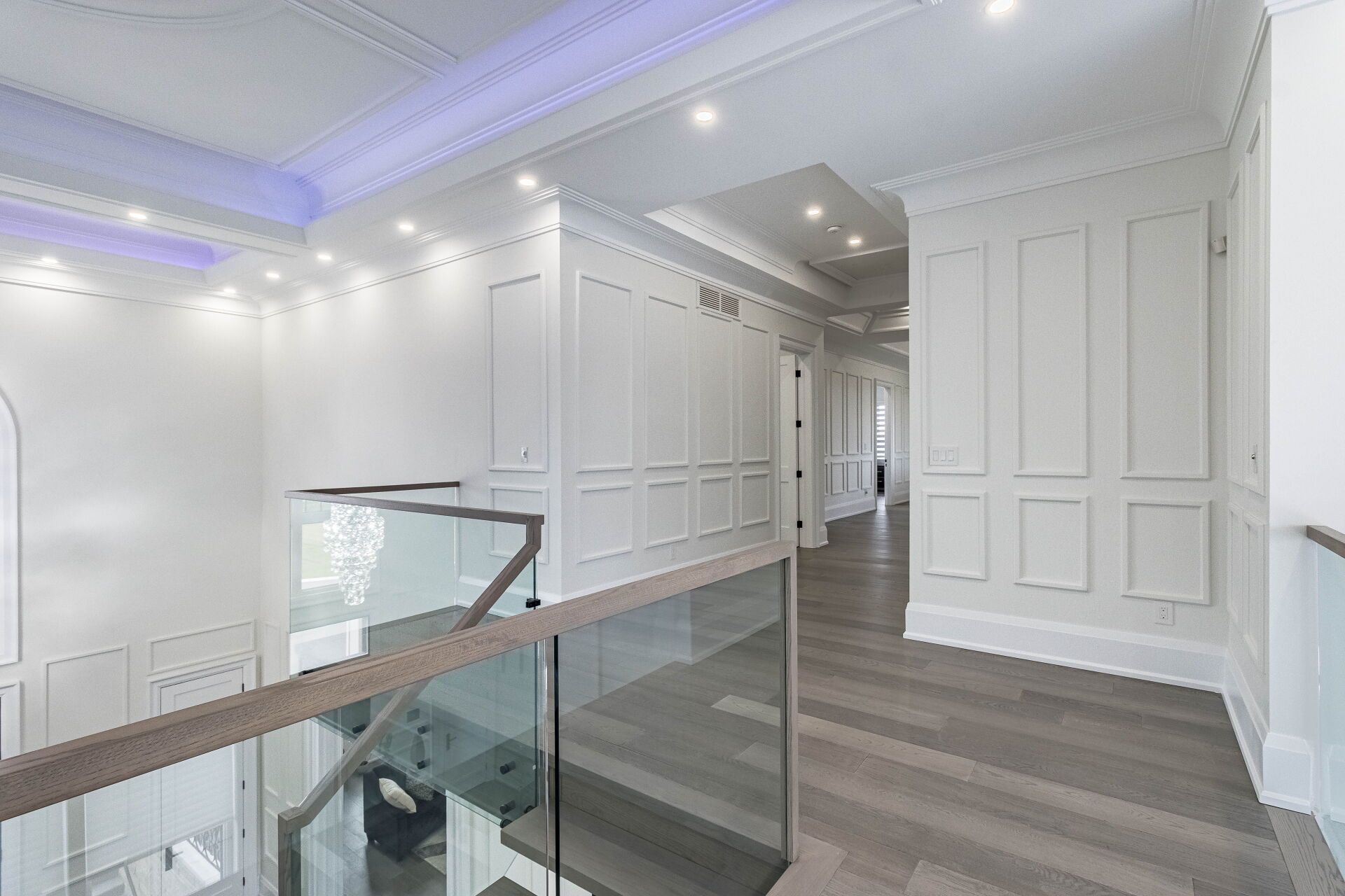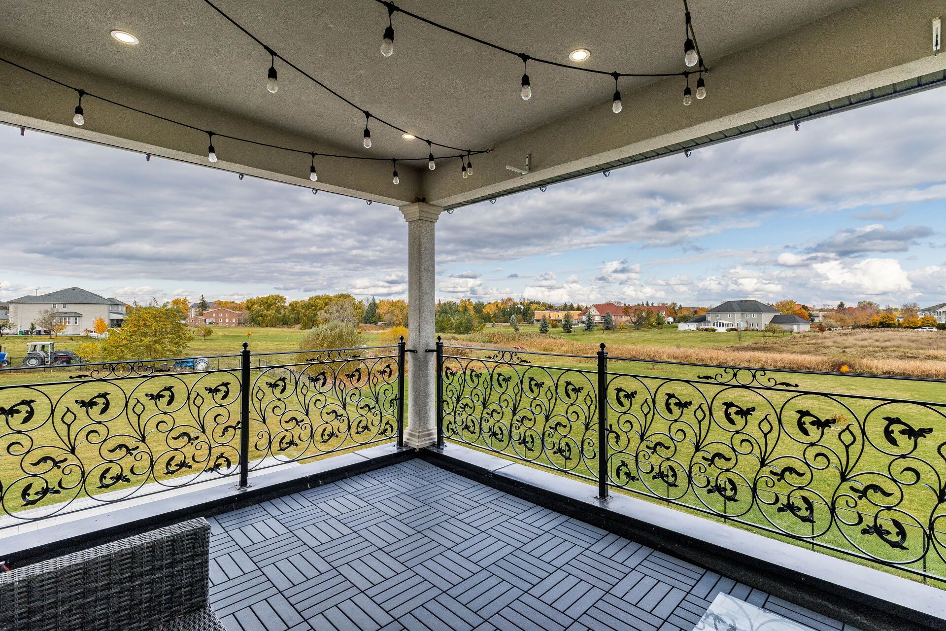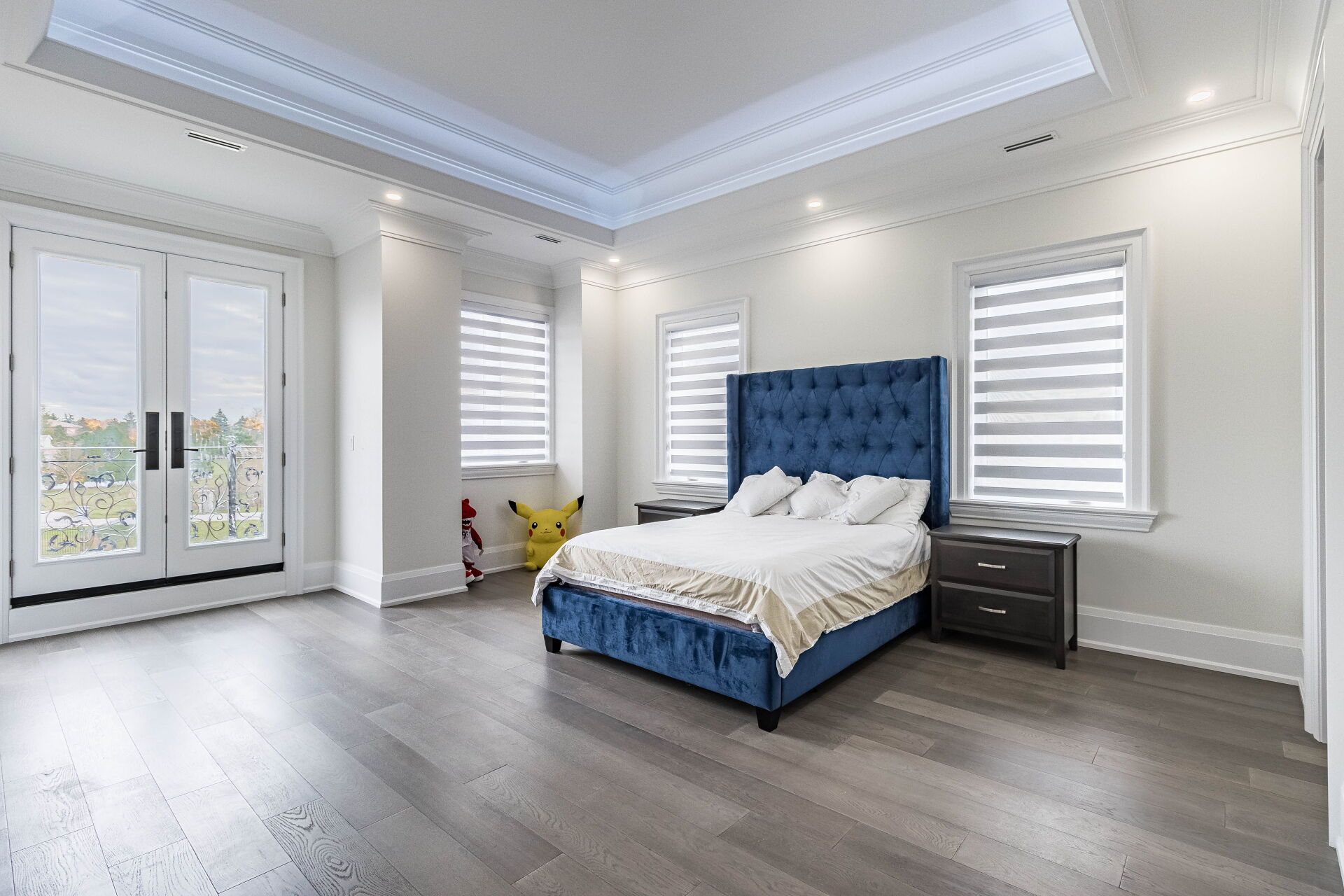 • Master bedroom features a private balcony and luxurious coffered ceiling.