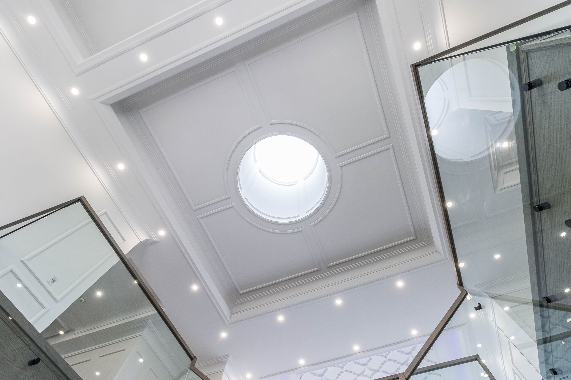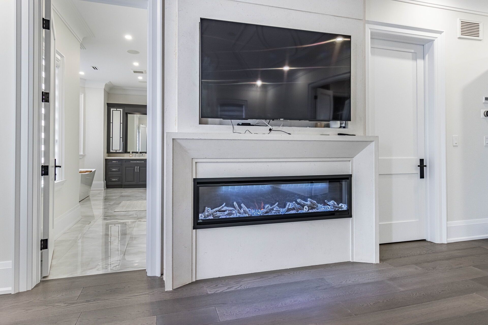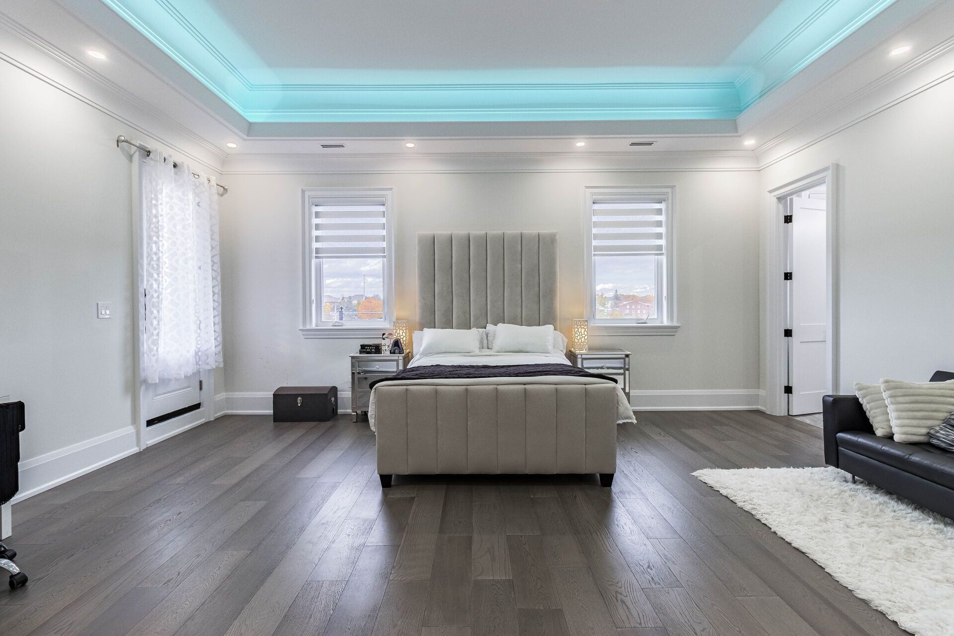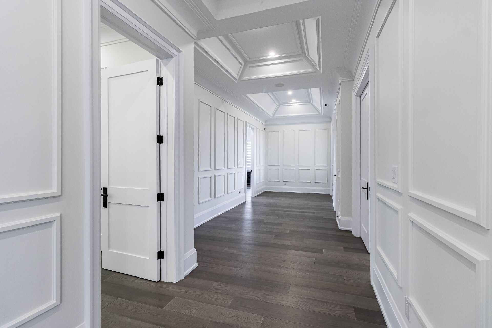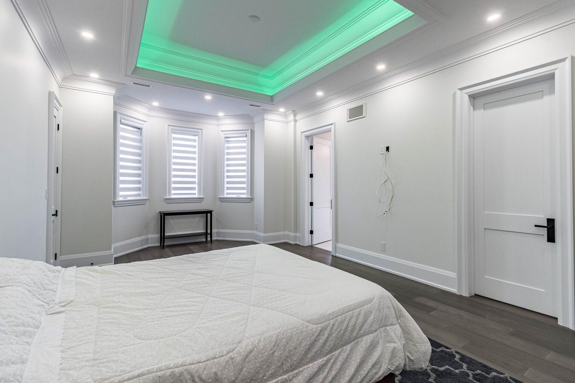 • Master bedroom features a private balcony and luxurious coffered ceiling.