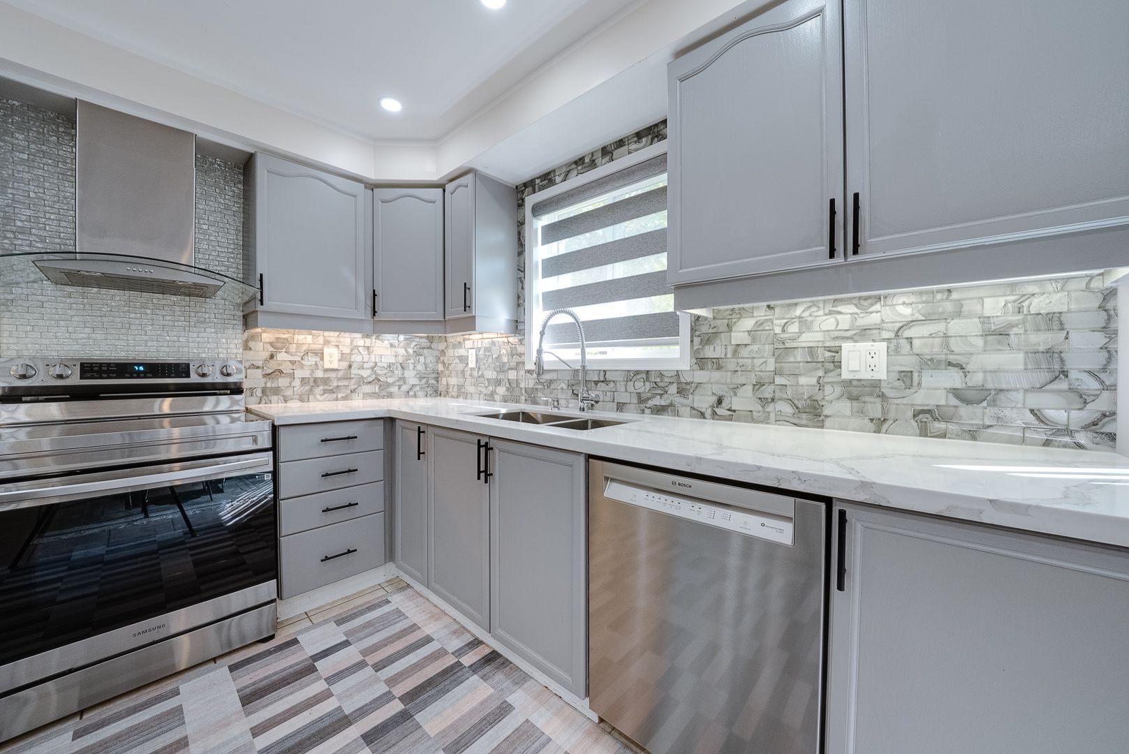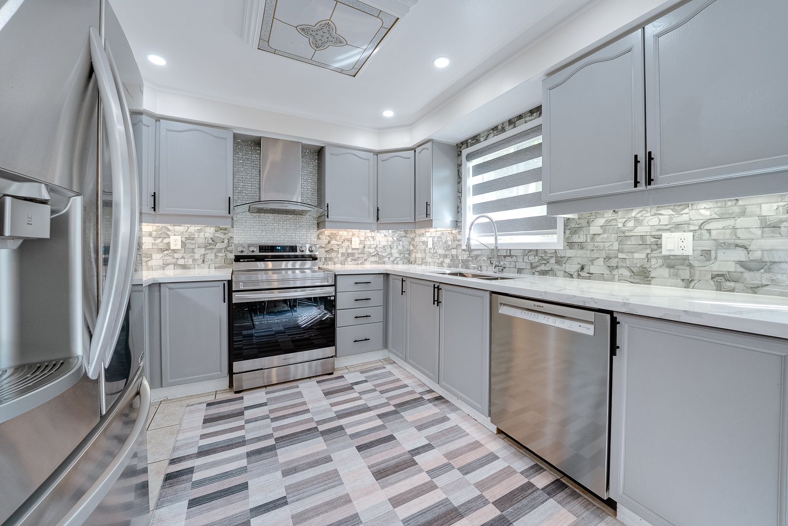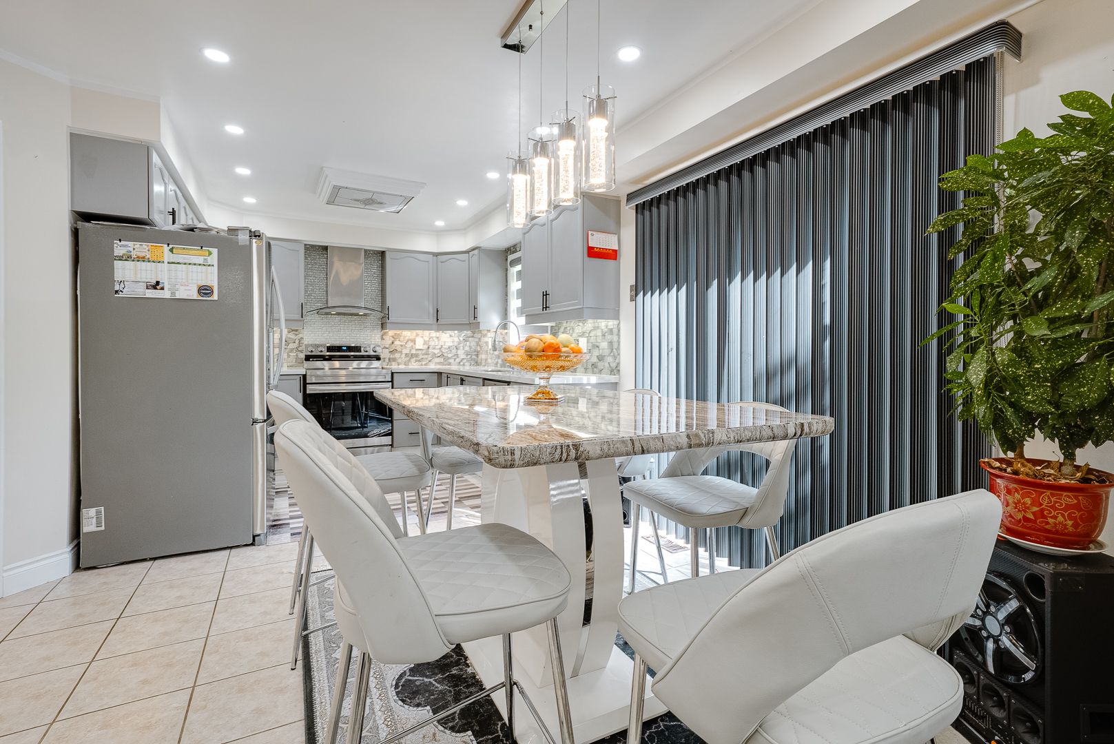 • Upgraded home with modern finishes and 15-foot ceilings.
