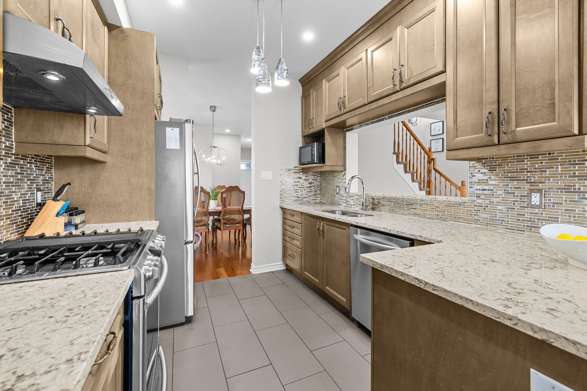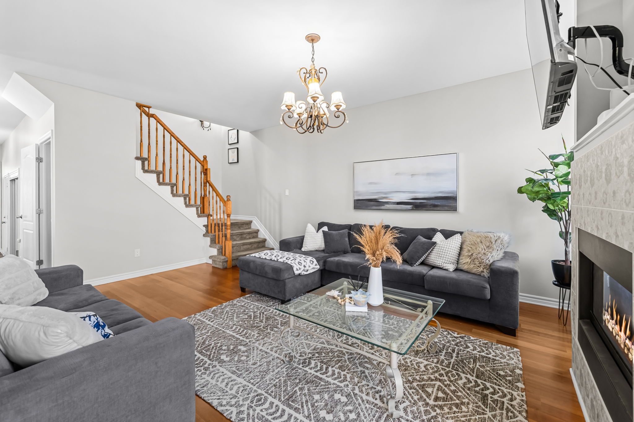 Welcome to 27 orange blossom private, a stunning oversized corner-unit townhome that offers elevated living. Offering 2620 sqft of living space, built in 2014 and situated in the heart of the desirable blossom park community, this home offers an expansive layout rarely found in suburban living. Step inside to discover a bright, open-concept floor plan with hardwood floors. The main level features a spacious kitchen equipped with granite countertops, stainless steel appliances, and ample cabinetry. An impressive, oversized living area centered around a cozy gas fireplace, perfect for entertaining. A dedicated main-floor office or flex space, ideal for the modern professional. The upper level is designed with a "no-compromise" approach to space. A spacious master suite featuring a spa-like 5-piece ensuite with double vanities and granite counters. Two more generously sized bedrooms plus a versatile loft-perfect for a reading nook or an office space. A dedicated walk-in laundry room makes chores effortless. The fully finished basement adds significant living value, boasting a large family room, a fourth full bathroom, and extensive storage options. Location is everything! You are steps away from transit and only minutes from major shopping hubs, dining, and parks. Whether you are a growing family or a professional looking for a turnkey gem, this location truly has it all. Don't miss out on this rare corner-lot find-schedule your viewing today!