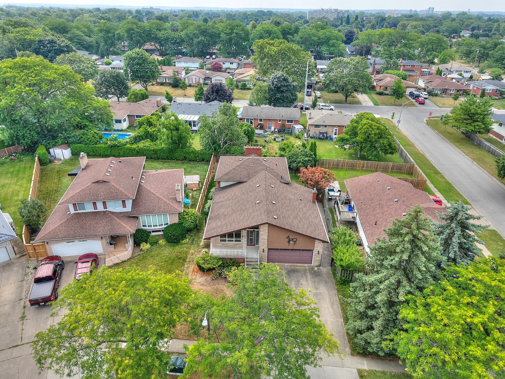 Timeless mid-century beauty with space for the whole family - and more! An impressive backsplit spanning over 2,500 sq ft of above ground living space, nestled in a remarkable north end location. Upon entering, you are immediately captivated by the soaring foyer ceiling, highlighted by 2 magnificent chandeliers and complemented by the rich oak trim that flows throughout the home. The bright, airy living room is designed for comfort and effortless flow, connecting to the formal dining room and continuing into the spacious eat-in kitchen - perfect for family meals and entertaining. Upstairs, you will discover gleaming hardwood floors throughout 3 spacious bedrooms, including a primary suite complete with a convenient ensuite powder room. The lower level, also above grade, expands your living space with a welcoming family room featuring a cozy wood-burning fireplace, walk-out and a spacious den that could easily serve as an additional bedroom and a 3pc bath. Need even more room? A massive recreation room below offers endless possibilities for relaxation or entertaining. Adding to its versatility, the property includes a separate entrance to the lower level - ideal for creating an in-law suite or a sought-after rental unit. With its warm, inviting atmosphere, generous layout, large yard, double garage/driveway and location in one of the areas most desirable family neighbourhoods, this gem of a home not only provides a welcoming retreat but also offers excellent potential for future customization and enhancements, allowing you to truly make it your own.