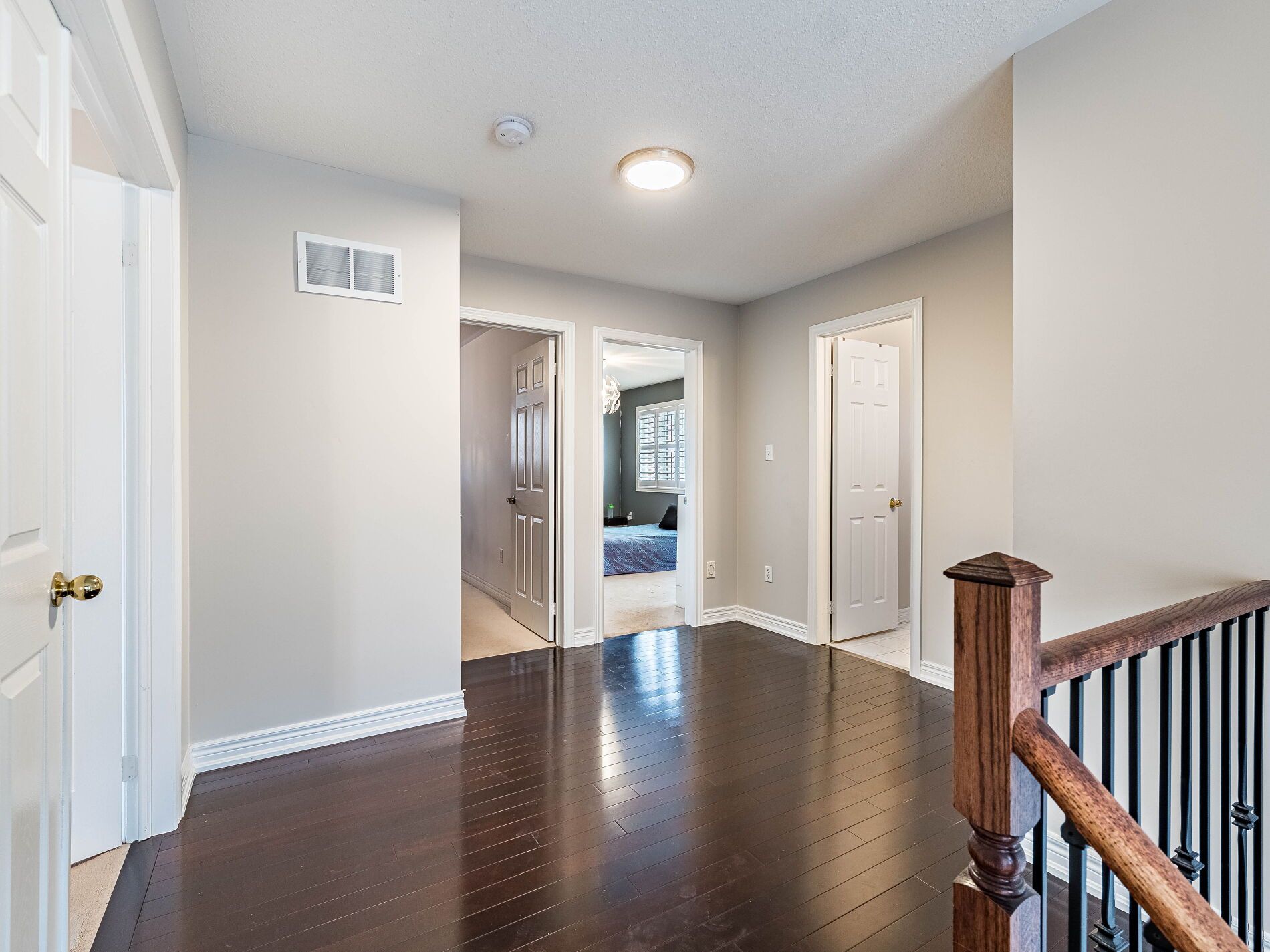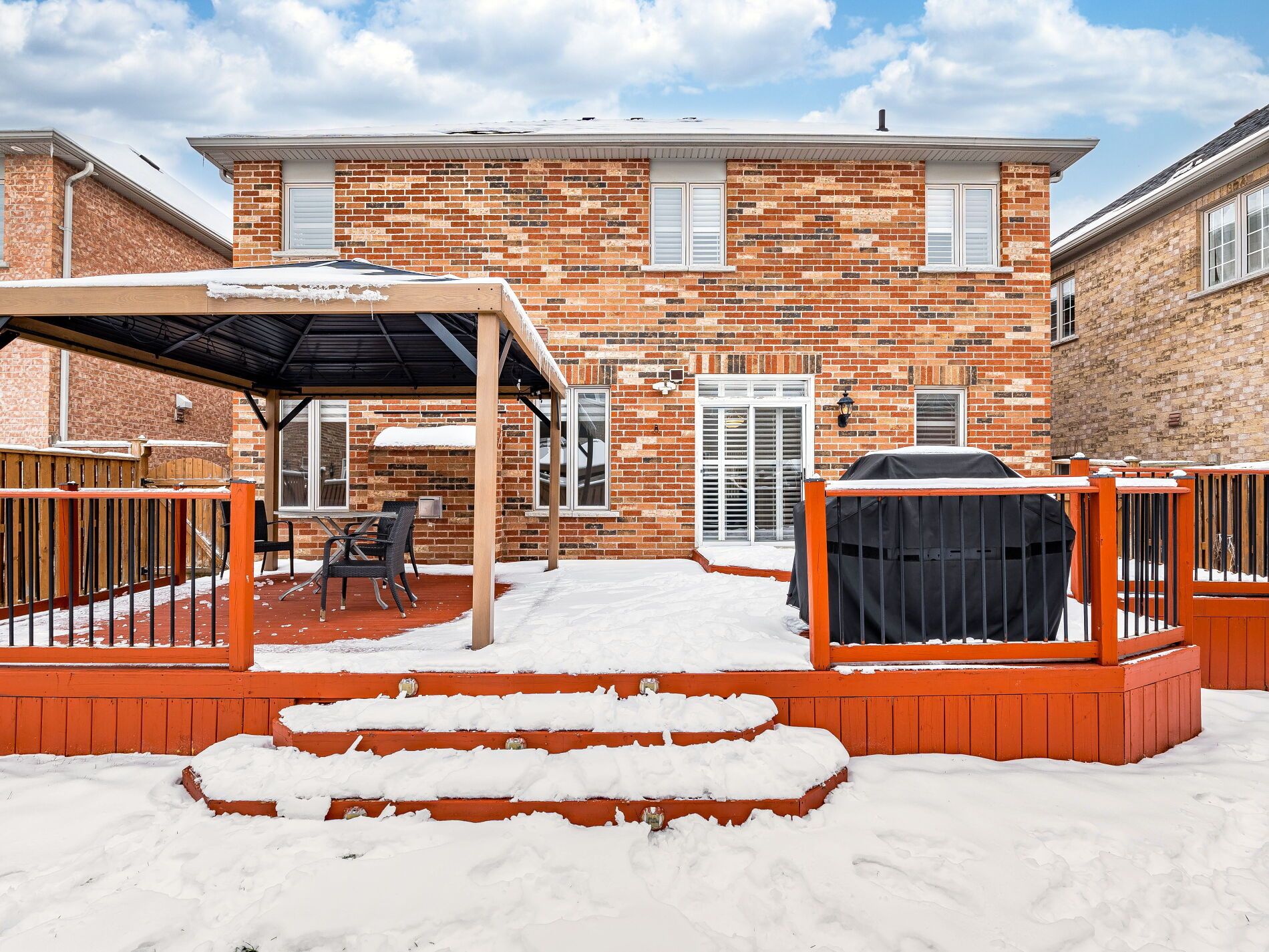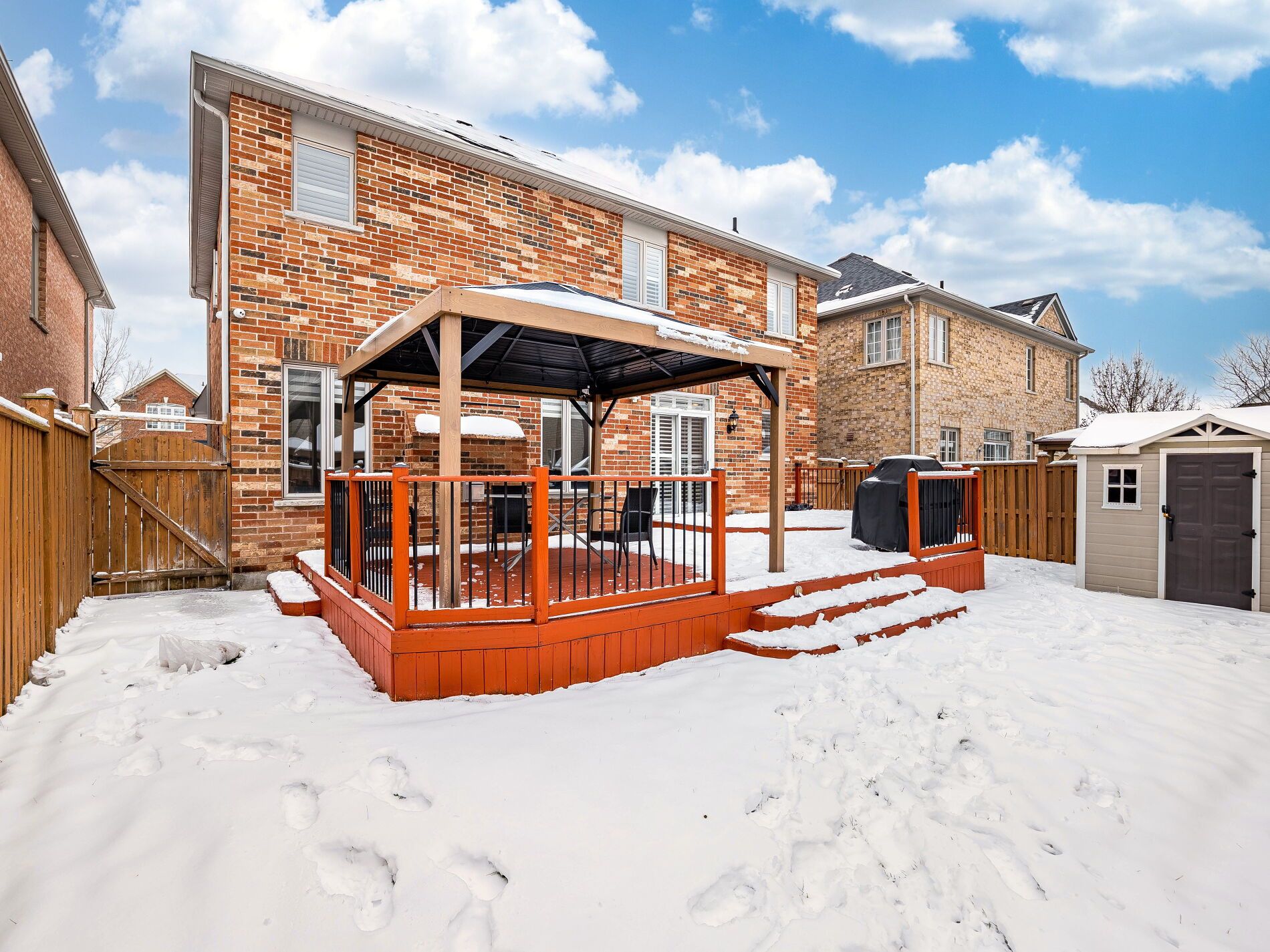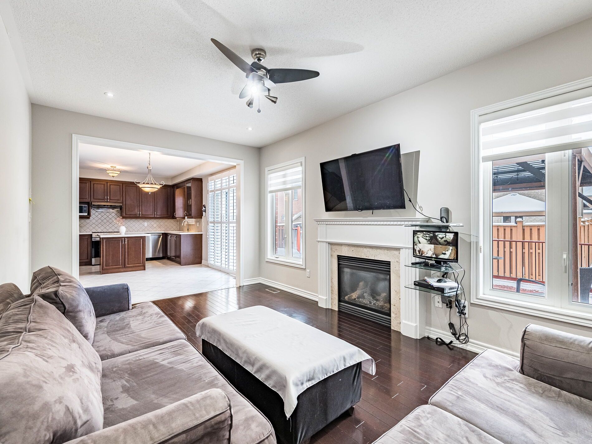 *3d virtual tour attached* floor plan attached* located in brampton's desirable sandringham-wellington community, this beautifully maintained detached home offers space, style, and everyday practicality on a generous 45-ft lot. A welcoming double-door entry opens to a thoughtfully designed main level featuring separate living and family rooms, 9-foot ceilings, and an ideal layout for both daily living and entertaining. The kitchen is the heart of the home, complete with extended cabinetry, quartz countertops, modern backsplash, and a convenient breakfast bar. Custom california shutters, an iron picket staircase, and quality finishes throughout add a refined touch. Upstairs, four spacious bedrooms provide comfort for the entire family, including a primary suite with a walk-in closet and a private 6 pc ensuite. 4pc, the second bathroom is conveniently situated between the bedrooms. The double garage offers ample parking and storage. Step outside to a private, resort-style backyard with a large patio perfect for hosting gatherings or enjoying peaceful evenings at home. Situated in a safe, family-friendly neighbourhood close to schools, parks, transit, and everyday amenities, this home delivers the space and lifestyle today' s buyers are seeking.