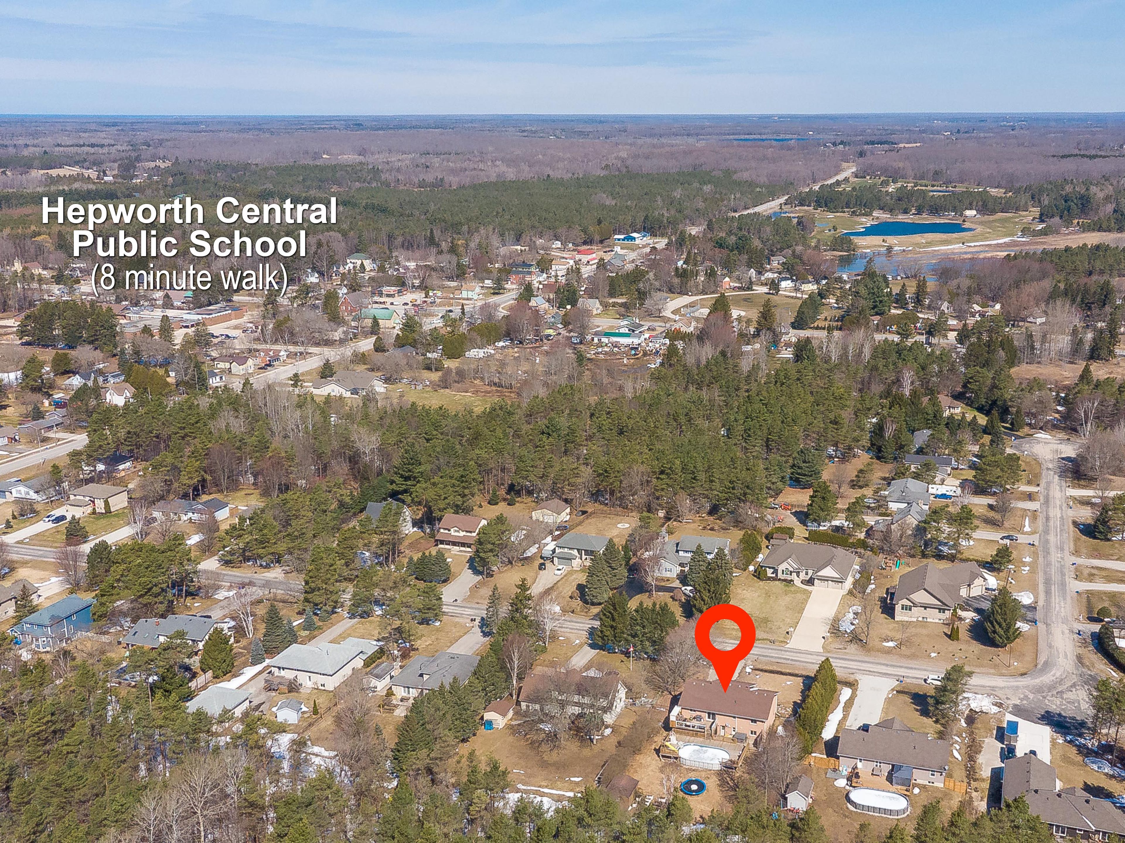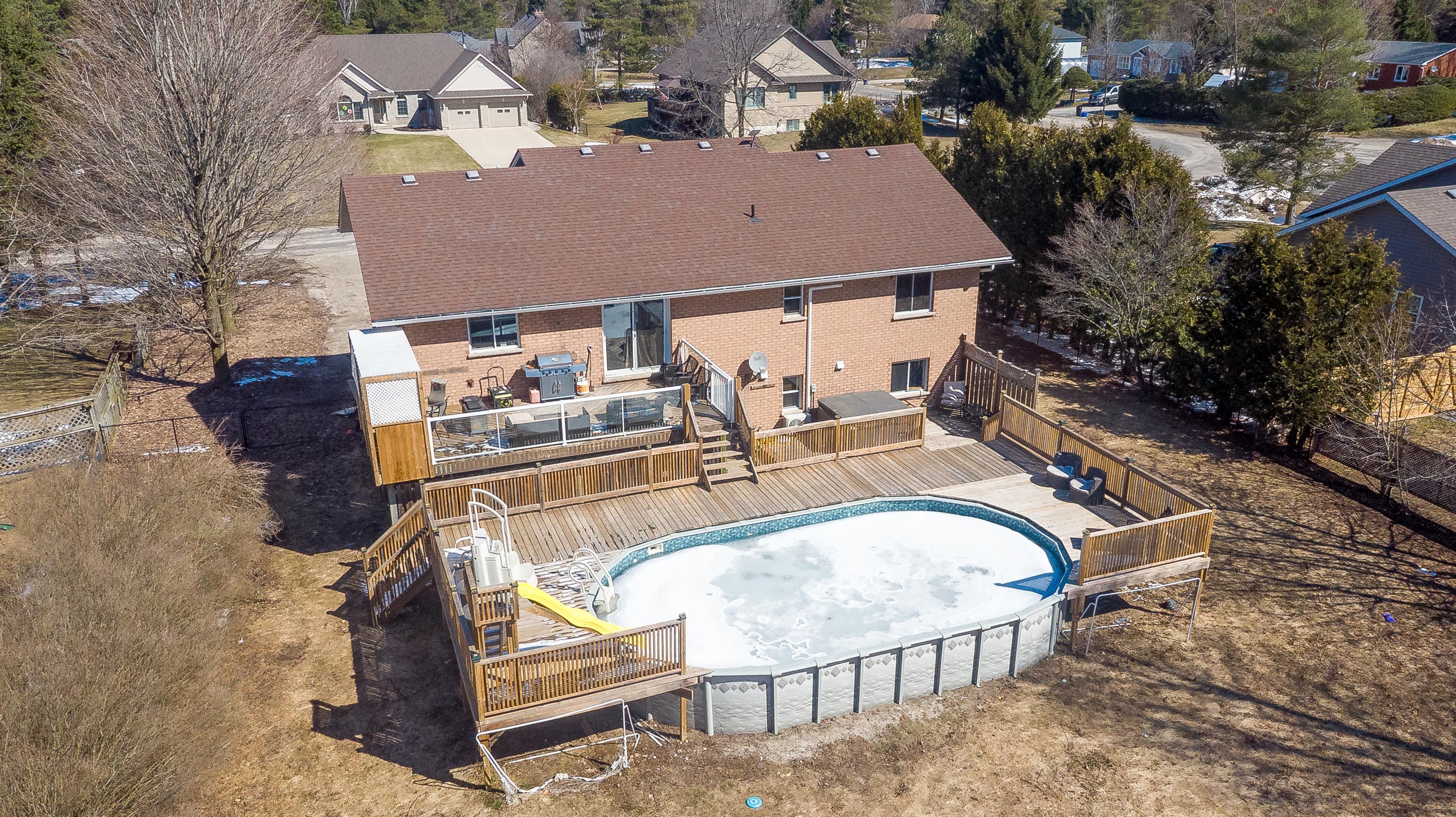 Imagine living on the desirable pine tree drive in hepworth, in a space offering the perfect blend of comfort, privacy, and versatility for families and entertainers alike. Since 2019, this brick home has undergone significant updates, featuring a custom kitchen, replaced windows and doors, refreshed soffit and fascia, and a redesigned pool area with expansive decking and a fully fenced yard. This home features five bedrooms, with an additional room for an office or hobby room. Three bathrooms provide convenience for busy households, and a custom kitchen serves as the heart of the home with its thoughtful design and ample workspace with quartz countertops and a large island. Downstairs, the rec room with a built-in bar creates an ideal setting for gatherings, game nights, or hosting friends and family with a gas fireplace. Step outside to a fenced backyard, perfect for kids, pets, and outdoor living. Enjoy summers in the above-ground pool, bbqs on a large multi-level deck, or quiet evenings in your outdoor space. Located on a quiet dead-end road, the home offers added peace and privacy while still being within walking distance to the local hepworth public school, which also offers a french immersion program. You'll have plenty of storage or workspace with two garage options: a detached garage in the backyard plus an attached 1-car garage at the front of the home. Perfectly situated for convenience, the home is 12 minutes to sauble beach, 15 minutes to owen sound, and 10 minutes to wiarton, giving you quick access to beaches, shopping, healthcare, dining, and year-round recreation across the bruce peninsula. Whether you're upsizing, investing, or seeking a versatile family home, 27 pine tree drive delivers space, lifestyle, and exceptional location. Schedule your private showing today and experience everything this hepworth property has to offer.