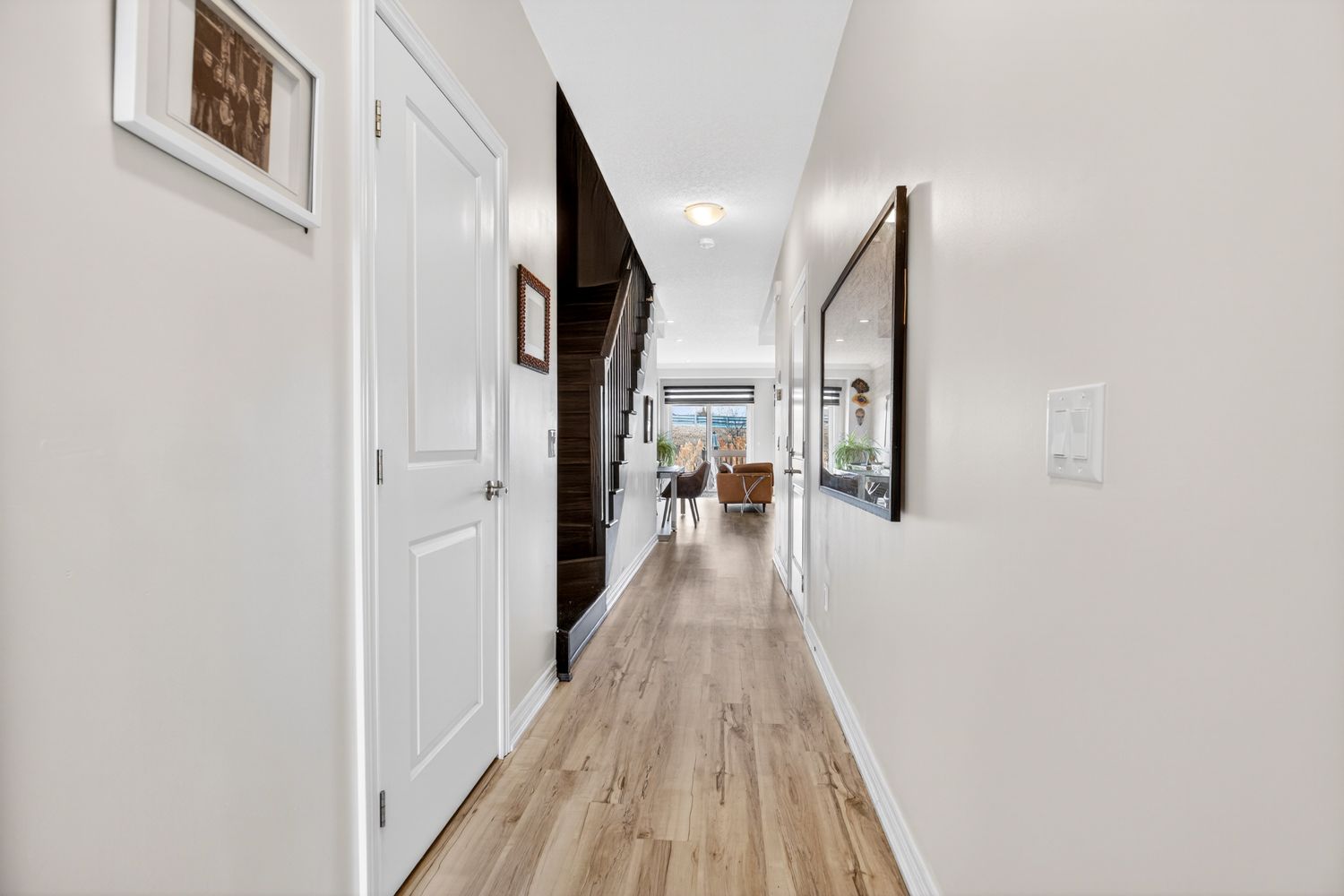 Beautiful 3 bedroom, 2. 5 bathroom townhome with over 2,200 sq ft of finished living space. Bright open concept main floor with modern flooring, pot lights, and spacious living and dining areas. Stylish kitchen with dark cabinetry, stone countertops, stainless steel appliances, subway tile backsplash, and large island with breakfast bar. Upper level offers a generous primary bedroom, two additional bedrooms, and convenient second-floor laundry. Finished lower level provides extra living space for a rec room, office, or gym. Private fenced backyard with deck and patio area. Attached garage with driveway parking. Great location close to parks, schools, shopping, and quick highway access.