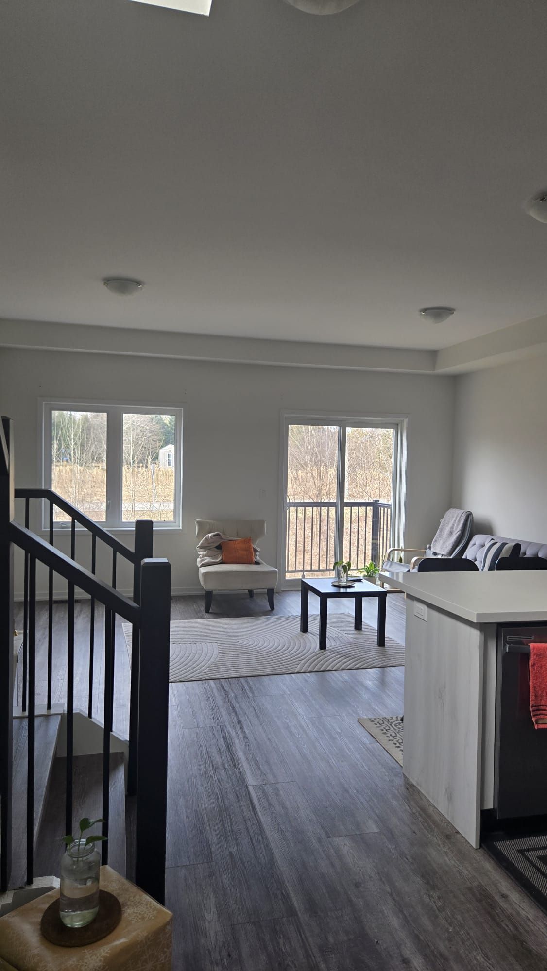• Open-concept living with a modern kitchen and balcony.