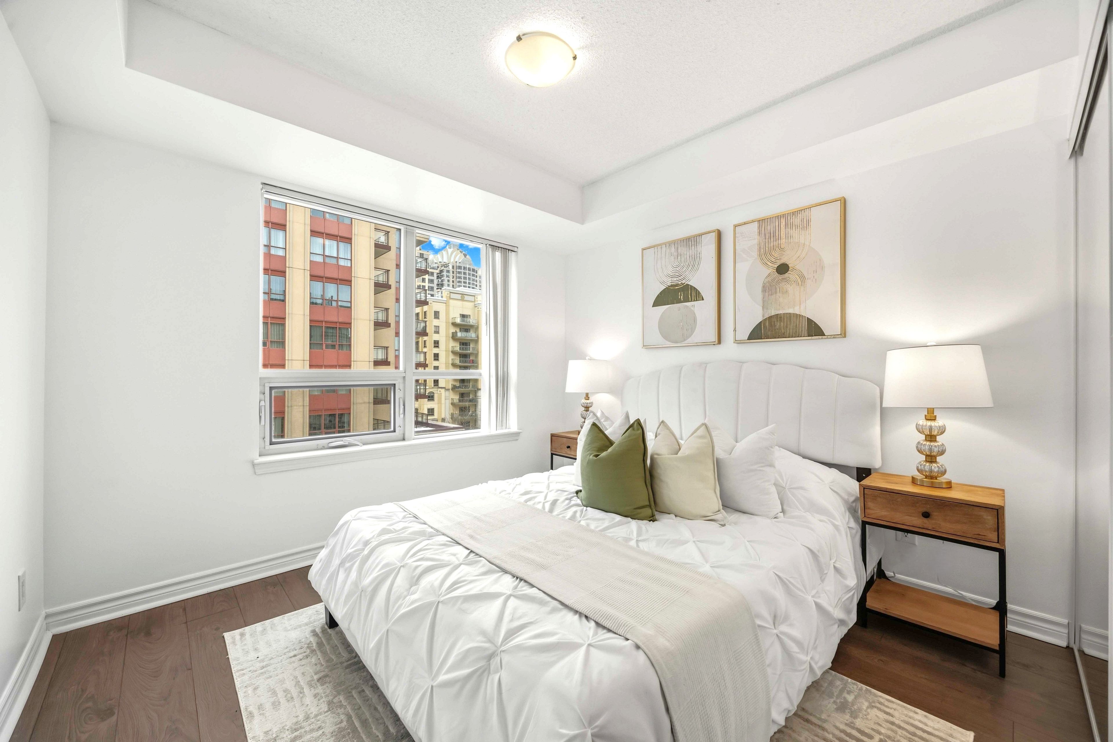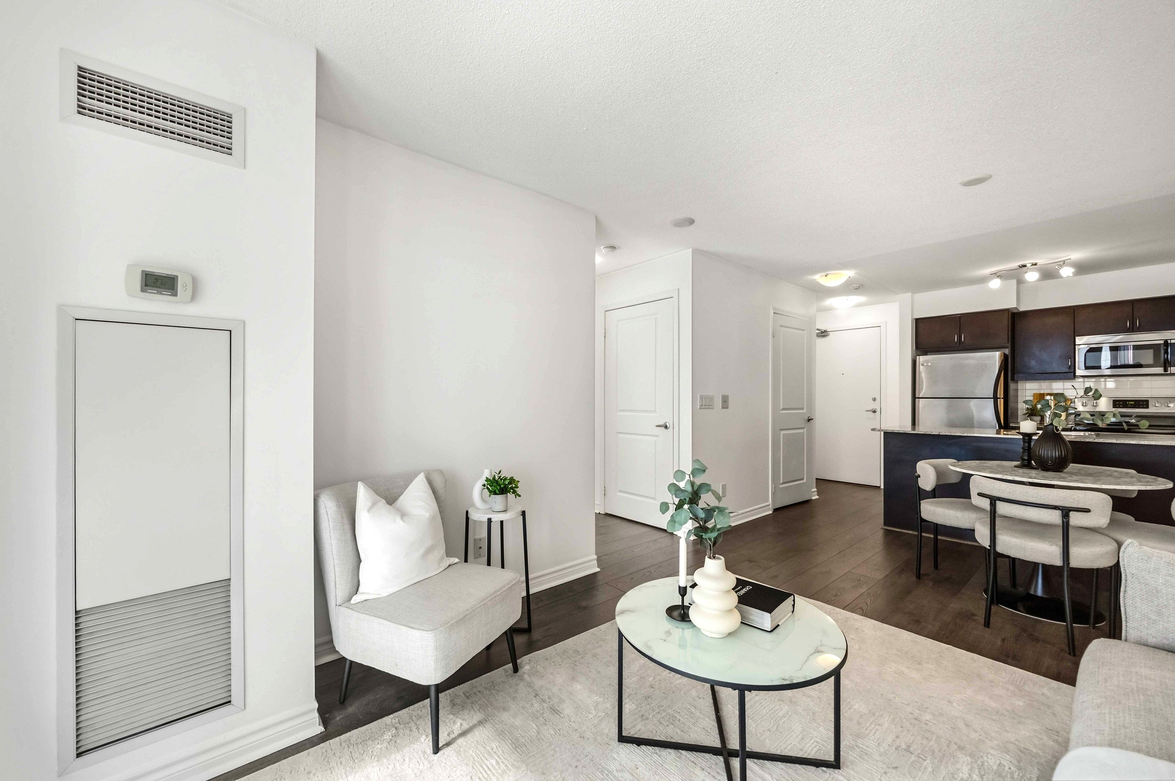 Experience the epitome of convenience and sophisticated living nestled in the vibrant heart of bayview village + charming 1-bedroom condo + 1 washroom + 1 parking + spacious and functional layout with chic modern finishes + new hardwood floors (august 2023) + meticulously maintained + stunning open concept kitchen featuring: full size stainless steel appliances, u-shaped kitchen with breakfast bar, ample cabinet space with undermount lights, sleek granite countertops and tile backsplash + newly painted walls + covered balcony that can be enjoyed in any season + generous sized bedroom with large windows + unparalleled convenience just steps away from bayview village shopping centre (across the street), loblaws, various shops, 1 min walk to the closest bus stop, steps to besarrion ttc subway station, and minutes to highway 401 + spectacular amenities: gym, roof top sundeck, penthouse party room, cinema and game room + extras: stainless steel fridge, stove, built-in microwave/range, dishwasher, washer, and dryer, and electrical light fixtures