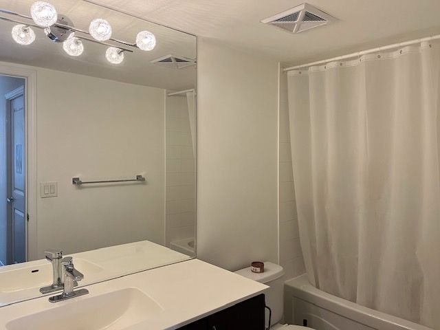 Prime location. Very good maintain condo unit with very functional layout. Close to shopping, highway and schools. South facing and very quiet and well management condo unit , this is furnished condo unit. 2 bed and one desk with chairs. Move in condition