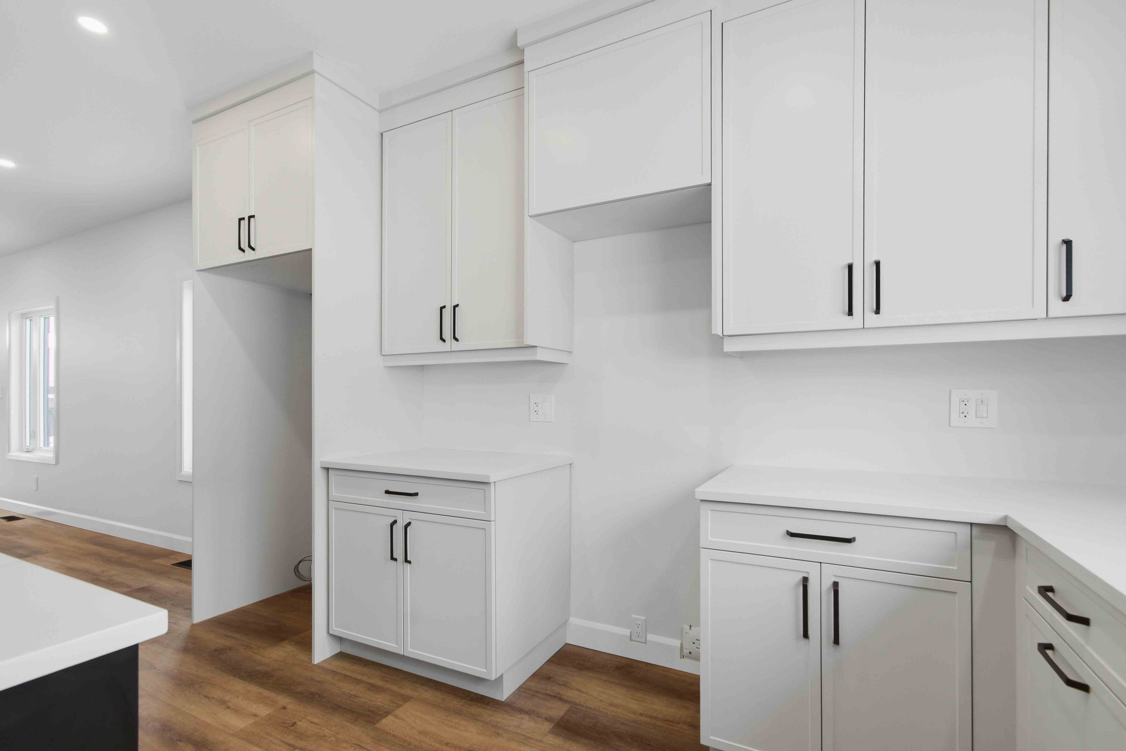 • Stylish kitchen with quality finishes, including cabinets to the ceiling.