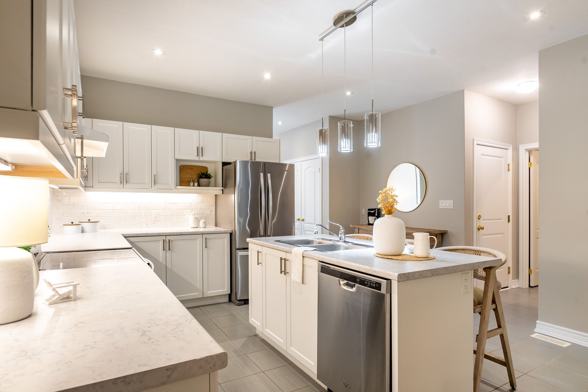 Welcome to this charming freehold bungalow townhouse, built in 2017 by the prestigious devonleigh homes and thoughtfully designed for comfortable living. Offering over 1,400 square feet of beautifully appointed space, this residence is available for lease and invites you to feel at home from the moment you step onto the covered front porch. A versatile sitting room at the front of the home can easily serve as a home office or den, providing flexibility to suit your lifestyle. The heart of the home features an open-concept kitchen, dining, and living area ideal for both everyday living and entertaining. The kitchen includes a spacious island, while the bright living room opens to a private rear deck with privacy louvres, perfect for relaxing outdoors. The main floor also offers a generous primary suite with a walk-in closet and an upgraded 3-piece ensuite featuring a step-in shower. A convenient powder room for guests and a functional laundry room with sink and folding counter enhance day-to-day ease. Inside entry from the single-car garage adds further convenience. The unfinished basement provides excellent storage space. This home is equipped with municipal services including natural gas forced-air heating, central air conditioning, municipal water, and sewer. Located in a well-established neighbourhood close to shopping, and entertainment, this property offers an excellent leasing opportunity that combines comfort, quality, and convenience.