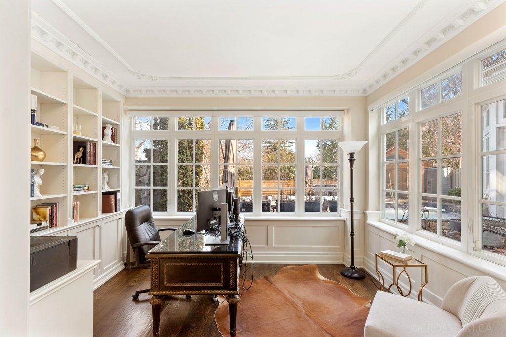 Nestled on one of lawrence park's most desirable streets, this beautifully appointed three-storey home offers exceptional space, comfort, and timeless style for modern family living. Featuring 4+1 bedrooms, generous principal rooms, and elegant finishes throughout, the thoughtfully designed layout provides both functionality and sophistication. The main level showcases a bright, open-concept family room anchored by a stunning chef's kitchen complete with striking onyx countertops and premium appliances, including a wolf six-burner gas range. Abundant cabinetry, ample counter space, and both breakfast bar and eat-in dining options make this kitchen ideal for everyday living and entertaining alike. Separate living and dining rooms provide refined spaces for hosting, highlighted by a charming wood-burning fireplace in the living room. Two additional gas fireplaces, located in the family room and the primary bedroom, add warmth and character. The upper levels offer spacious, well-proportioned bedrooms designed to accommodate a growing family. The finished lower level features a large recreation room and a versatile nanny or guest suite, currently configured as a media room with built-in speakers. Step outside to a private backyard retreat featuring a pool perfect for summer entertaining, outdoor dining, and relaxation. Additional highlights include a private drive and built-in garage. Ideally located just minutes from top-rated schools, including blythwood junior public school, beautiful green spaces such as sherwood park, and the shops and restaurants along yonge street, this home offers an exceptional opportunity to live in one of toronto's most sought-after neighbourhoods.