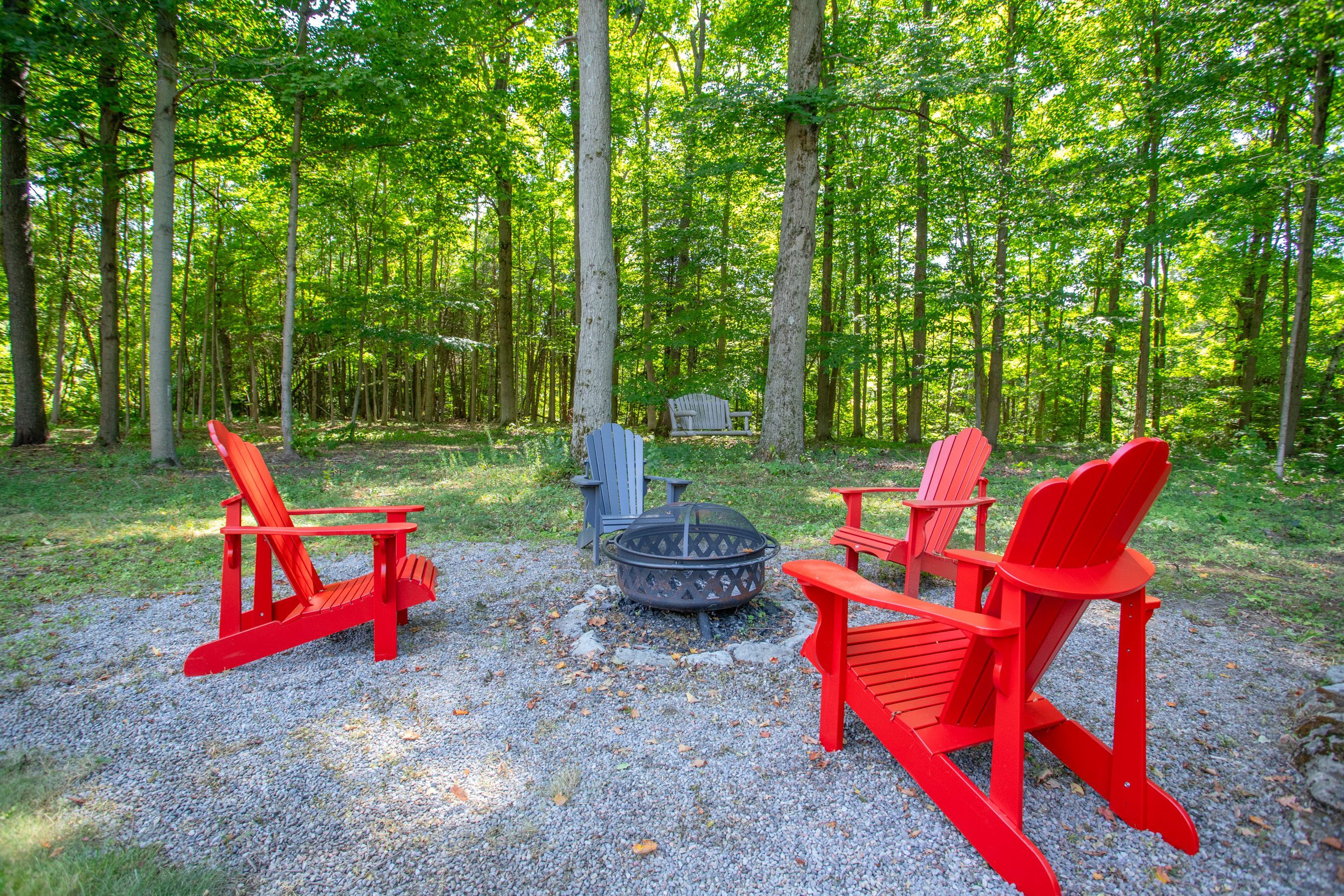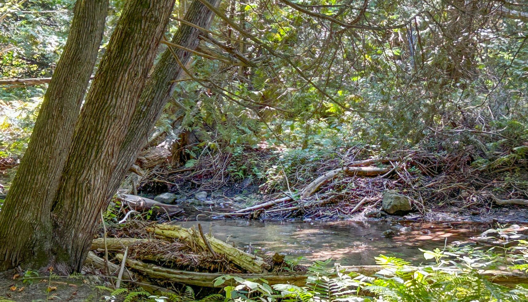 • Secluded 1.1-acre lot with mature trees and creek access for privacy.