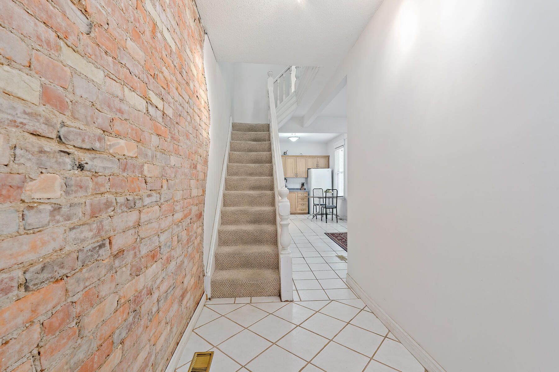 Welcome to 27 tisdale st n, a charming two-storey semi-detached home located in hamiltons beasley community offering 2 bedrooms and 1 bathroom, blending character and comfort. The front hallway features an exposed brick wall, adding a rustic touch, while the living room includes a built-in library ideal for book lovers. The kitchens walkout leads to a fully fenced backyard, enhancing indoor-outdoor flow. Upstairs, the primary bedroom is distinguished by a striking cathedral ceiling and a continuation of the exposed brick. A second bedroom and full bath round out the living quarters, while a 500-square-foot unfinished basement offers valuable space for storage or future development.